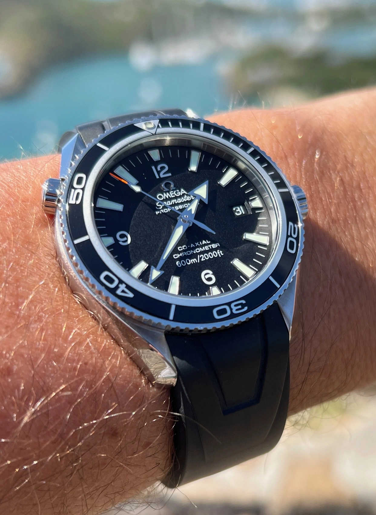 22254.50 - For 15 years this has been my go to-reliable, versatile, comfortable and full of character. The only real miss by Omega, in my opinion, are the large numerals on the dial. This has been pointed out by many others over the years, and while they have always bothered me, I've never been able to justify modifying it. I've considered a bezel swap many times, but I personally prefer to keep all watches in their original form. And while its undeniably a tool watch, the sleek design and classic proportions make it just as at home with a tuxedo as it is with a t shirt.