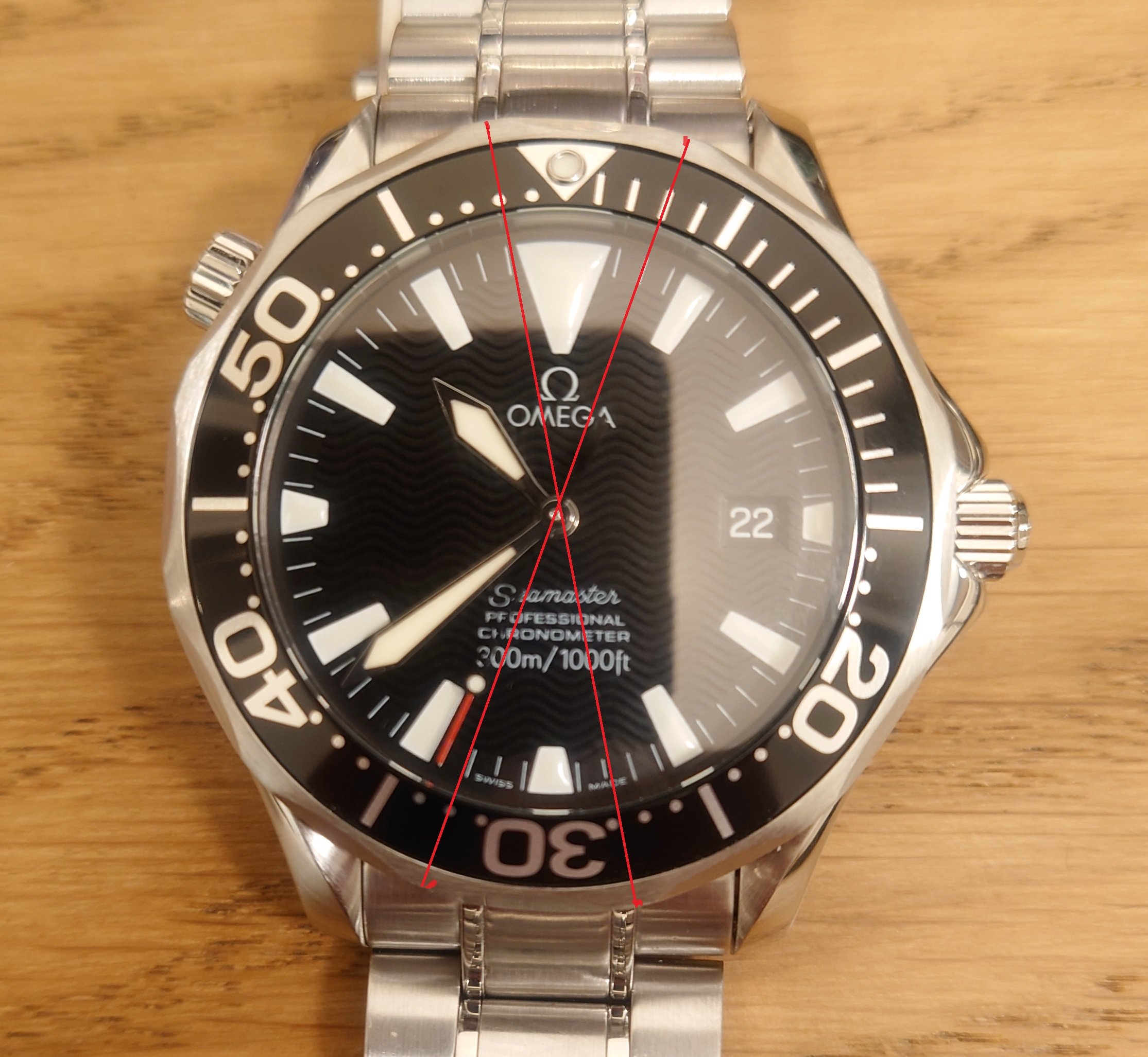 The former bezel was clearly aligned , with the edge positiones at 12 o'clock