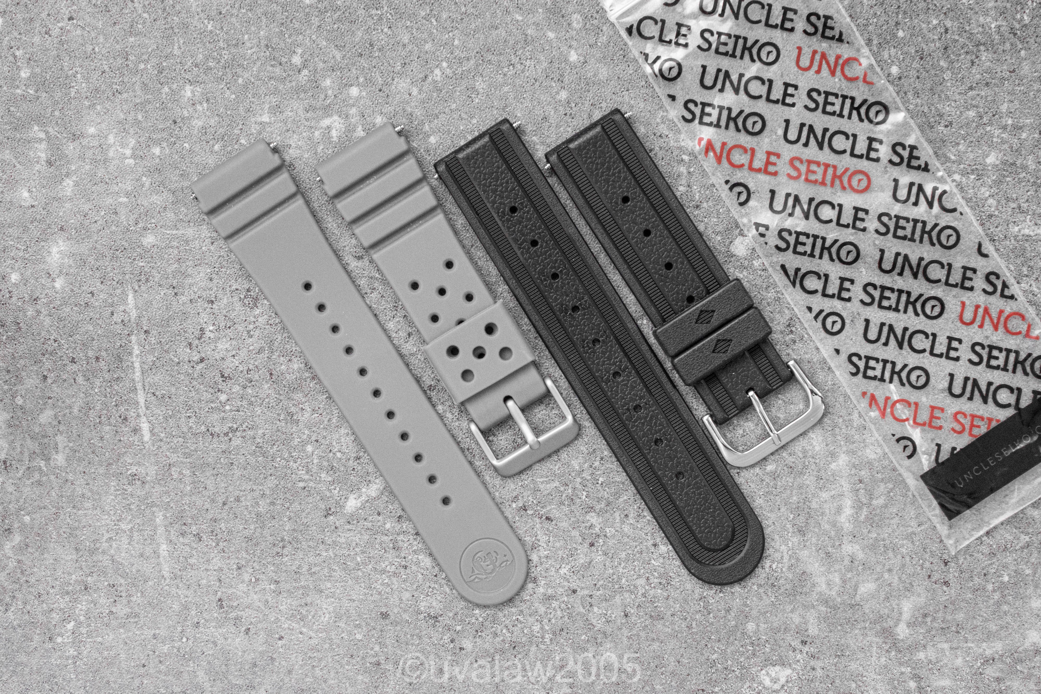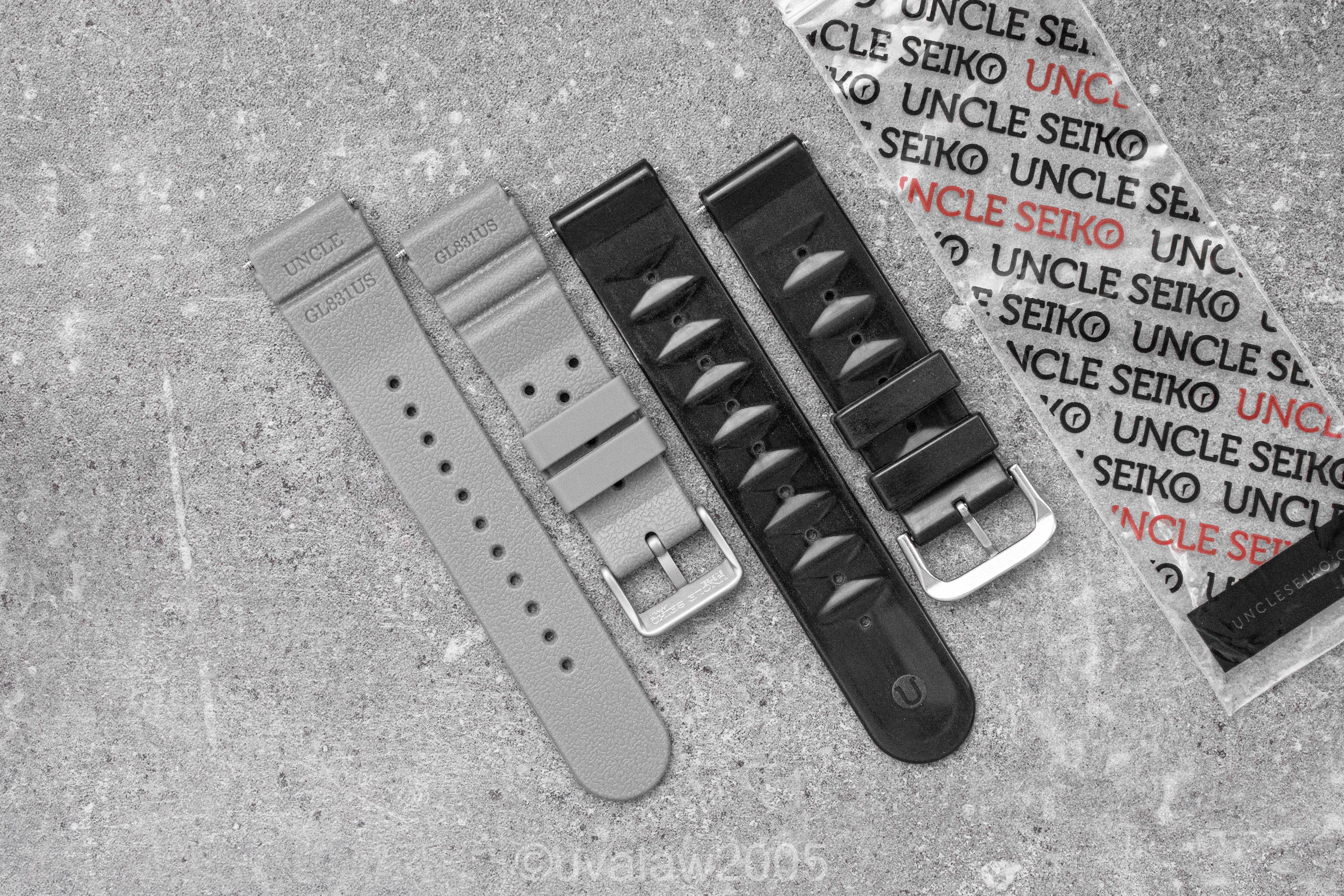 ·For sale are two brand new 22mm Uncle Seiko rubber straps, a grey GL831 (standard length) and a black XGL-731 tire tread.