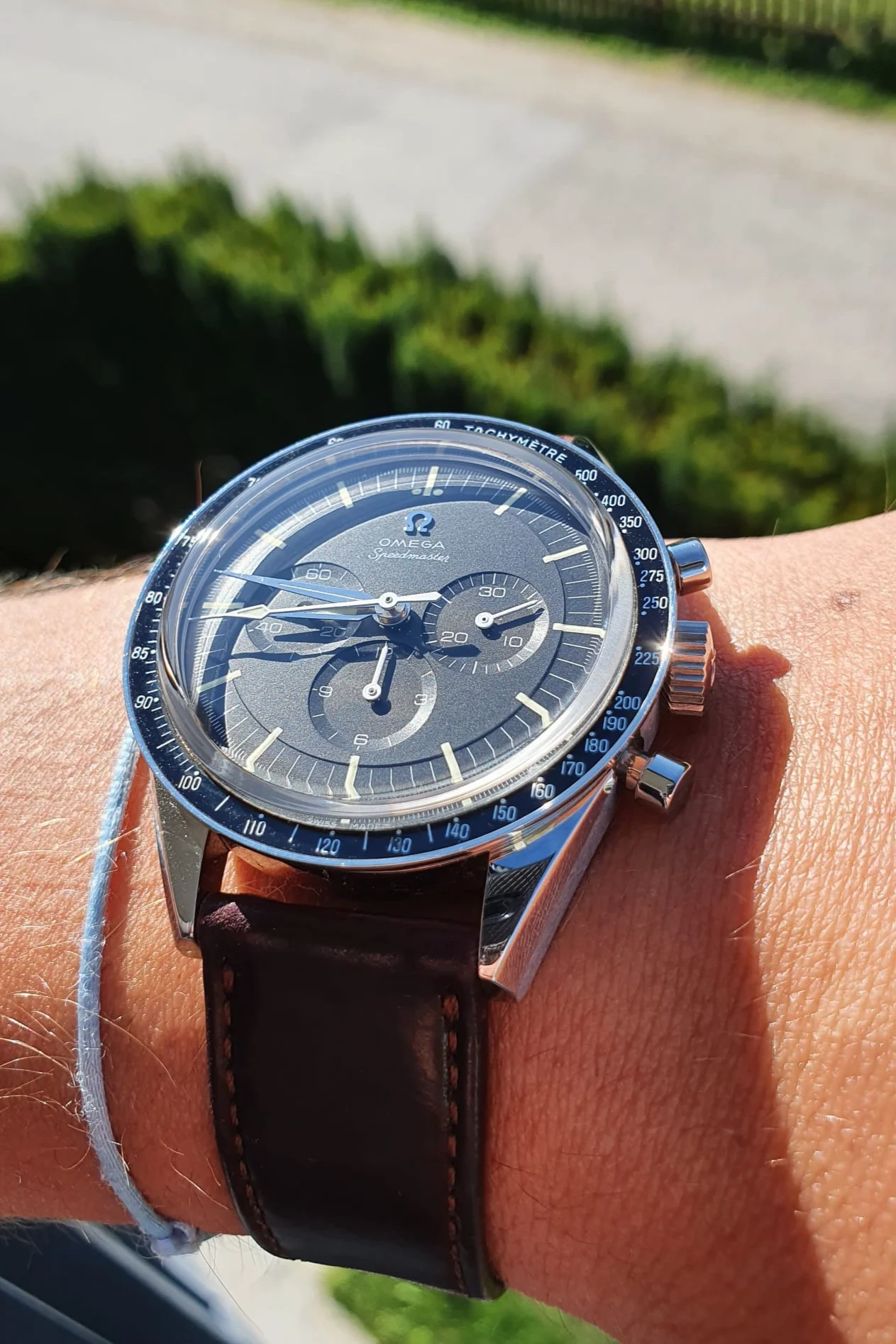 The look is essentially the same, except it is 0.2mm thinner than the speedmaster version.