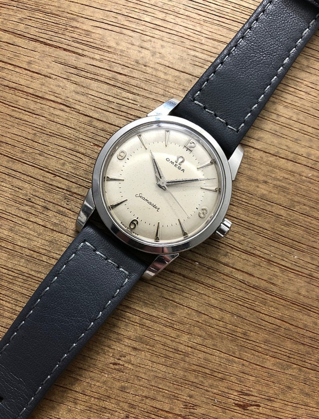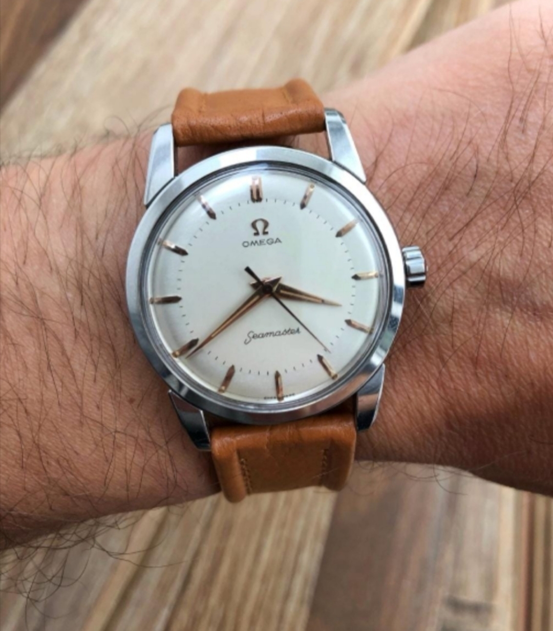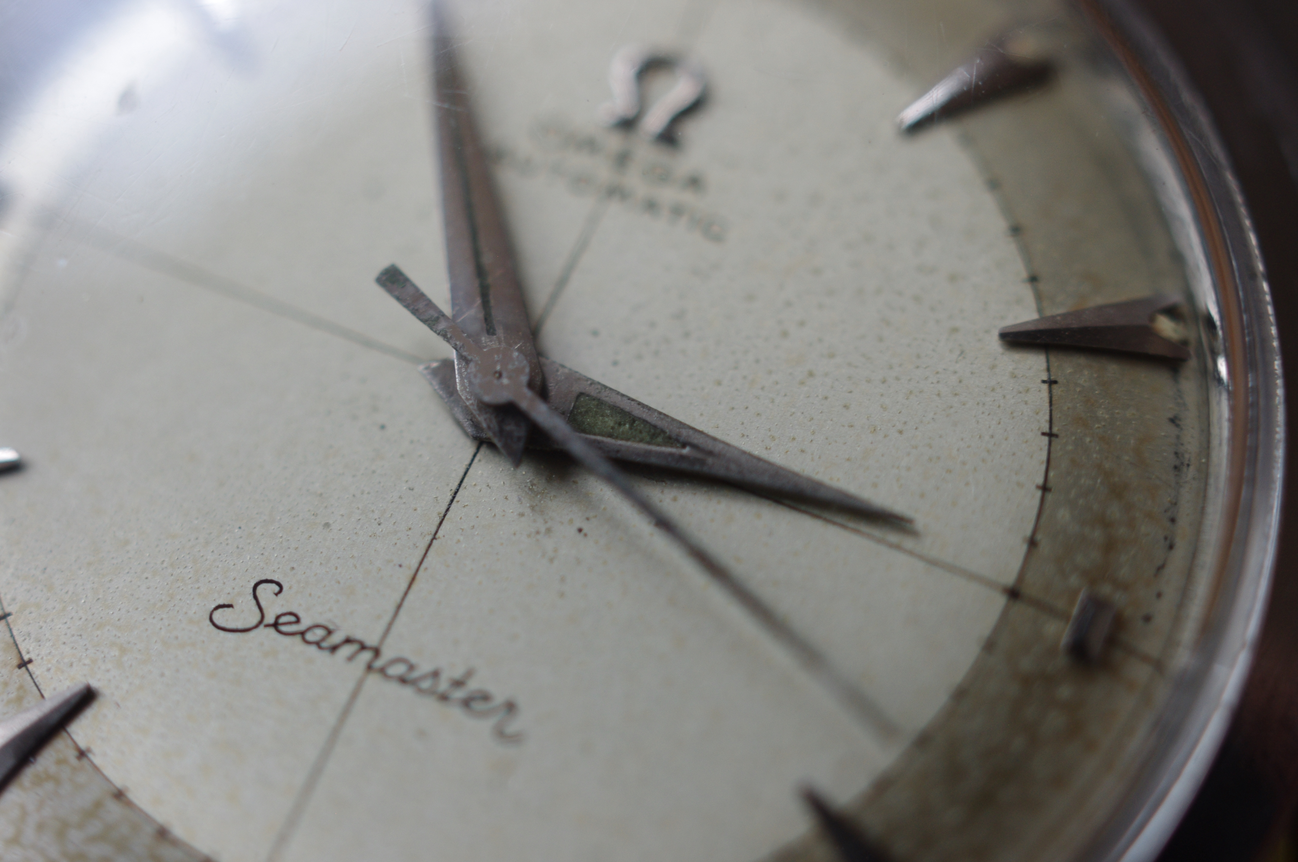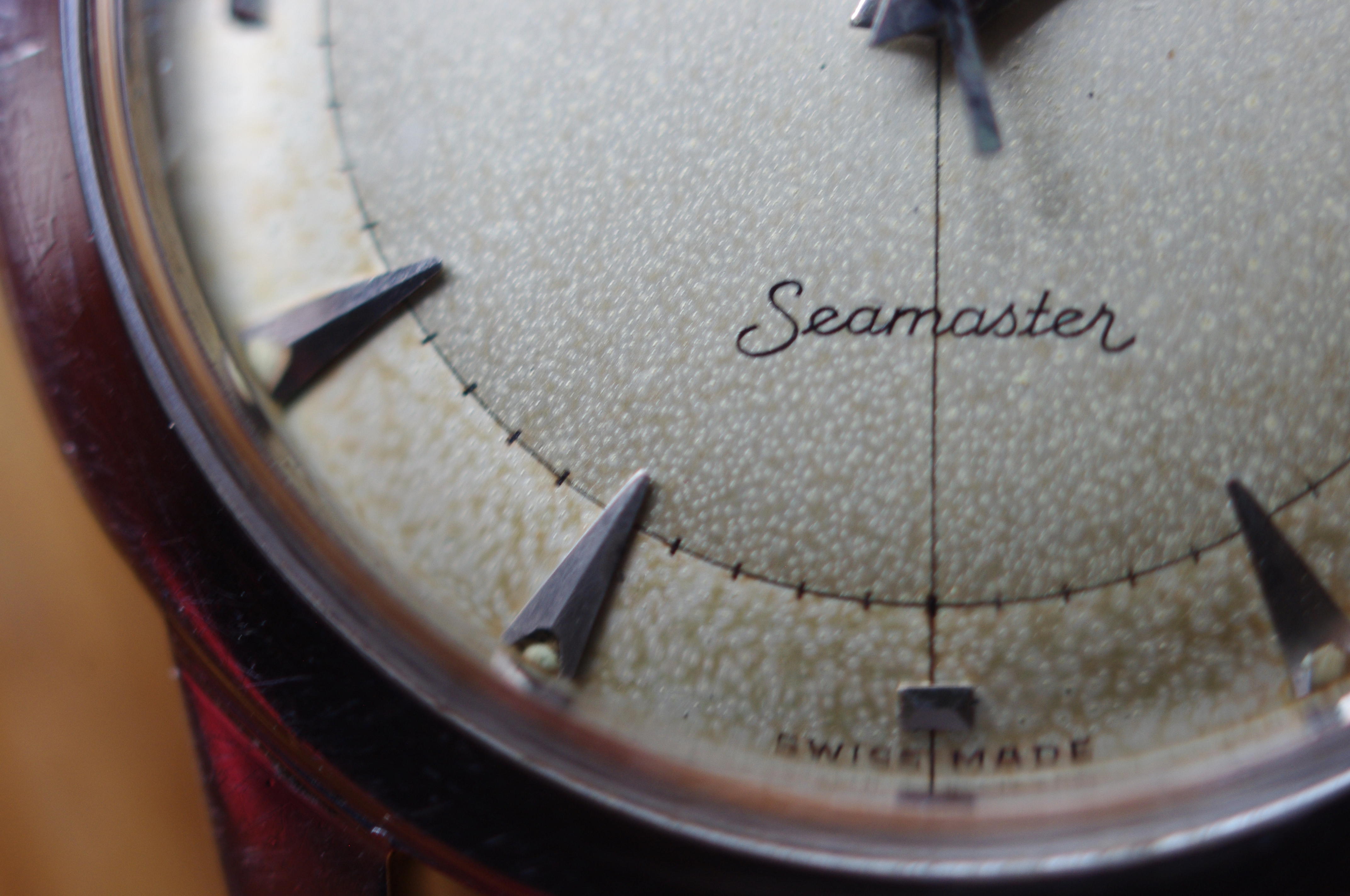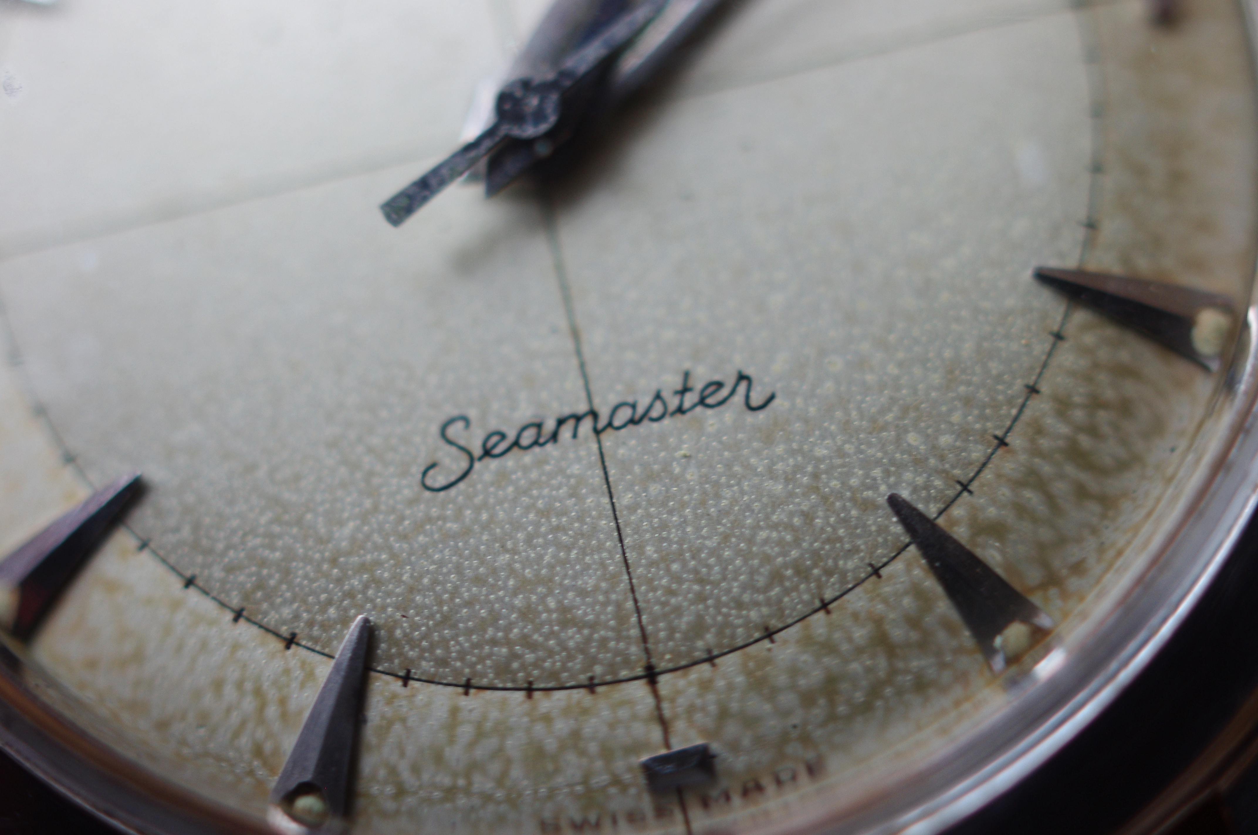 ·During late night internet browsing and after a few glasses of wine, this seamaster has caught my eye (especially the cross hair dial with patina), so I did a spontaneous purchase without any research on it. Vintage Omega world is a quite new to me... It should be 2577-8 (it is written on the caseback) with cal 351 bumper (well yes, this is inside). Serial is 12 mio. I like to know your opinions on the dial and hands mainly. The dial seems to be original (not redial, but is it correct to the watch?). Also, I haven't seen this combination of hands (seamaster calendar maybe?). What do you think? Many thanks. I made a few quick photos (nor really good ones, bacause of poor light conditions).