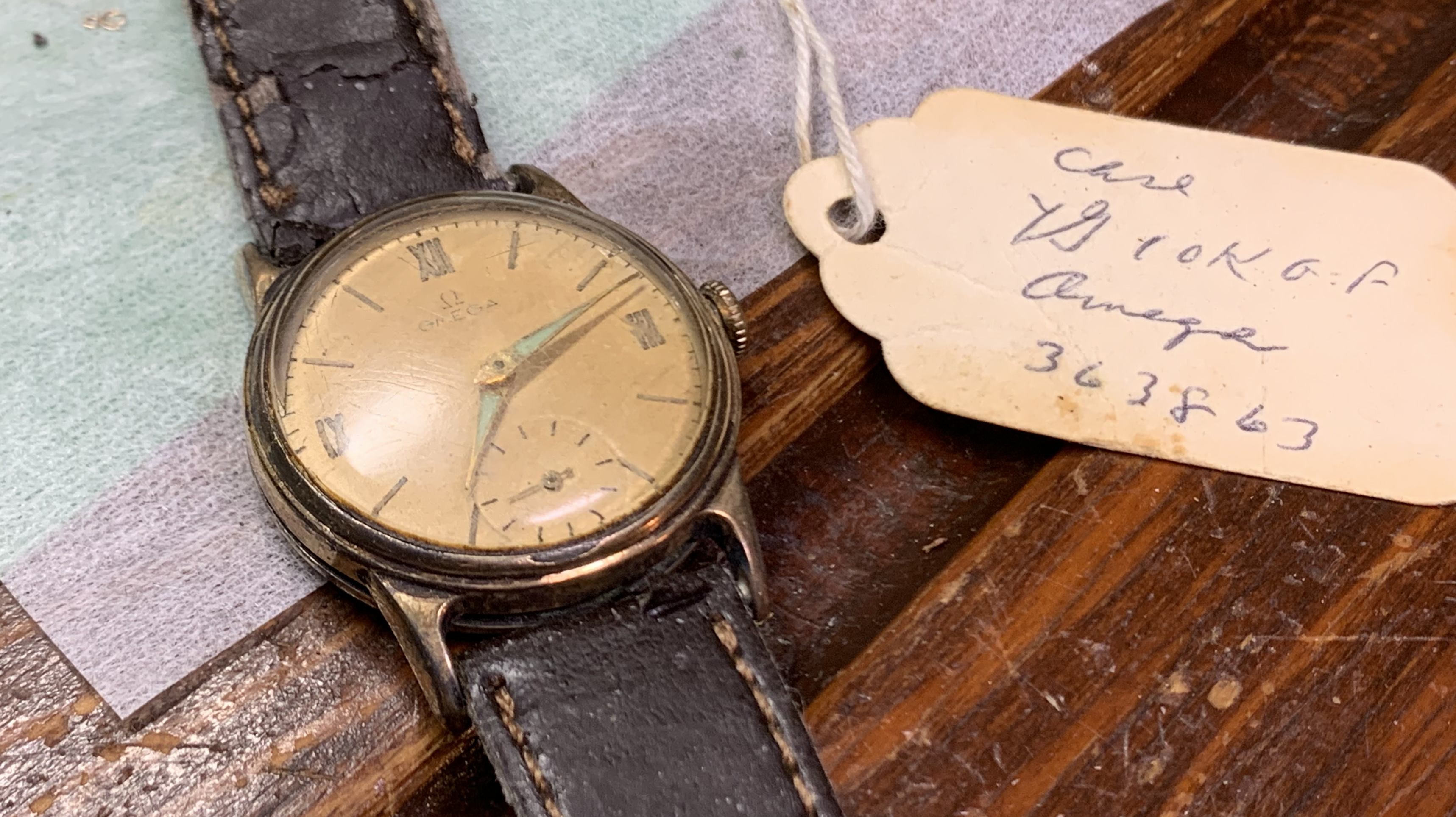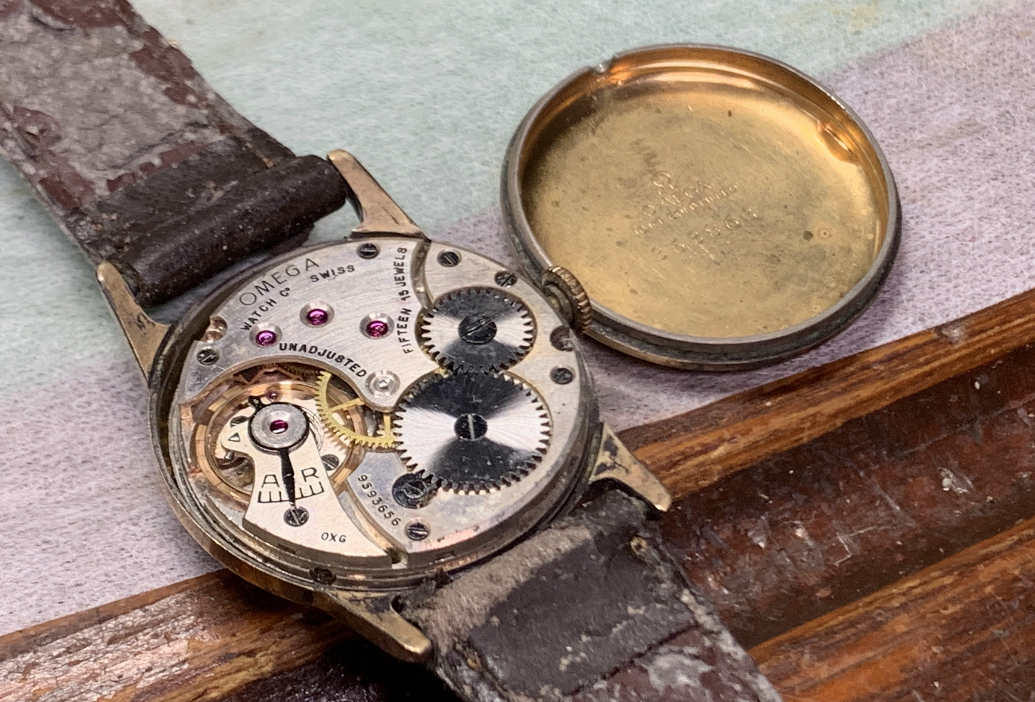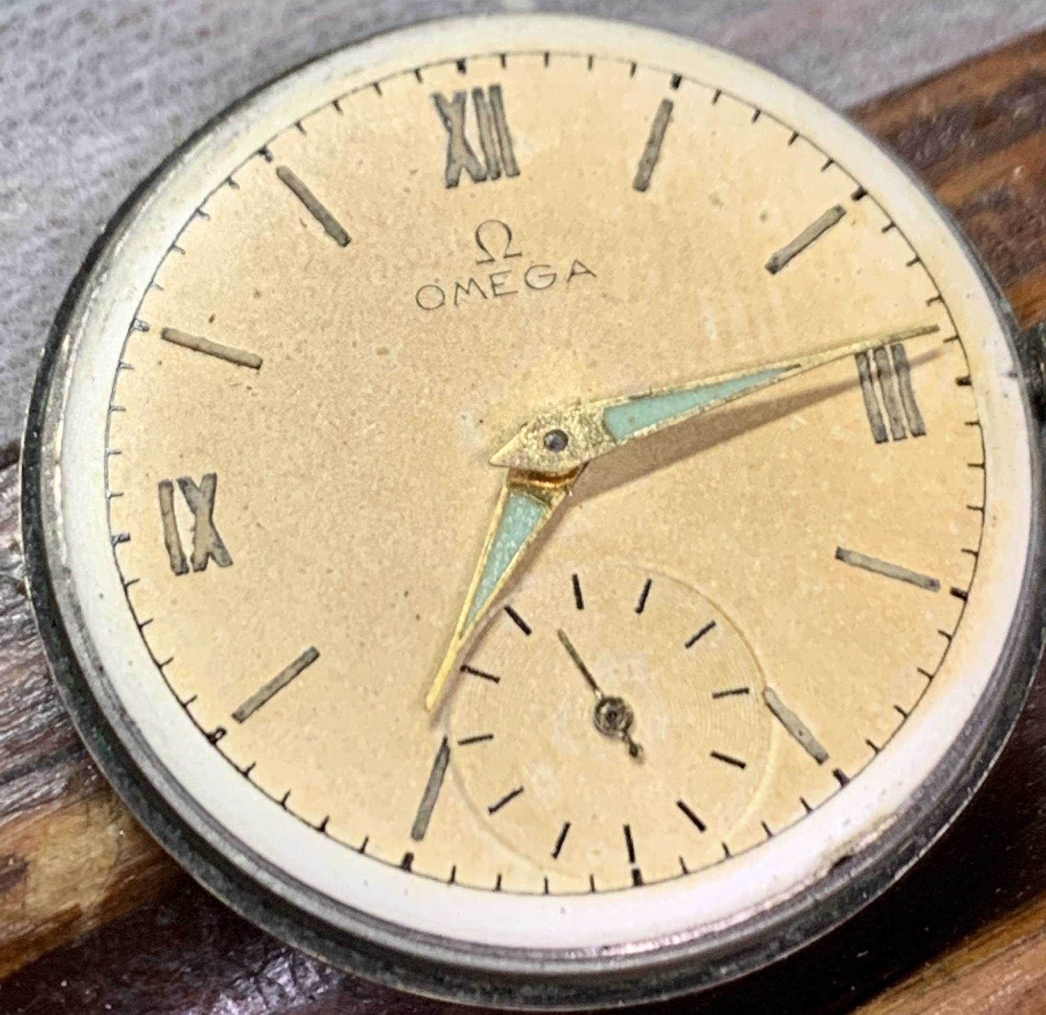 Yup it is an omega. Probably from the 1930s. Not sure why the watch in the other posting looked like it was from the 1970s or 1980s. It even still ticks weakly.