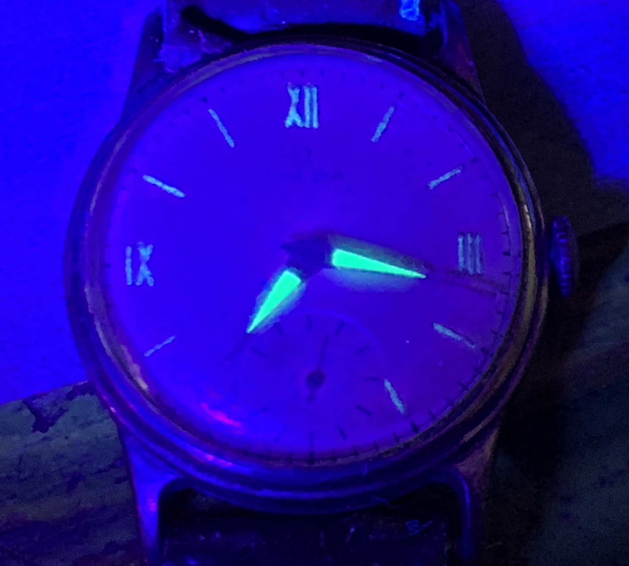 At first glance the dial looks like yellowed paper. Looking at it without the crystal it looks similar to the other dials recently posted from this era. The yellowing could be from the radium.