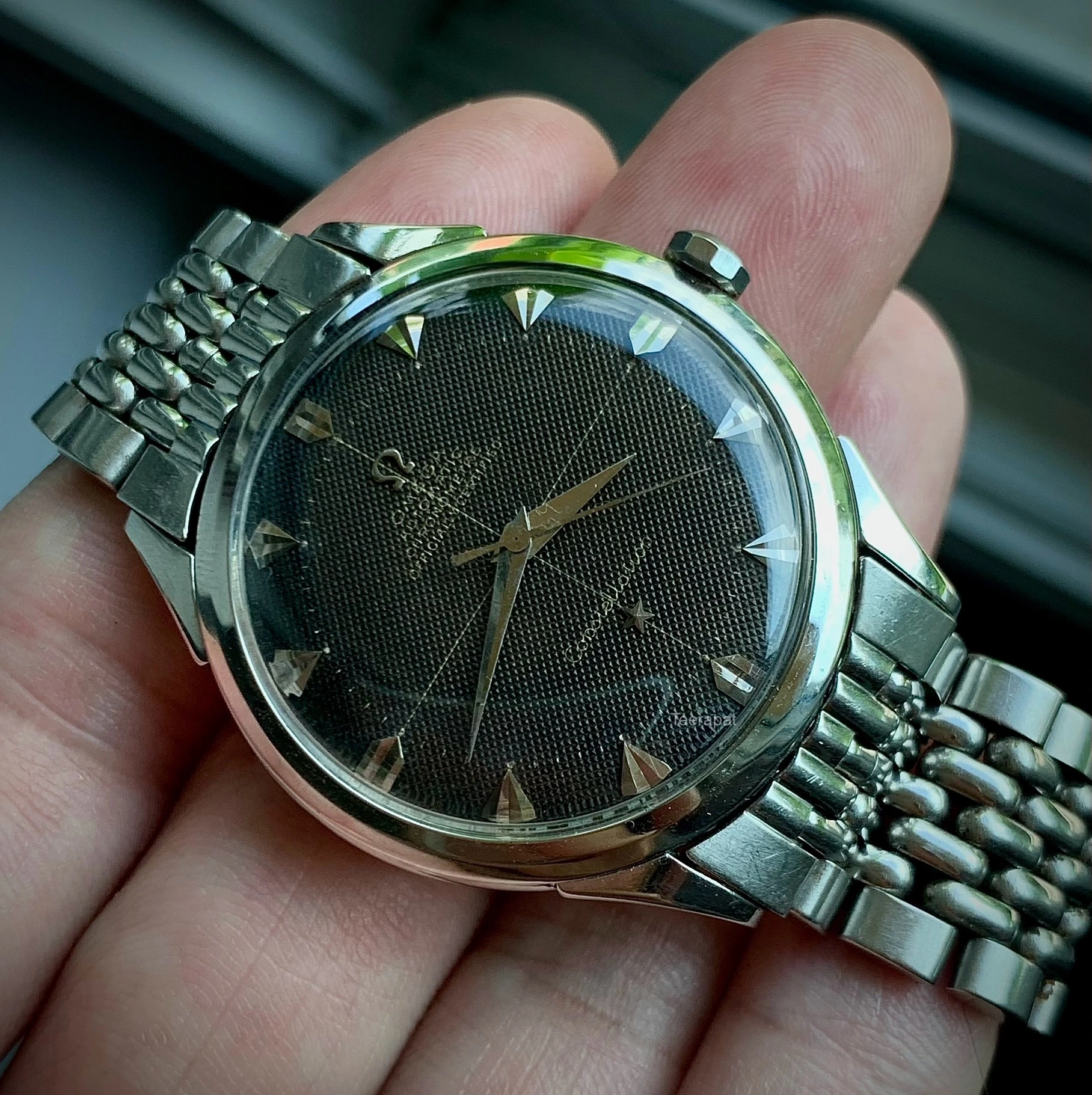 Taking this opportunity, may I ask you to evaluate whether the dial is too far from the case frame ? The reinforced glass gives this illusion, or maybe the dial comes from later references and is 2mm smaller ? I'm already confused because I saw this dial in ref 2648, but that doesn't prove anything yet