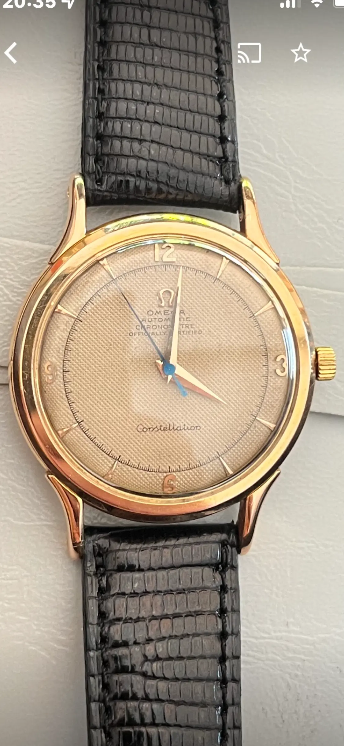Il s’agit d’une des premières constellations en or 18k modèle 2648 de 1952. Il l’a eu pour ses 18 ans