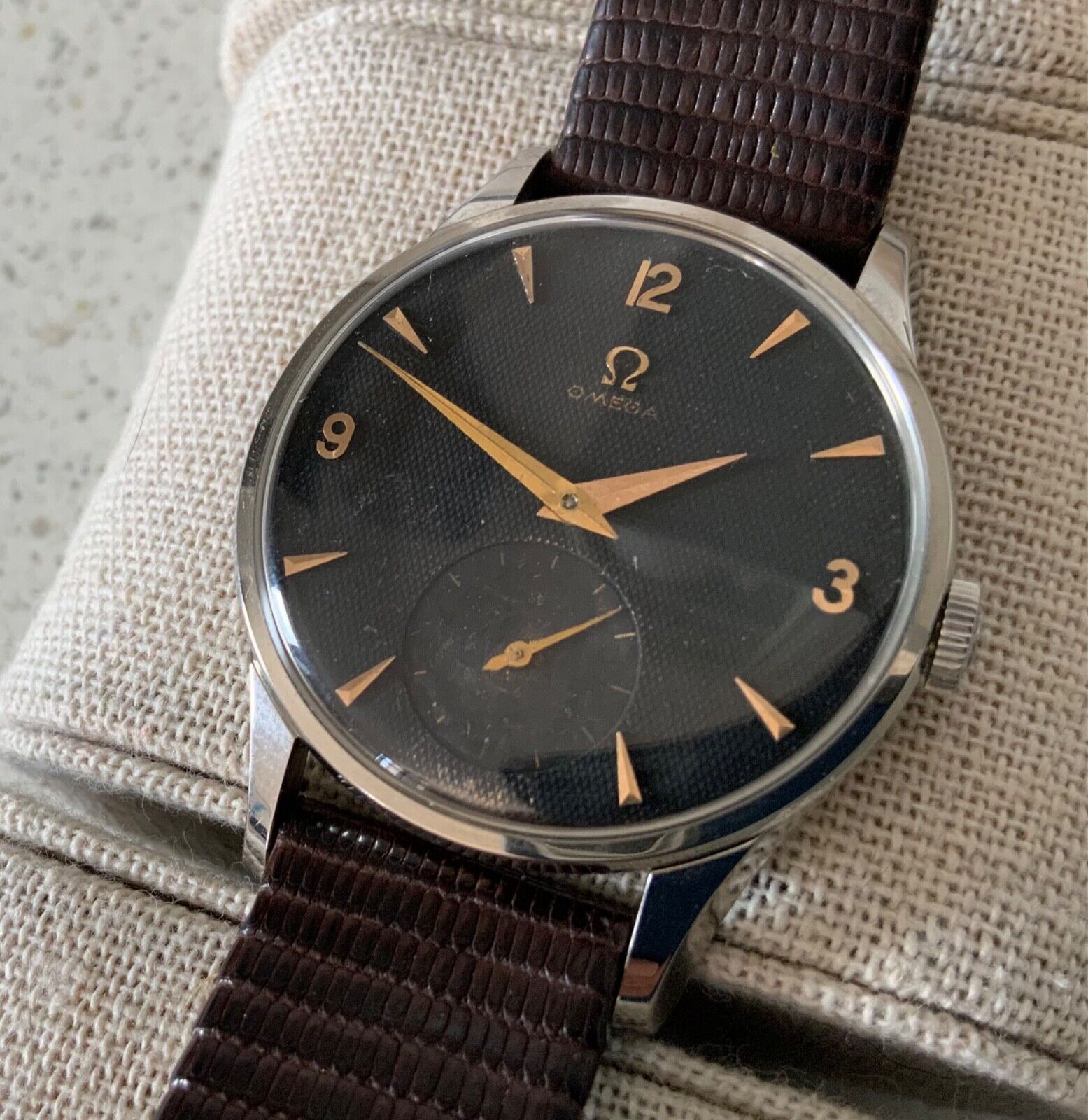- The minute marks seem to have disappeared, which is not really something I have seen on the "black dials" omega thread. That said, I have the impression I can see some remains of these, especially at the bottom of the dial.