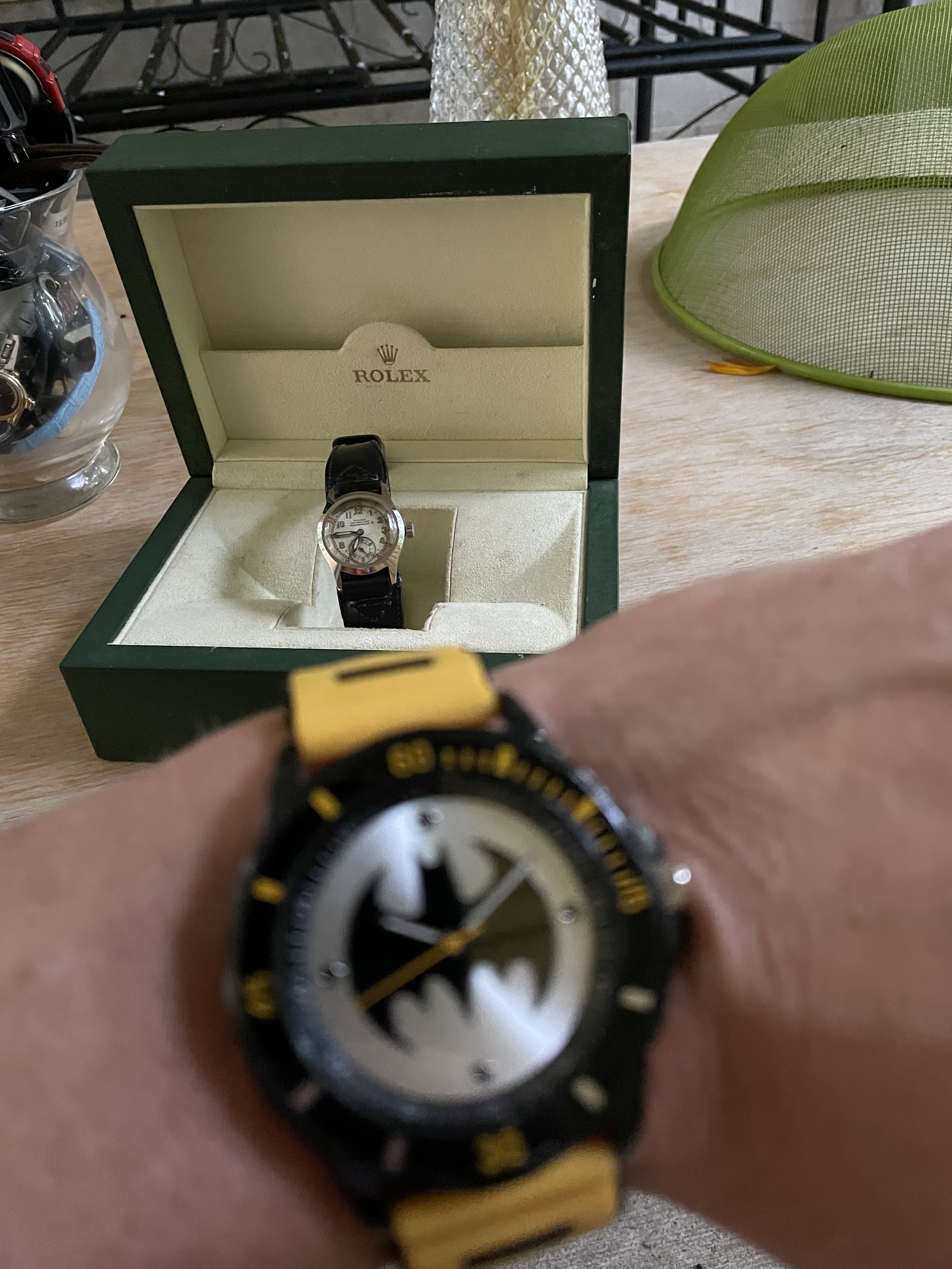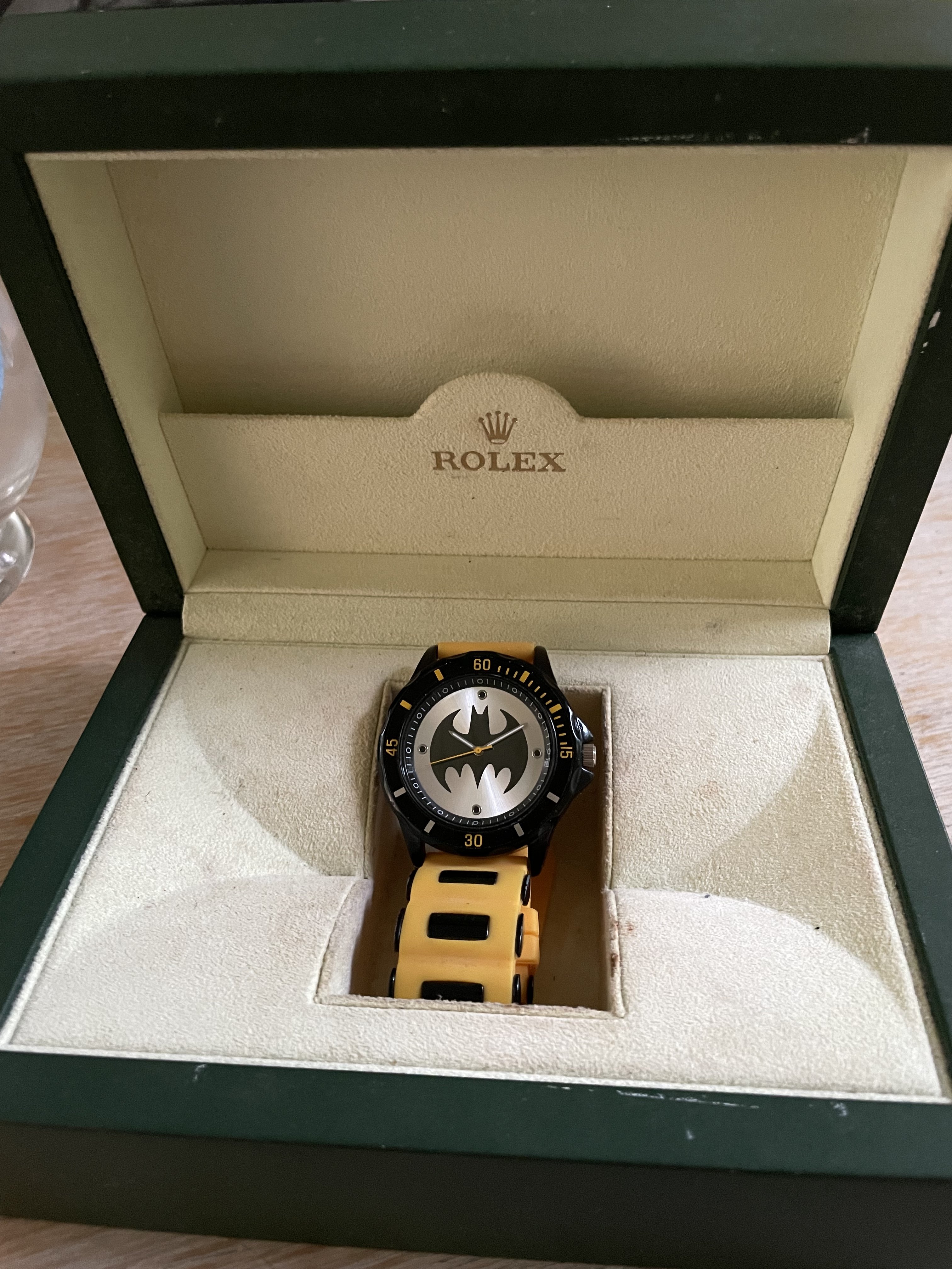 I always look at these mystery lots because they usually contain the odd gem. My interest is especially for the buckles. Imagine my surprise when I found a almost unused Batman! I will use this old Rolex box to store it.