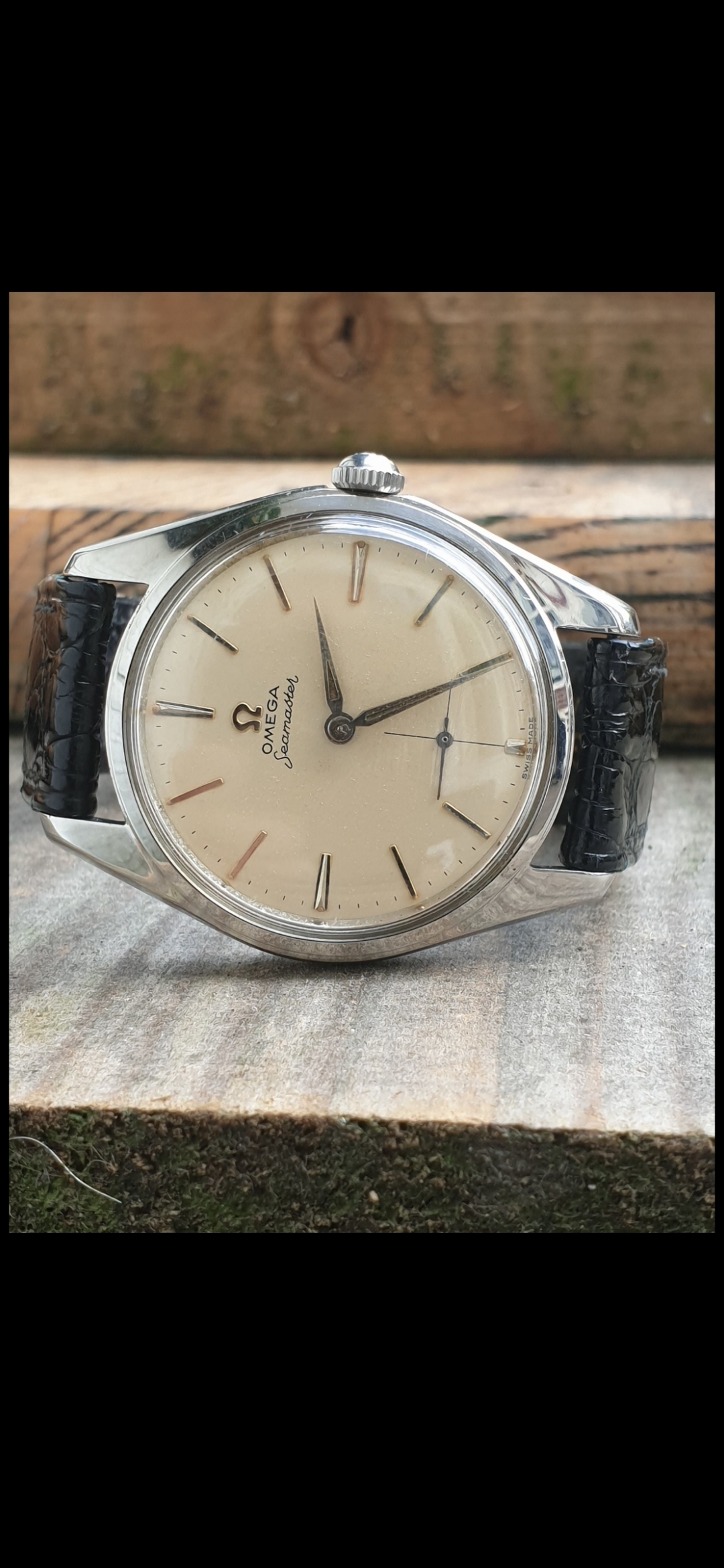 Not a good example. There is deterioration around several of the hour markers, significant dial damage between the 3 and 4 markers (look at the edge of the dial), the hands and some of the markers show significant oxidation, and the case is heavily polished. Compare to mine: