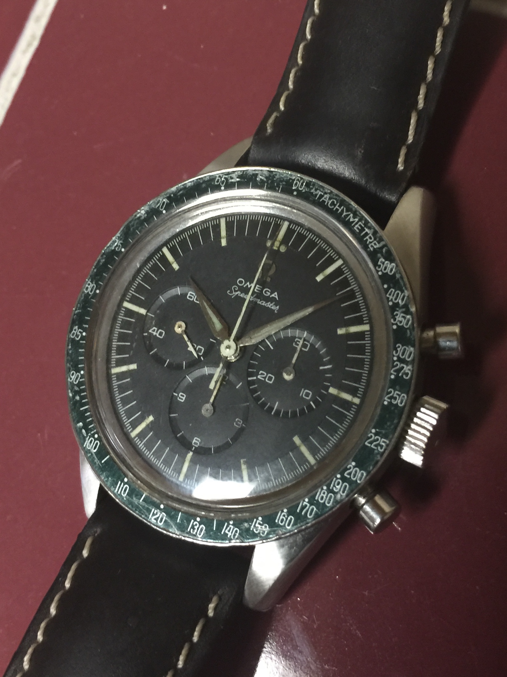Very nice example you have, congrats! Quite a number of 2998-5s have DON bezels turn greenish/grayish like this one. Beautiful dial and lume plots. Looks like a solid mid case too. Only the chrono hand is a replacement I think.