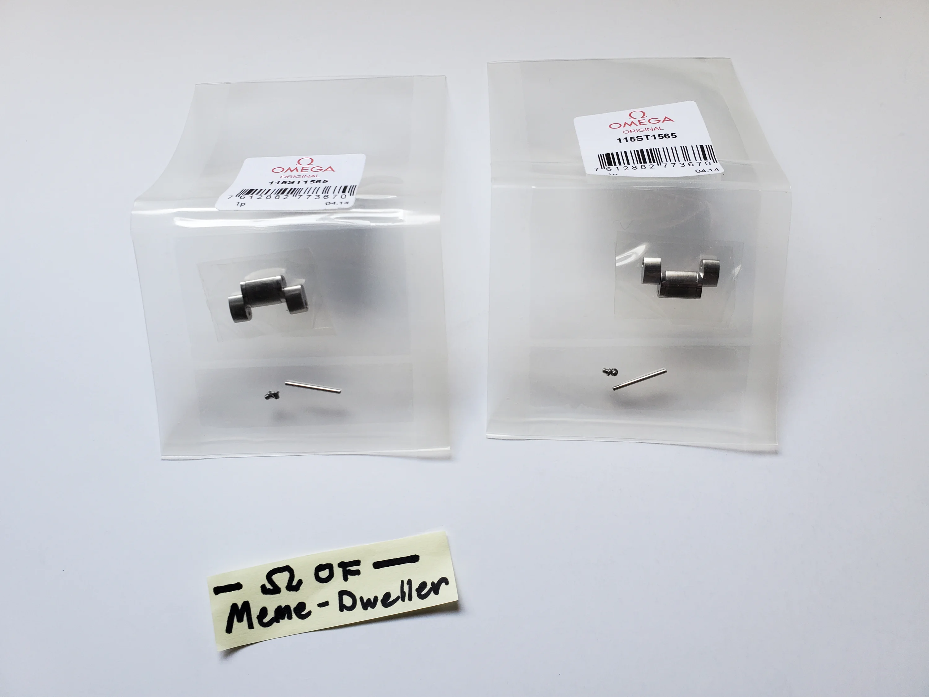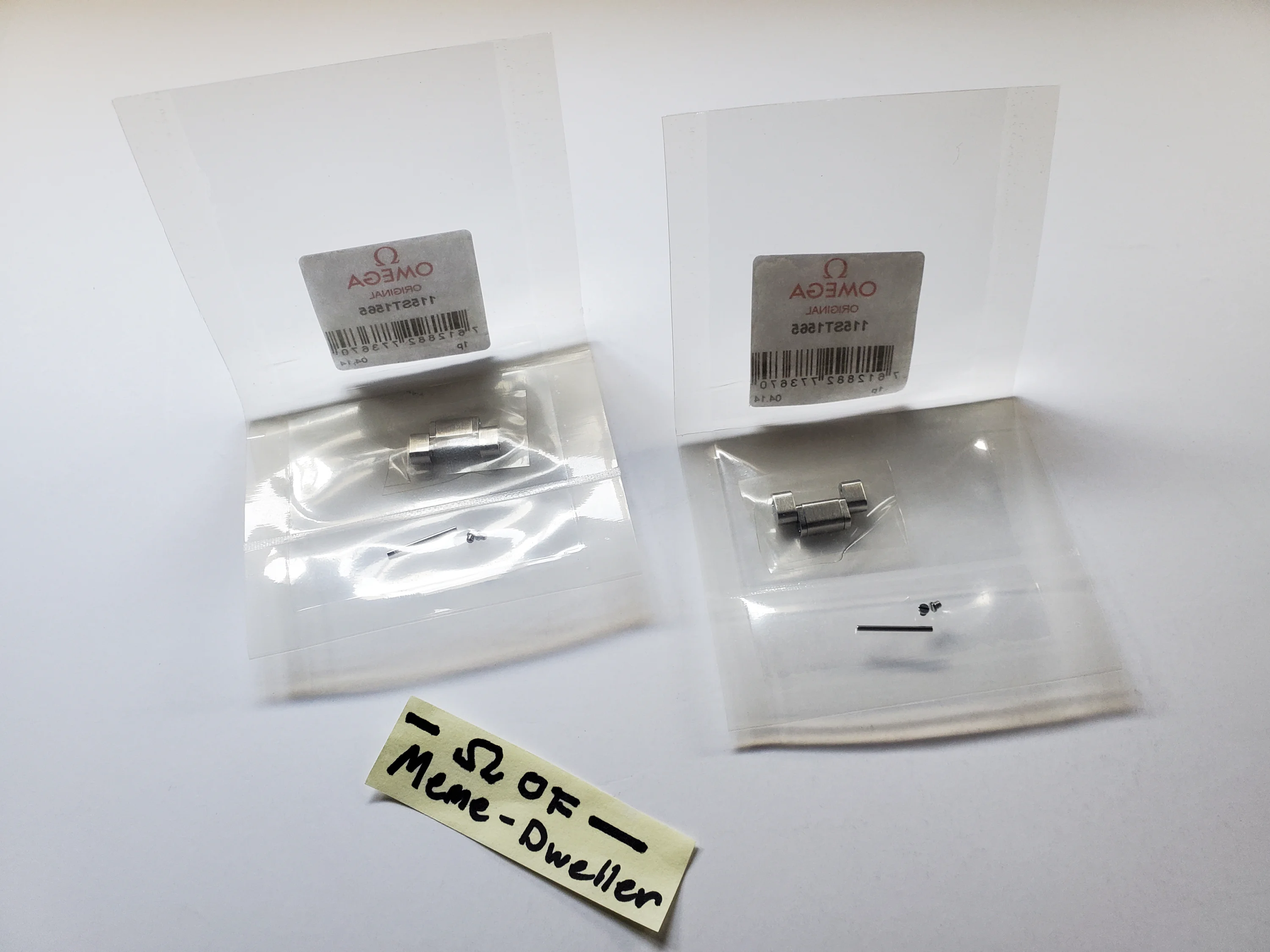 Up for sale are 2x new & sealed stainless steel half-links for the 19mm Speedmaster Racing 1565/976 bracelet. Genuine OMEGA. Part number 115ST1565. Includes a pin and two screws per half-link. Selling both together only.
