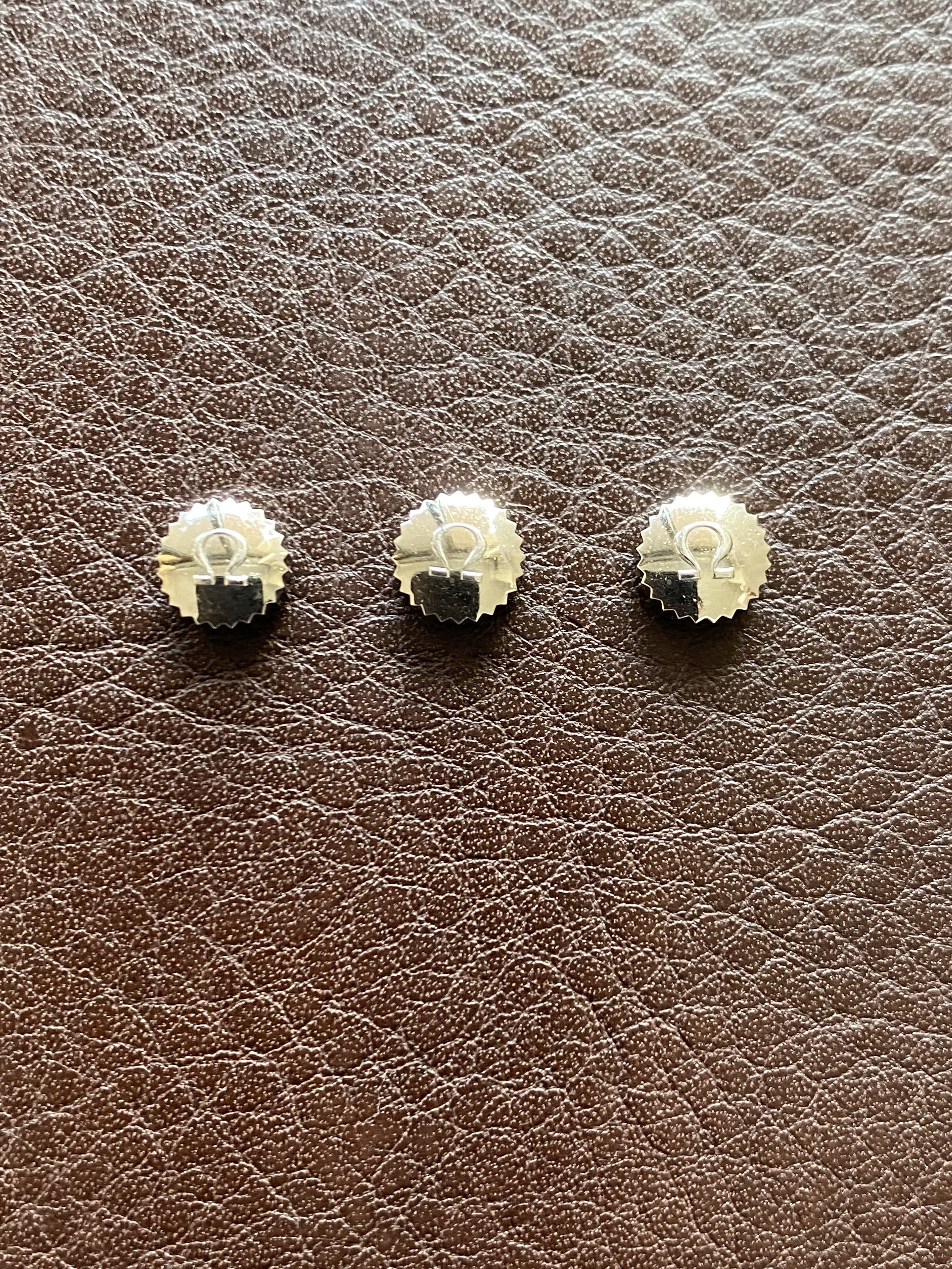 ·For sale are three 24 tooth, flat foot logo vintage Omega crowns. Two are for early Seamaster 300s and one is for early Railmasters. Details are below, and feel free to message me with questions.