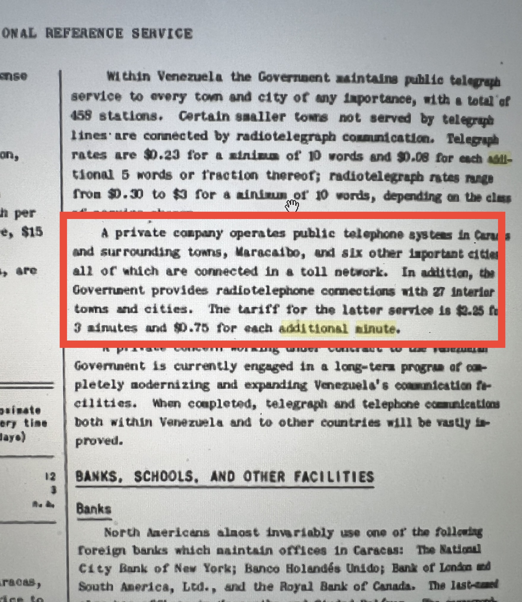A 1949 paper by the U.S. Department of Commerce describing Venezuela’s publicaly run long distance services: