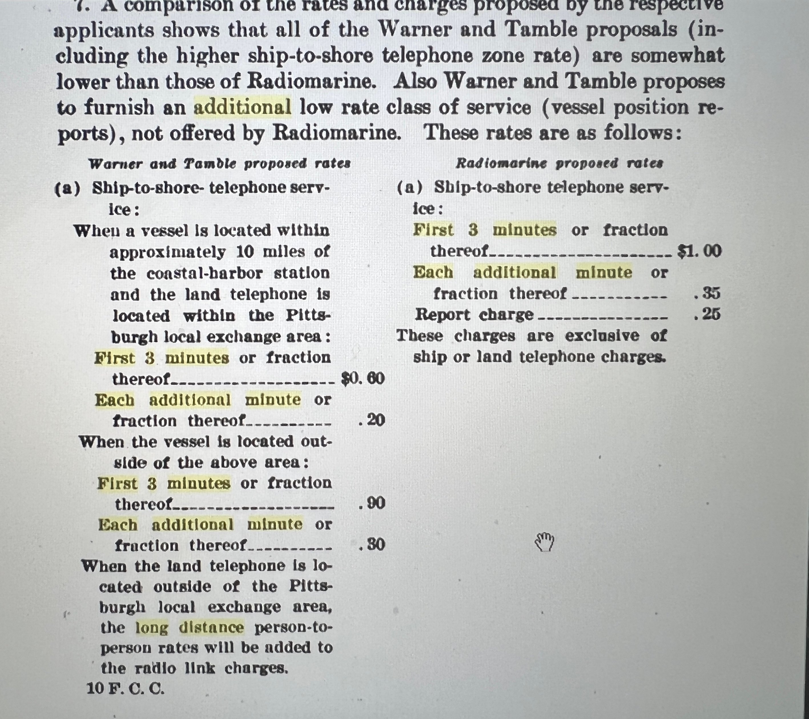 Here, from 1943 FCC considering proposed rate structures for government ship-to-shore long distance rates being proposed for bud/adoption:
