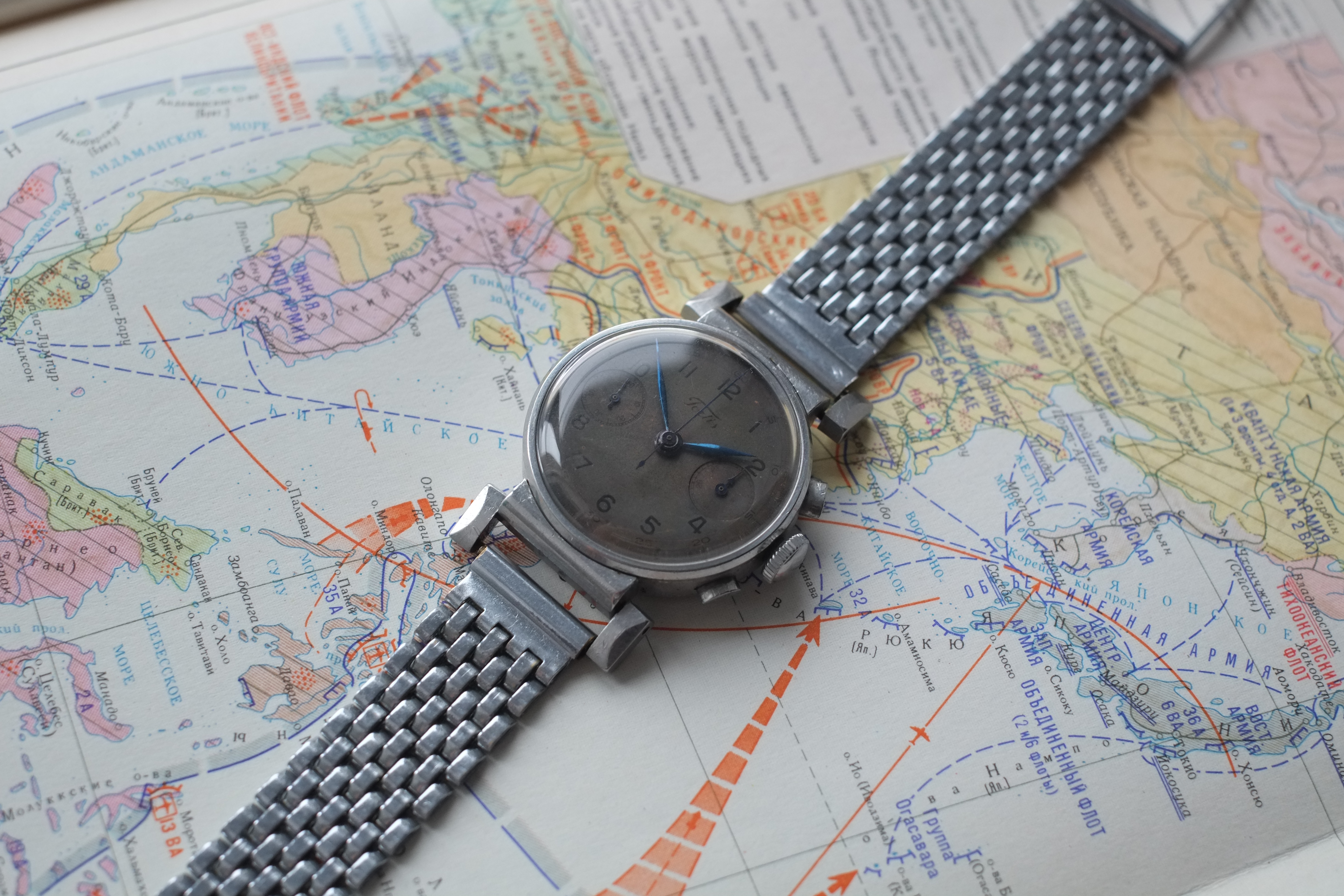 I have this stunning (for me) Venus 150 Fortis chronograph with patina dial, nice flexible lugs, olive pushers and stainless steel (staybrite) case. I can't find anything info about this piece. Only the only link to the 1990 auction results. Without any detailed description, unfortunately. If you have a similar chronograph. Or photos / ads / posters. Any information - share it, please. Photo from VENTE ANTIQUORUM N°56 results:
