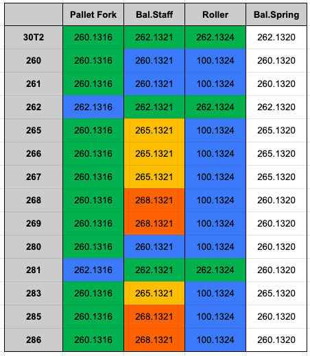 Hello thanks for your help so far. Someone has stepped forward and offered a balance with good condition staff and roller table (impulse jewel intact). However there is no balance spring and the balance screws have been robbed. It was taken from a 30T2(SC). I am therefore planning to use the roller table and wonder if the centre seconds variant will be compatible to a 30T2 sub-seconds variant? Regards, Darren