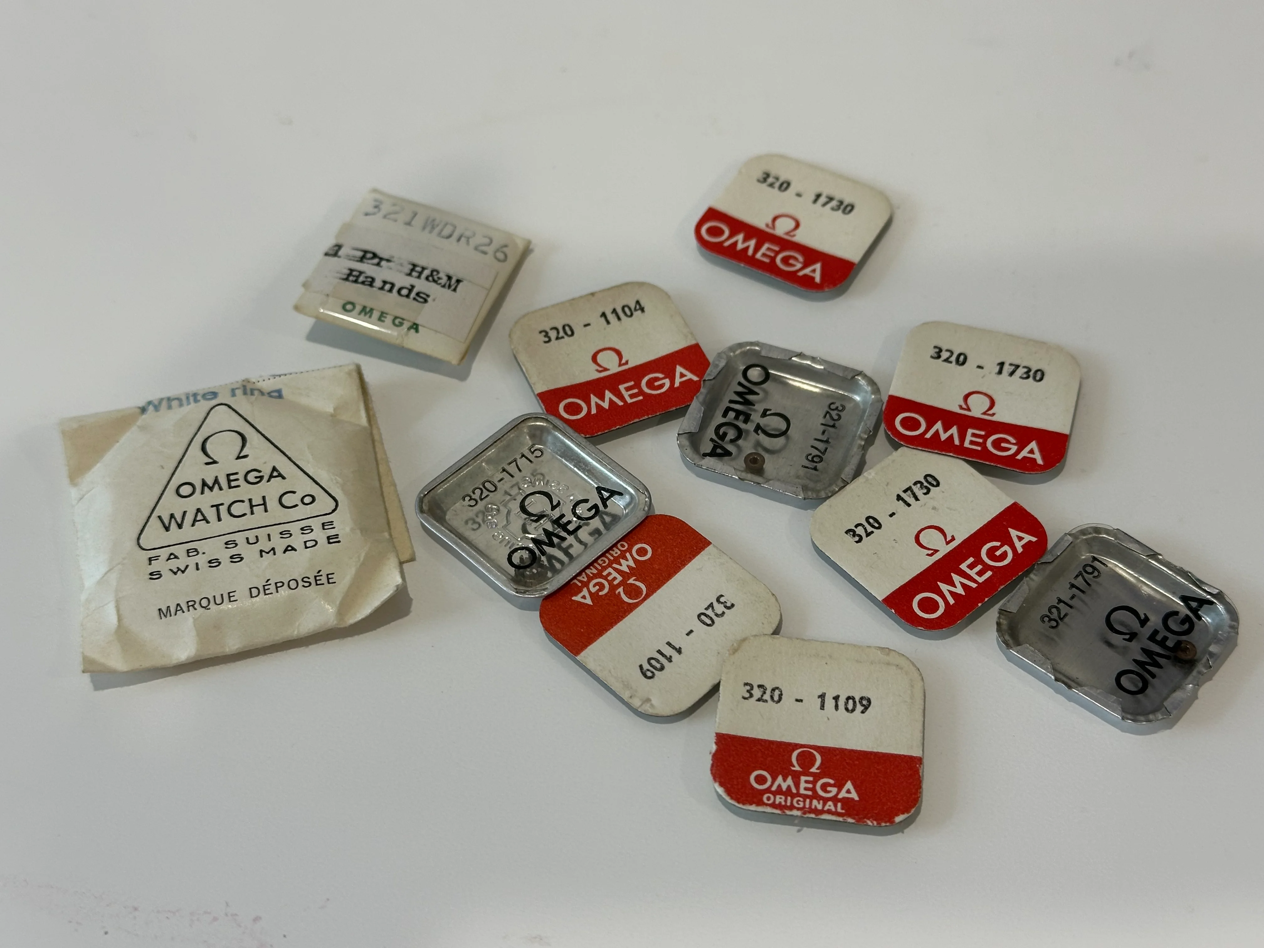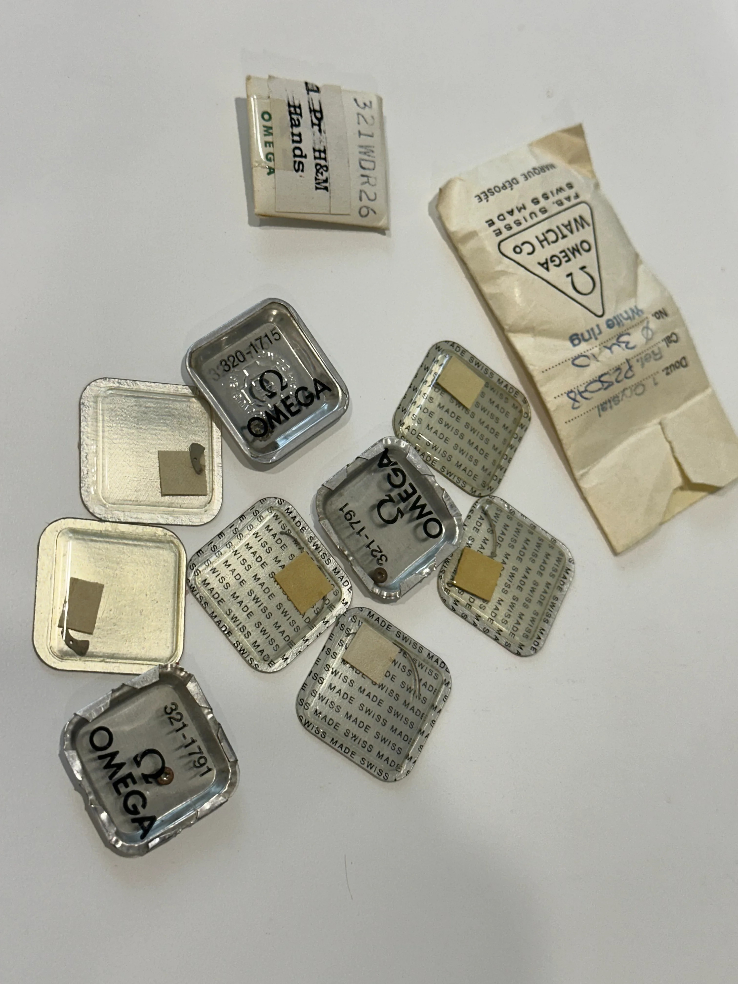 ·Here is a NOS parts lot for 320 and 321 movements. Surplus to my needs as my watchmaker doesn't need them for the rebuild of my Speedy.
