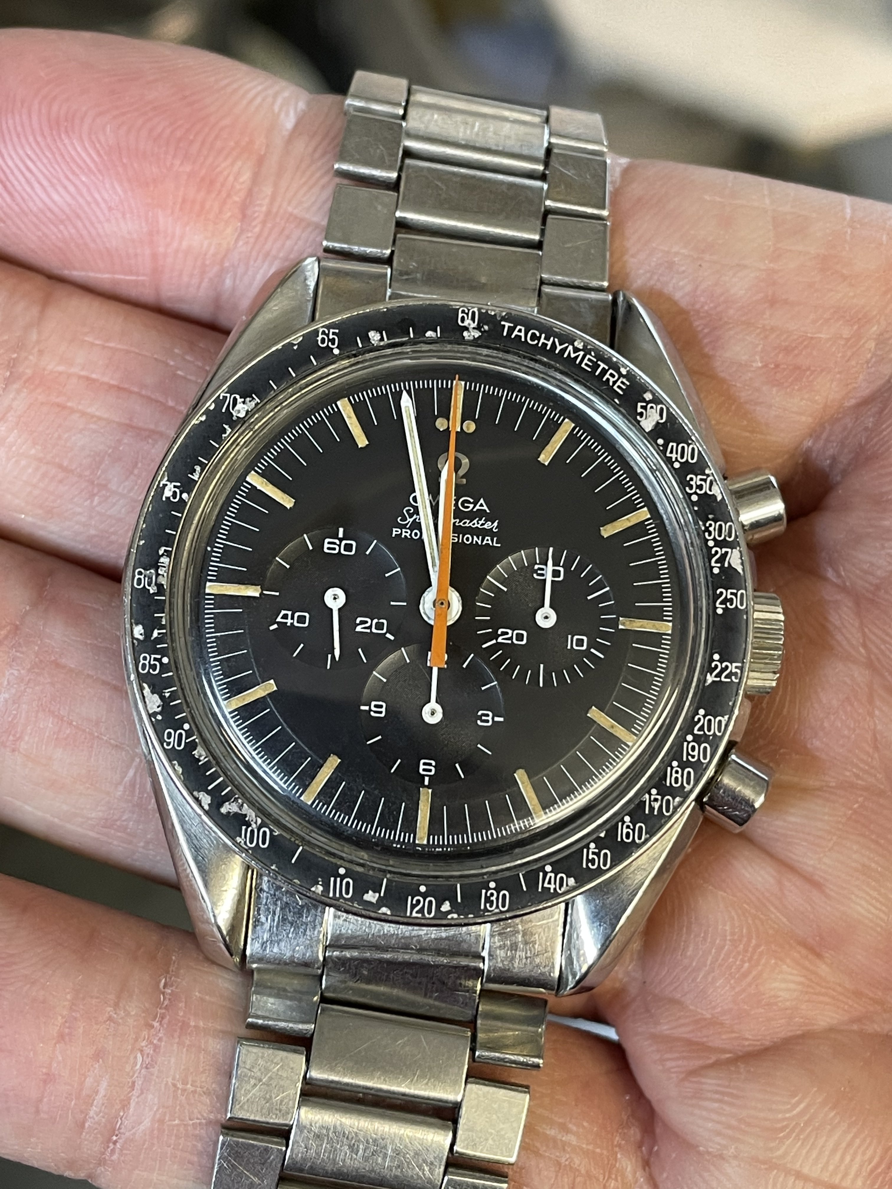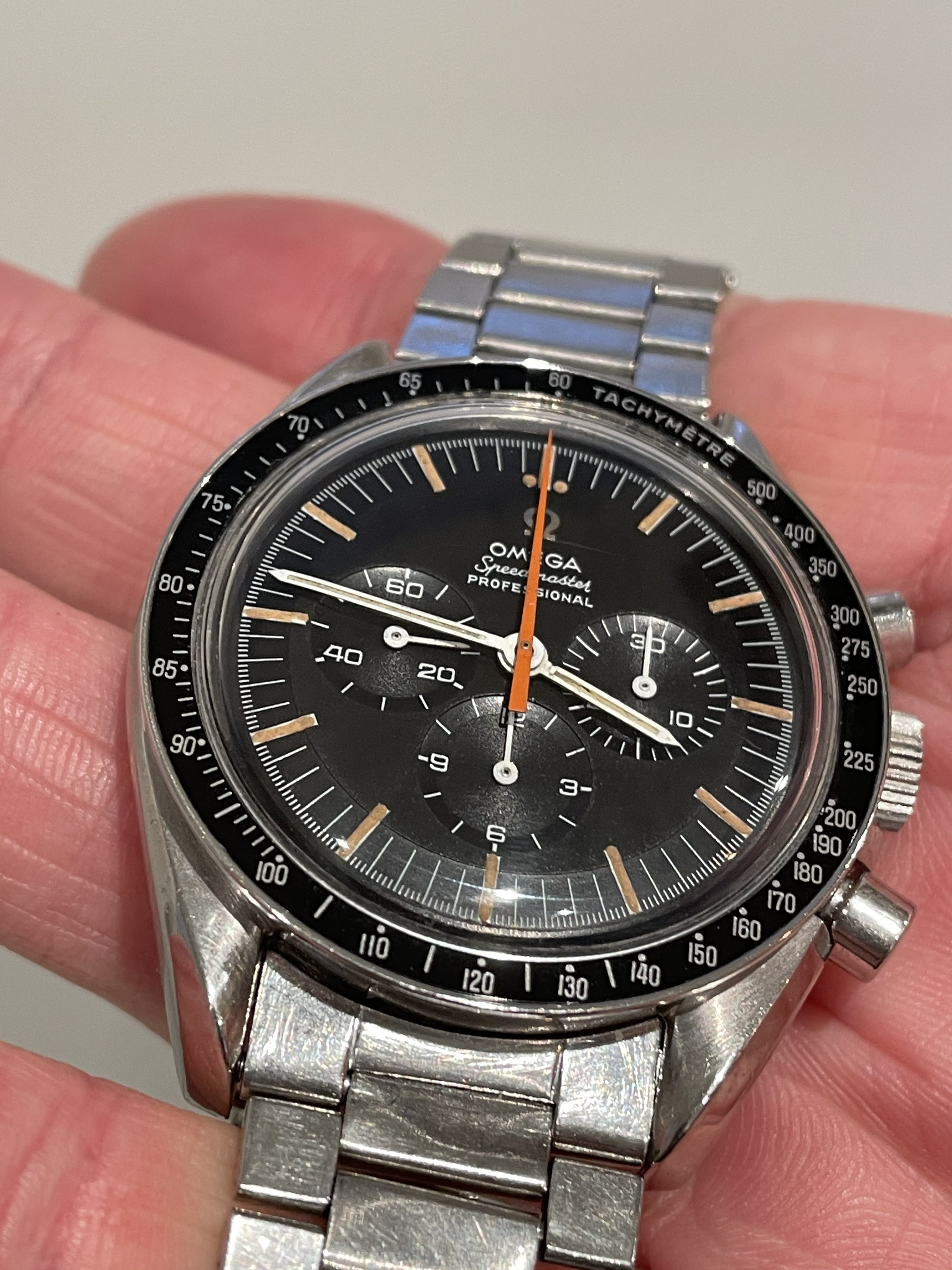 incredible dial... beautiful patina lume plays perfectly off of the orange hand.