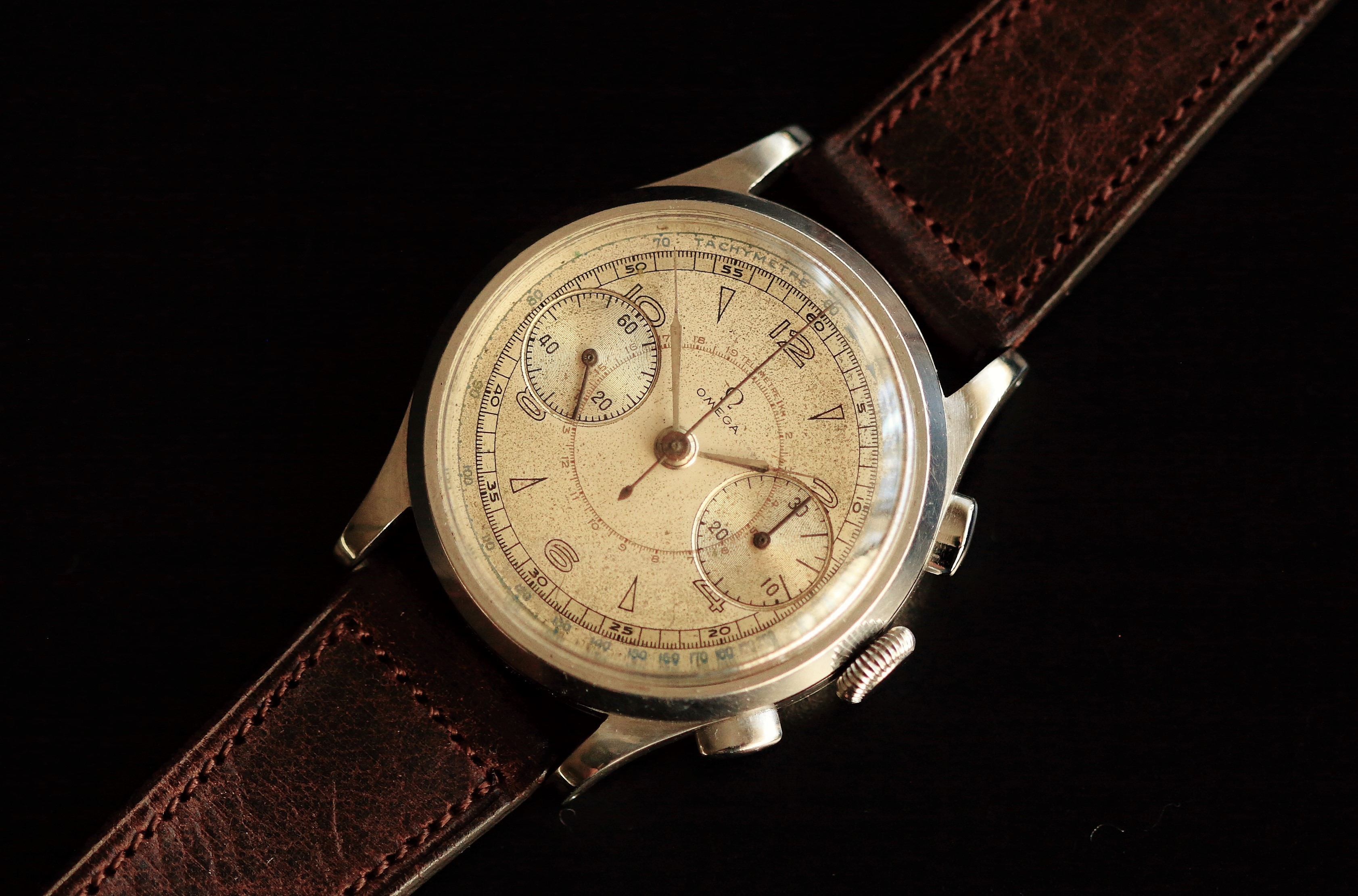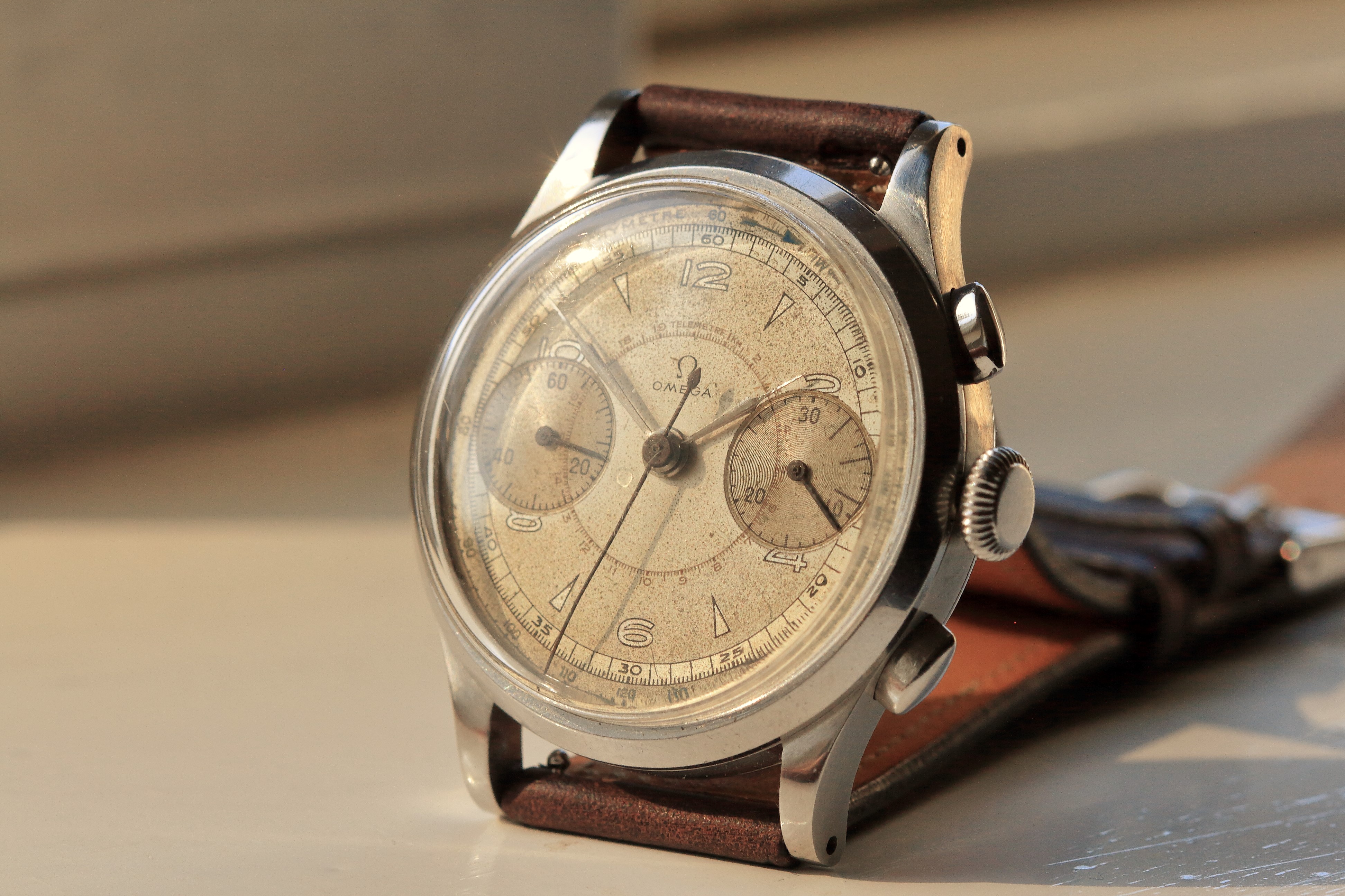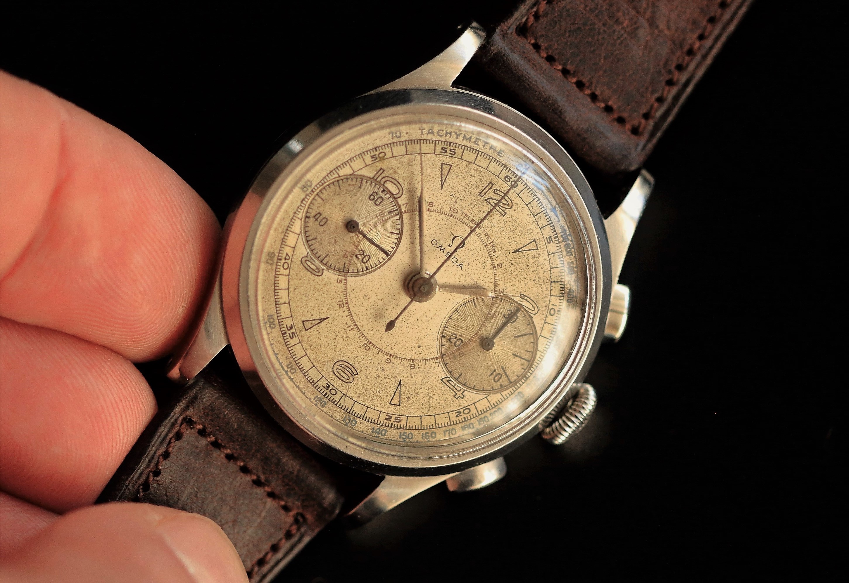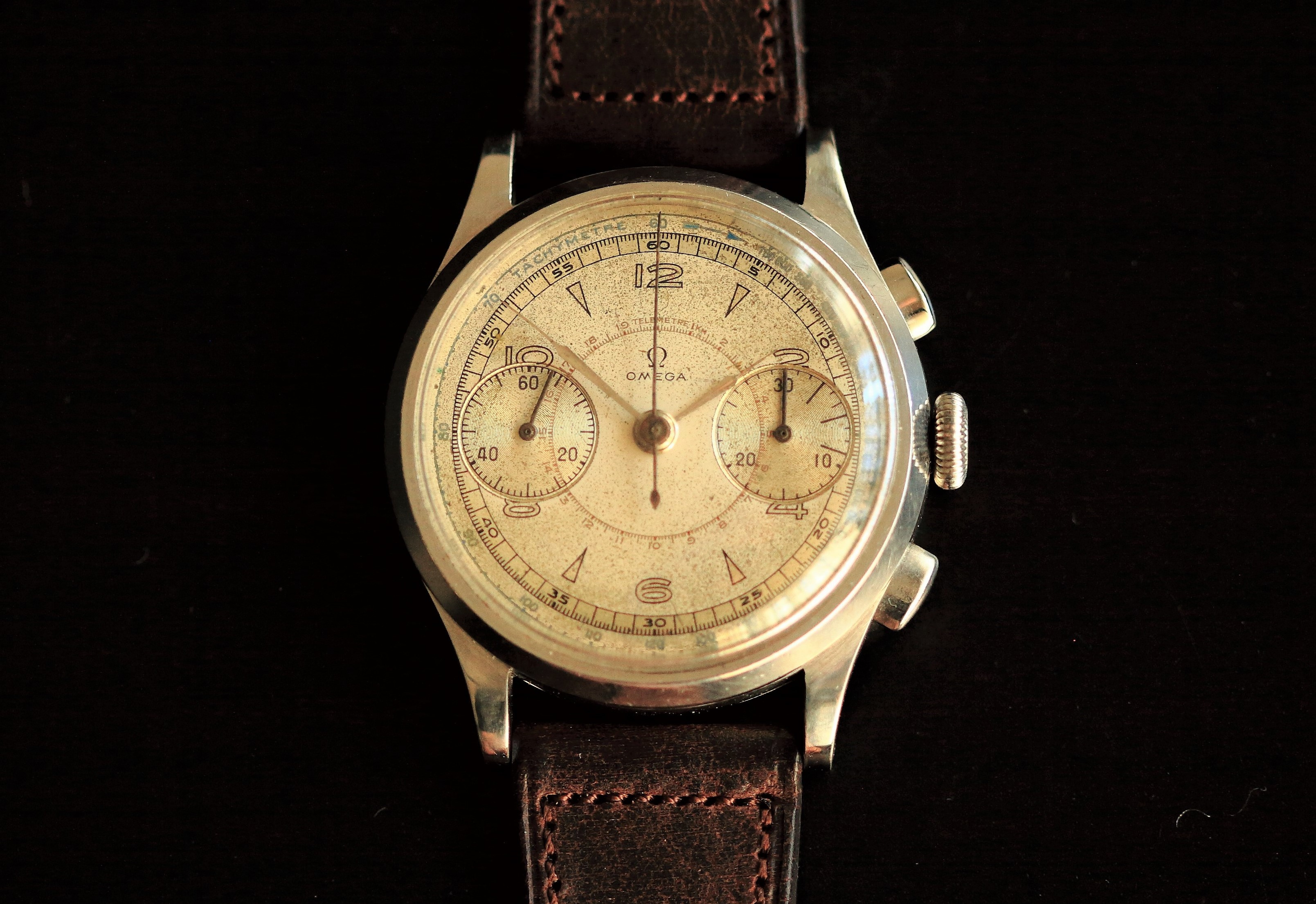 ·So since the beginnings of my Omega watch collecting 20 years ago I've always had the desire for a 33.3 chrono. With their beautiful 1930's and 40's styling and a case diameter of around 38mm they are a substantial watch with considerable wrist presence.