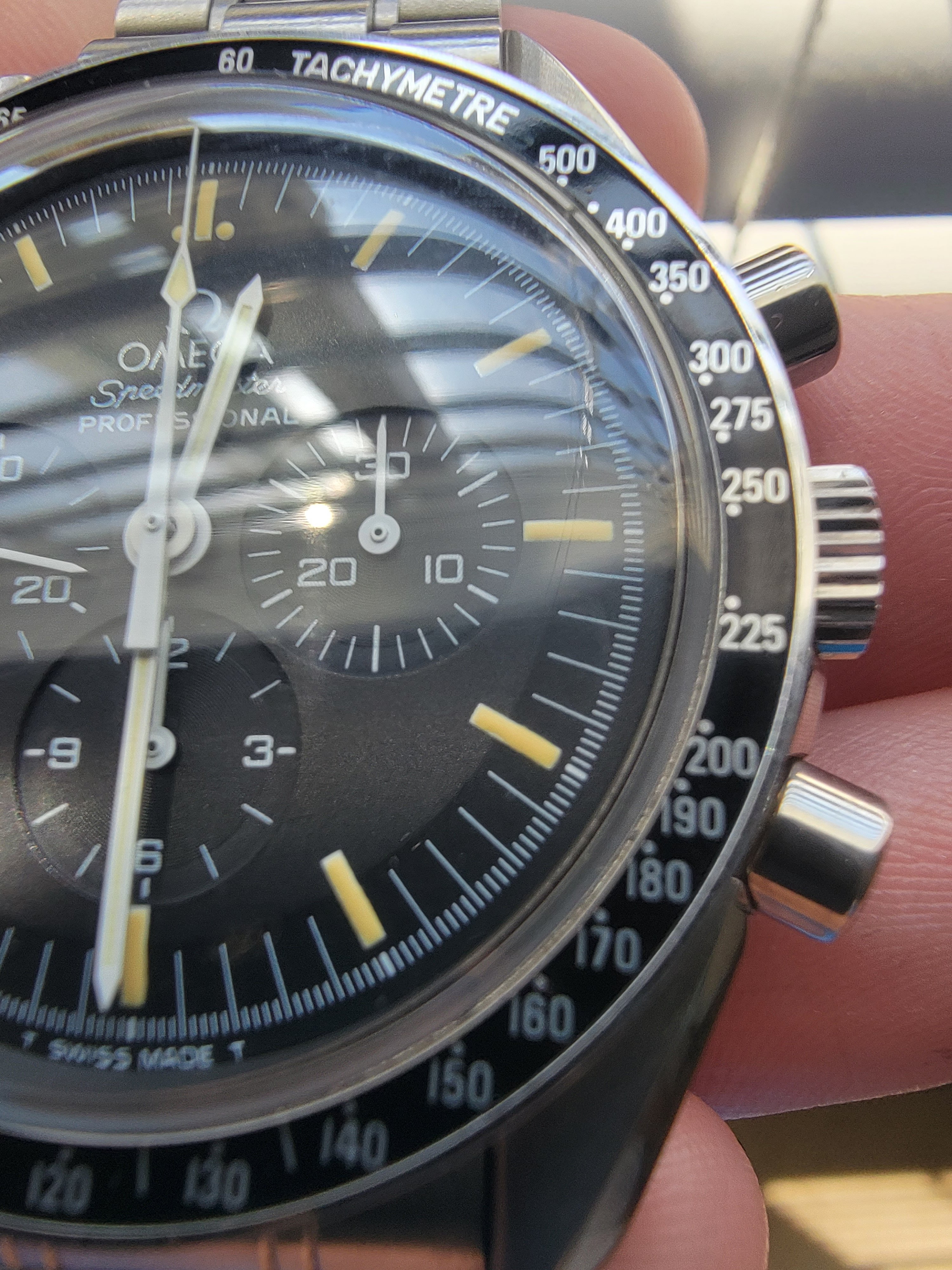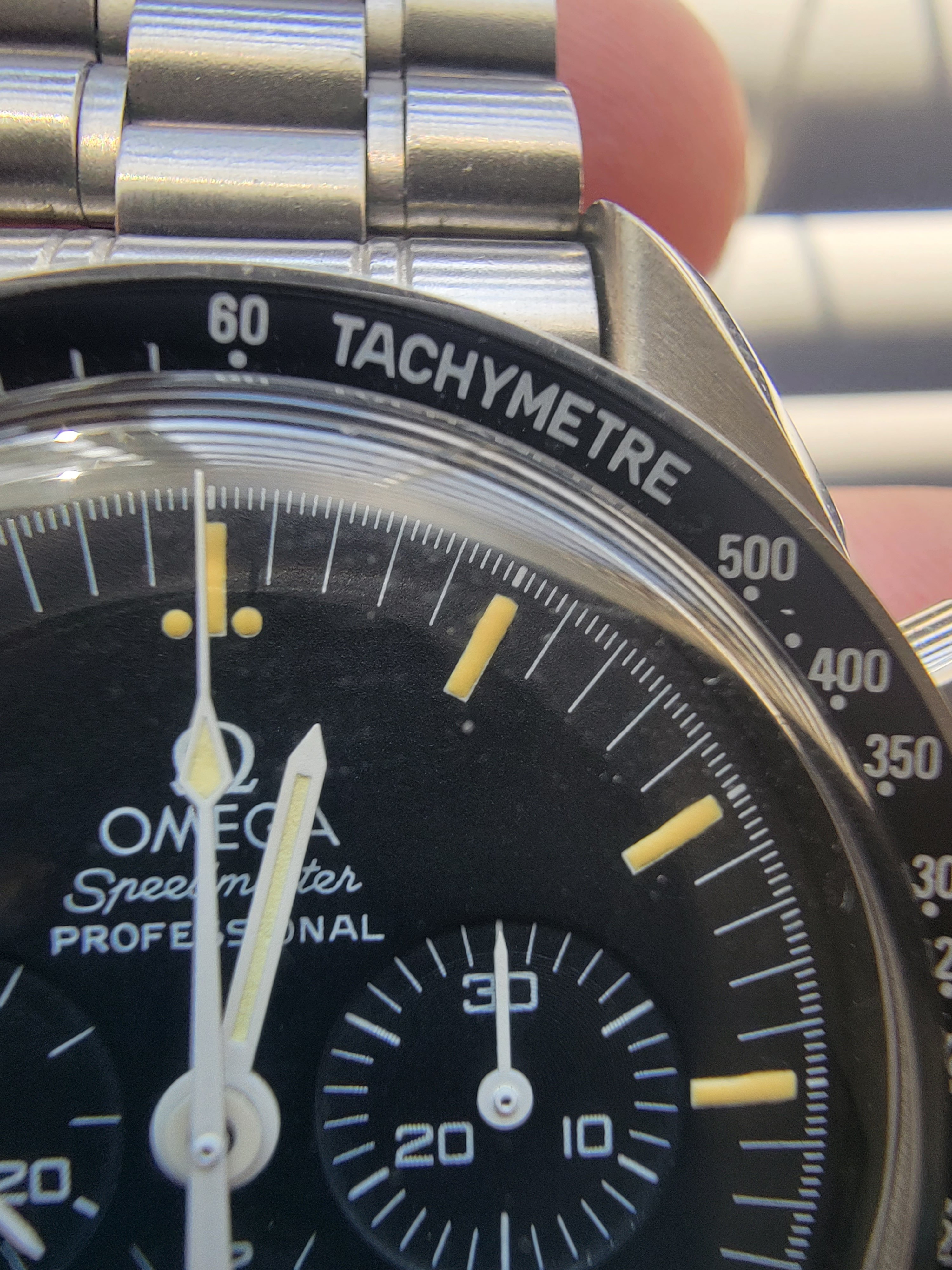 ·Hello - just wanted to get some opinions on this bezel and if its time period is correct. The serial dates to 91 and was wondering if the bezel is genuine and also period correct? I know it is misaligned by a click. The watch is a 3592.50 Apollo De Luxe version. Let me know if you need any more pictures or information. My concern is the tachymetre font might be off and the little line markers to the left of 60 aren't fully showing and come down too far. Thank you for any help!