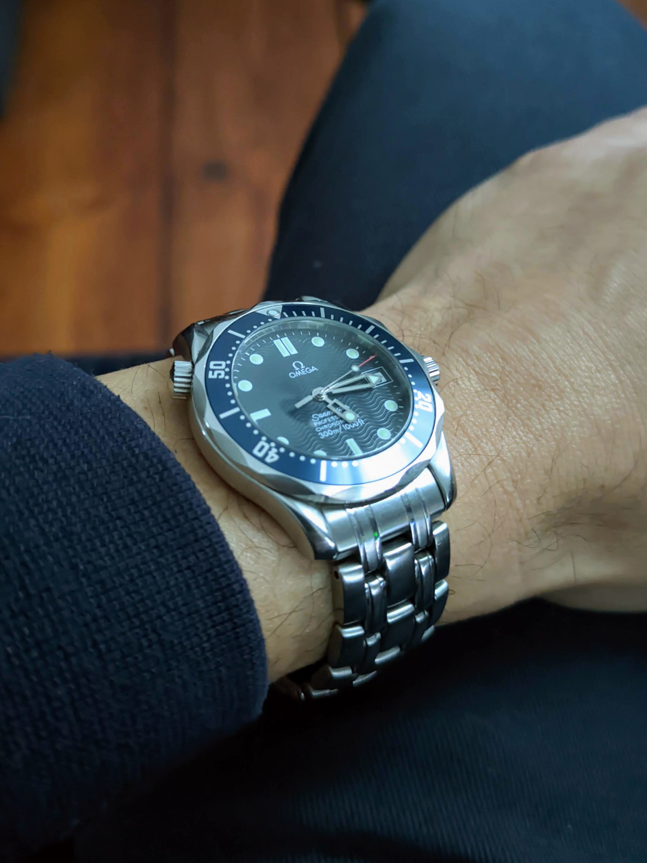 Here's mine! My first Omega was the quartz from 2011 with blue bezel, i guess that one was 41mm. I ended up selling it and went for this one- really like the yellow/orange lume plots, the steel bezel and size! Currently testing if it's still waterproof and looking forward to wearing it in summer