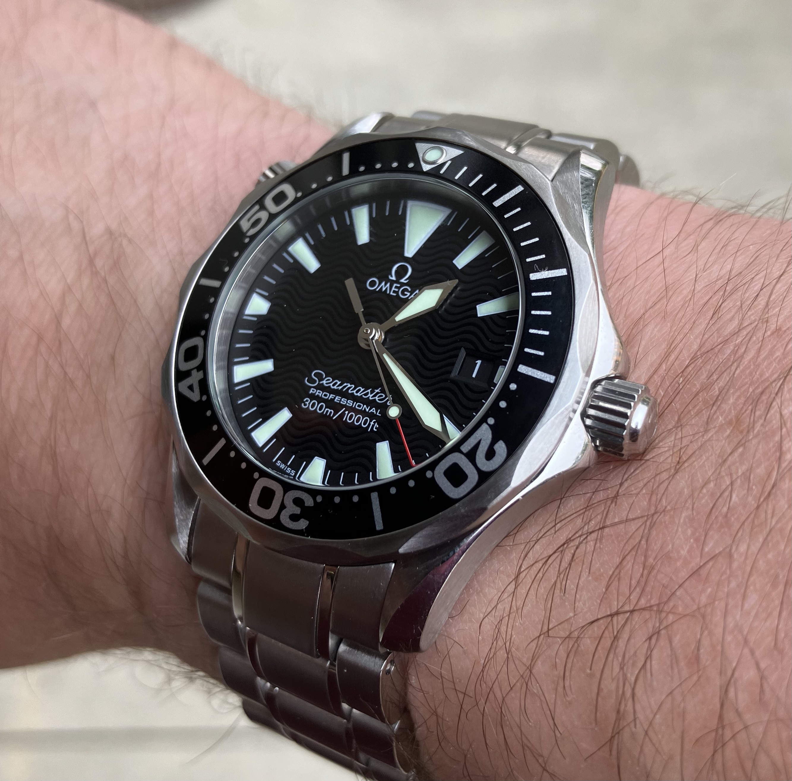 Edit: also have to remark: this is first quartz watch I’ve owned where the second hand lands precisely on a tick-mark all the way around the dial. Good job, Omega.