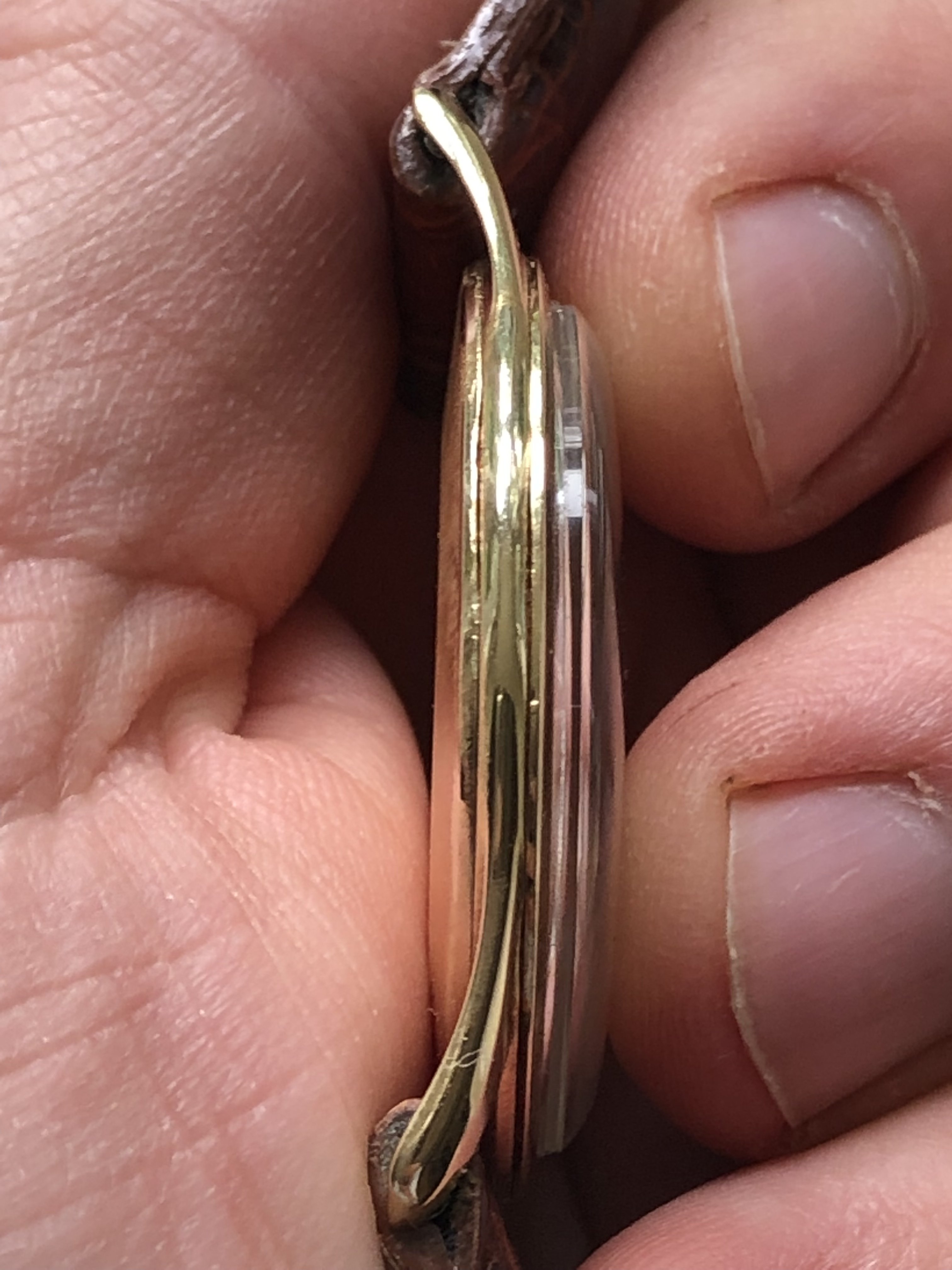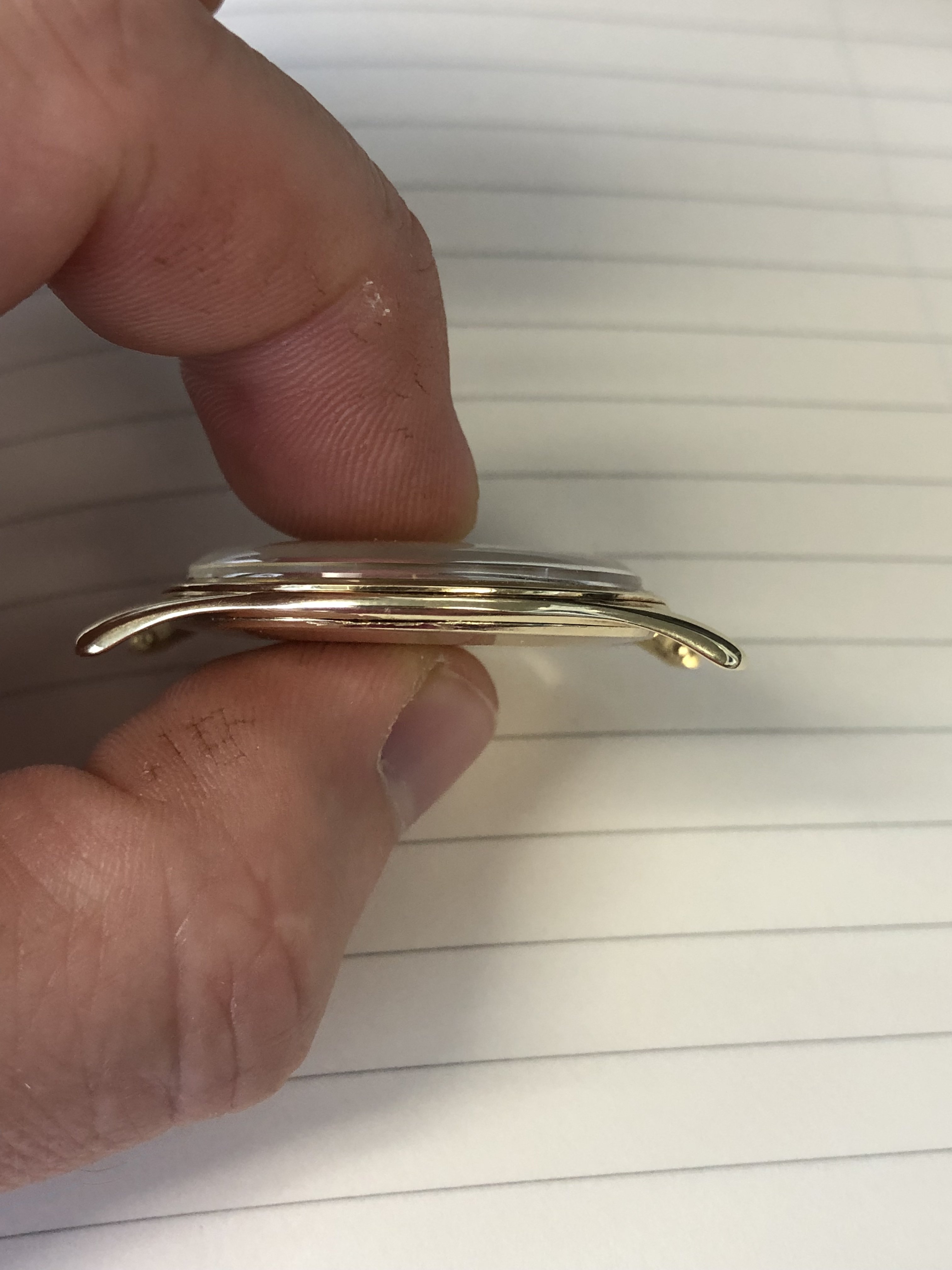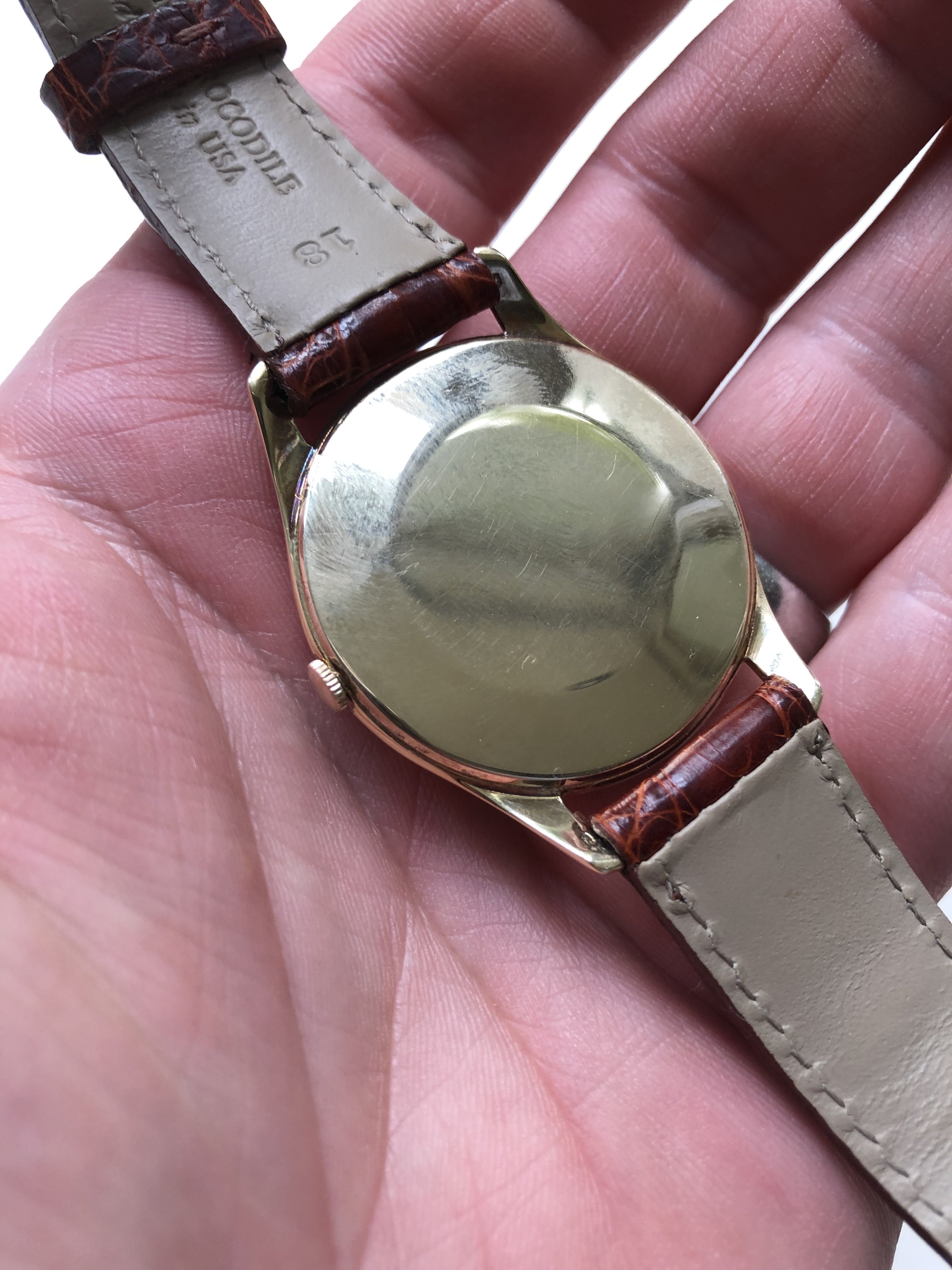 Case: 36mm solid 14kt gold snap back case with hallmarks on lugs. It doesn't appear to have been overly polished and there is some nice patina developing. Caseback is marked Tourneau and has nice perlage. 18mm lugs.