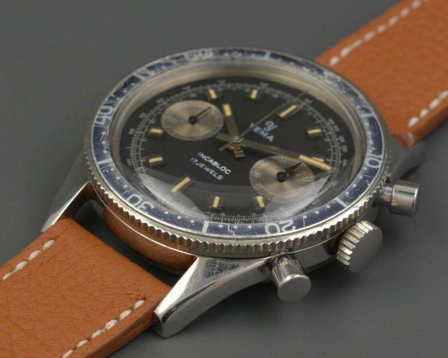 I have become enthused by the 'first generation' Heuer Autavias, particularly the 3646, powered by Valjoux 92s, but the prices, for a decent-quality example, range from steep to vertical. I think the case is made by Huguenin Freres of Omega fame, (althogh no HF in the casebacks) and if i'm not very much mistaken, was used in various watches of lesser (ergo more affordable) brands...for example the Yema 'Daytona', pictured. (caseback also unmarked)