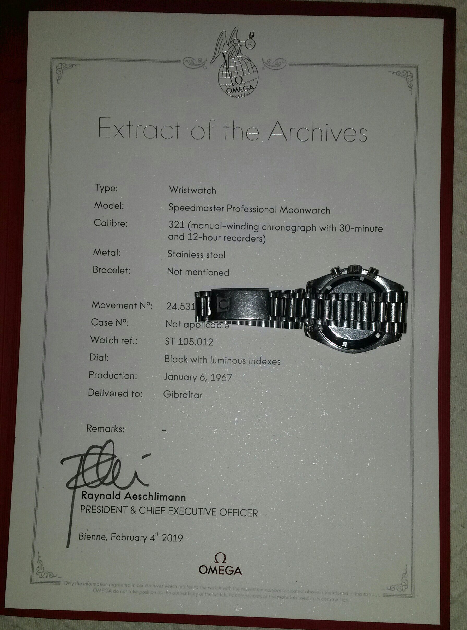 We've had this, pre-moon, Omega Speedmaster, in the family, for over 50 years now. It was delivered to Gibraltar in 1967, but I'm pretty sure my Dad got it, in London, in the late 1960's.