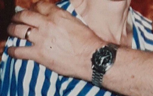This old photograph of my Dad wearing it (on its 1171/633 service bracelet taken in the late 1970's or early 1980's) clearly shows that the dial was not brown, early in its life.