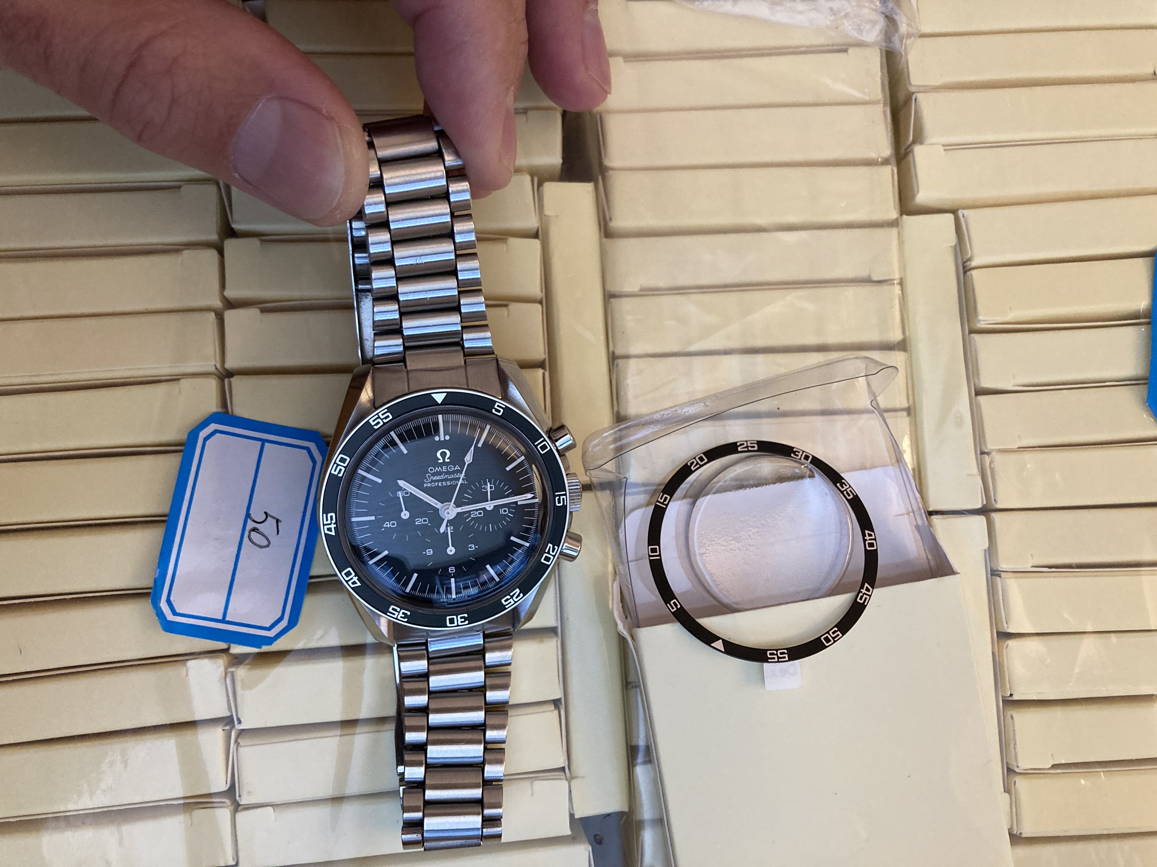 [...] However, one of the requested changes was the replacement of the Tachymètre bezel by a clear "60 minutes" bezel [...] Speedmaster in June & July 1971.