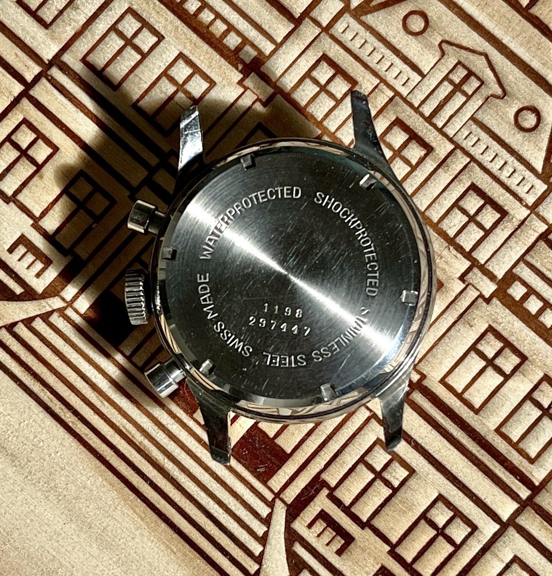 Movement: Valjoux 92, serviced in Jan 2023 for CHF 450 hence running smoothly. All chrono functions work as they should. Service receipt will be included. One movement holding clamp seems to be missing, but the movement is held firmly regardless.