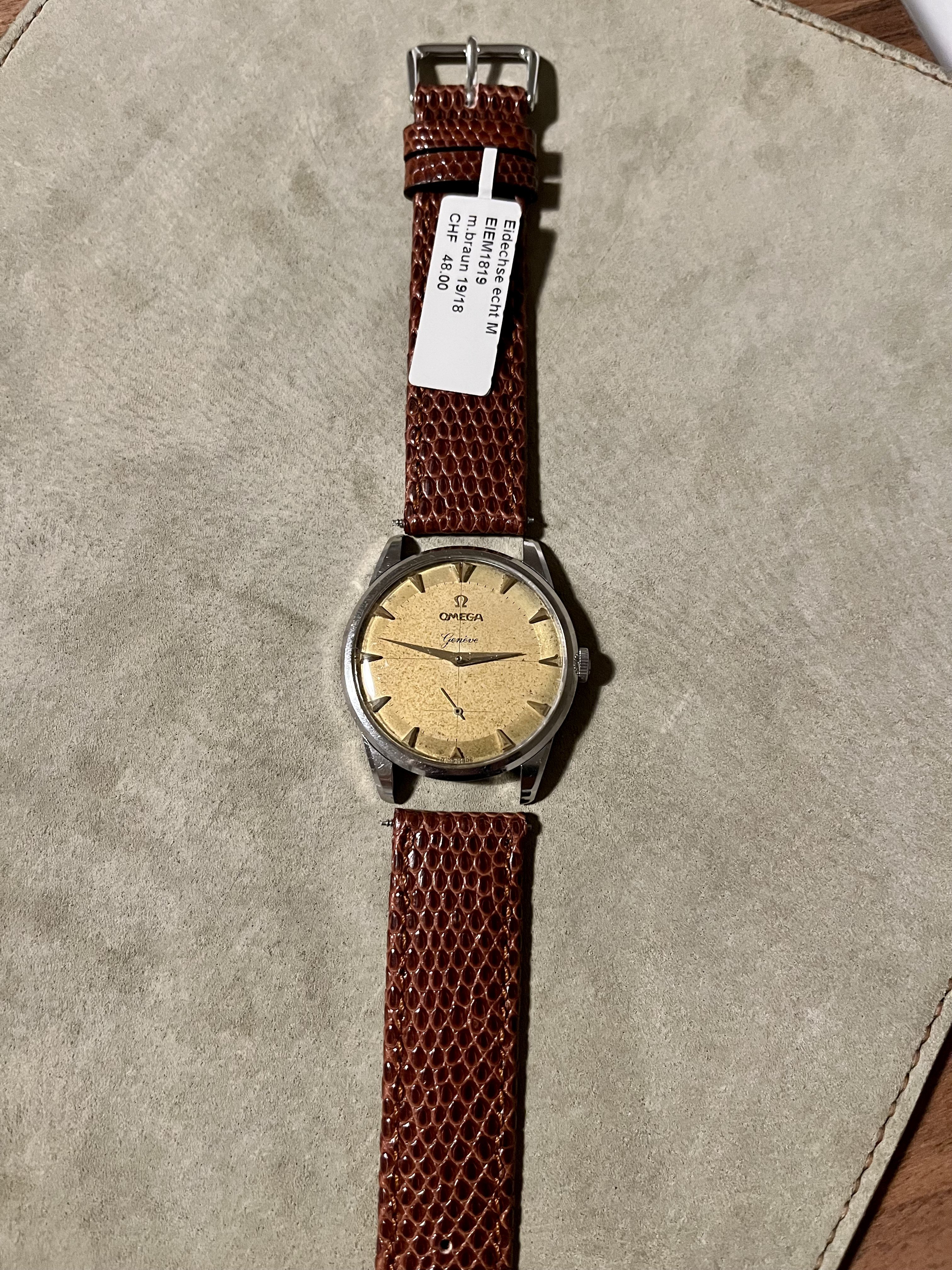 Up for same is a jumbo Omega (cursive) Genève from the 1950s with ref. 2748 that does not come up for sale often. With 36mm in diameter it gives a great wrist presence.