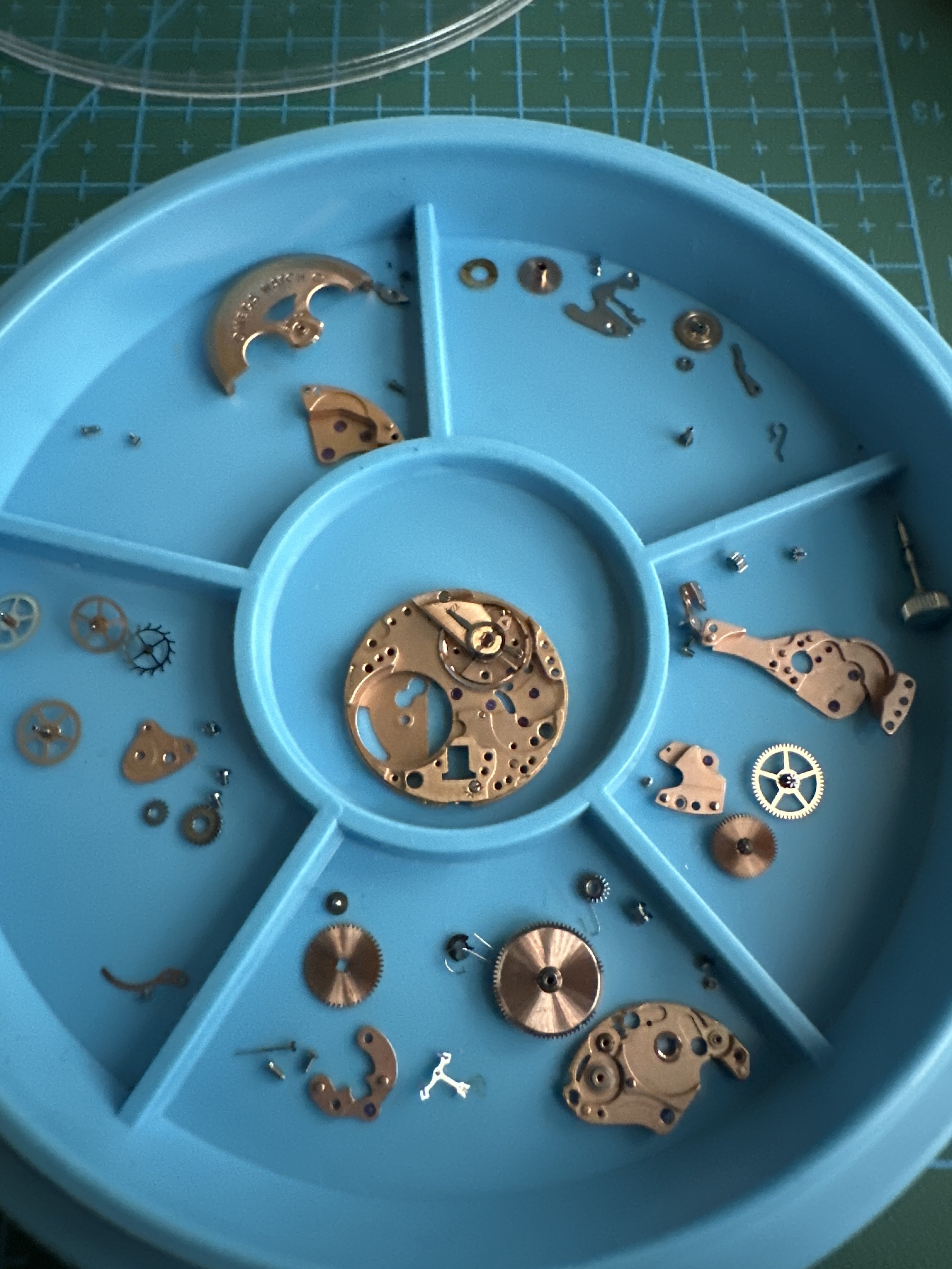 I just bought a „non-runner“ 565.012 on eBay and was wondering where I can restore it. So once the movement was out of its case one could easily see the issue: it was dripping of oil…