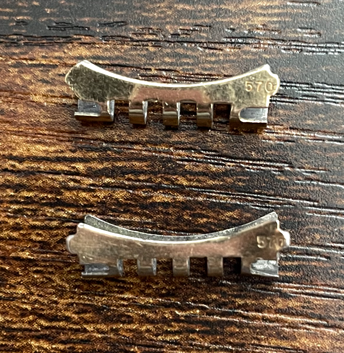 I have a set of 570 gold plated endlinks that were included in the lot which I am questioning as they don’t seem to be legit. I want to check with this group before I list them for sale. If they aren’t legit (which I don’t think they are) I don’t want to misrepresent them.