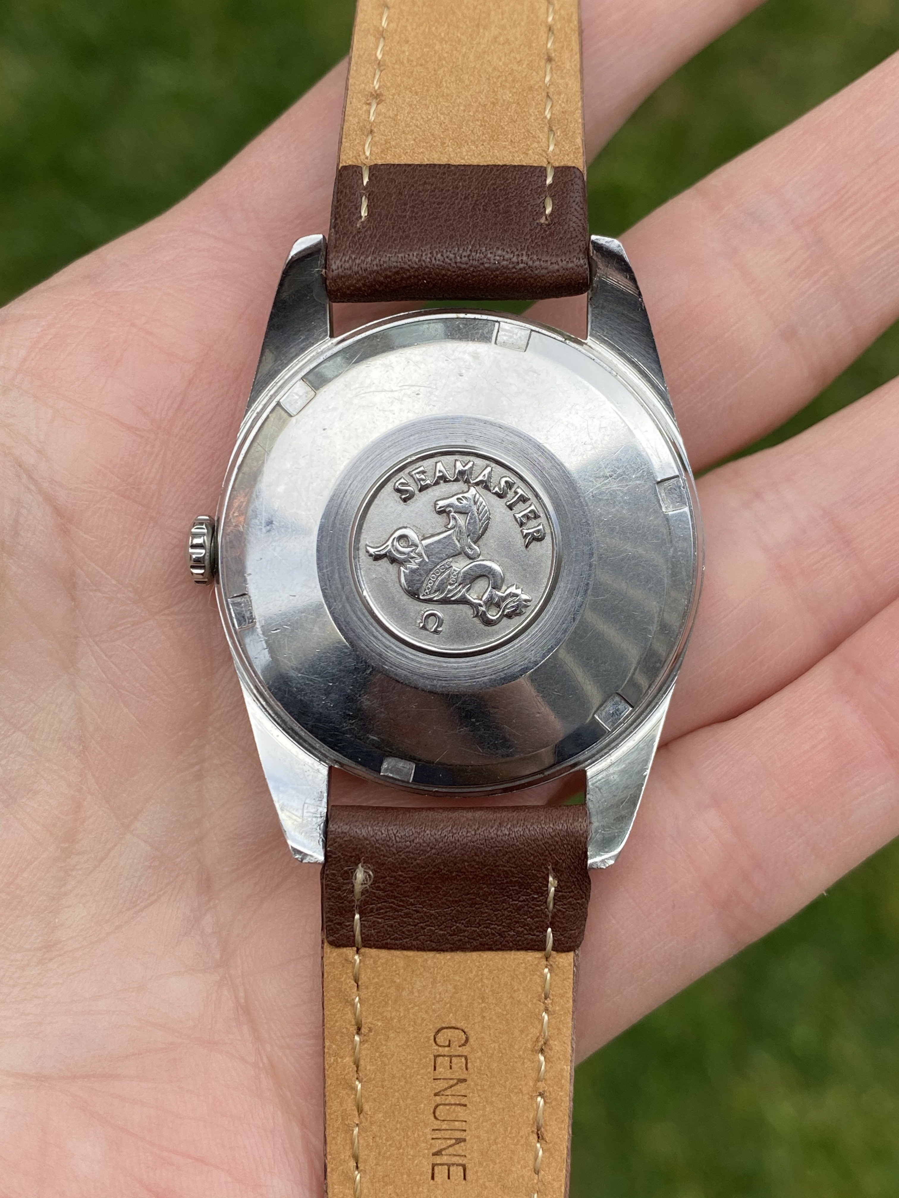Case: Original 35mm 166.010 case is in nice condition and appears to be unpolished. There's one small ding on the side of the bottom-right lug (not noticeable from the front), otherwise no significant scratches or dings.