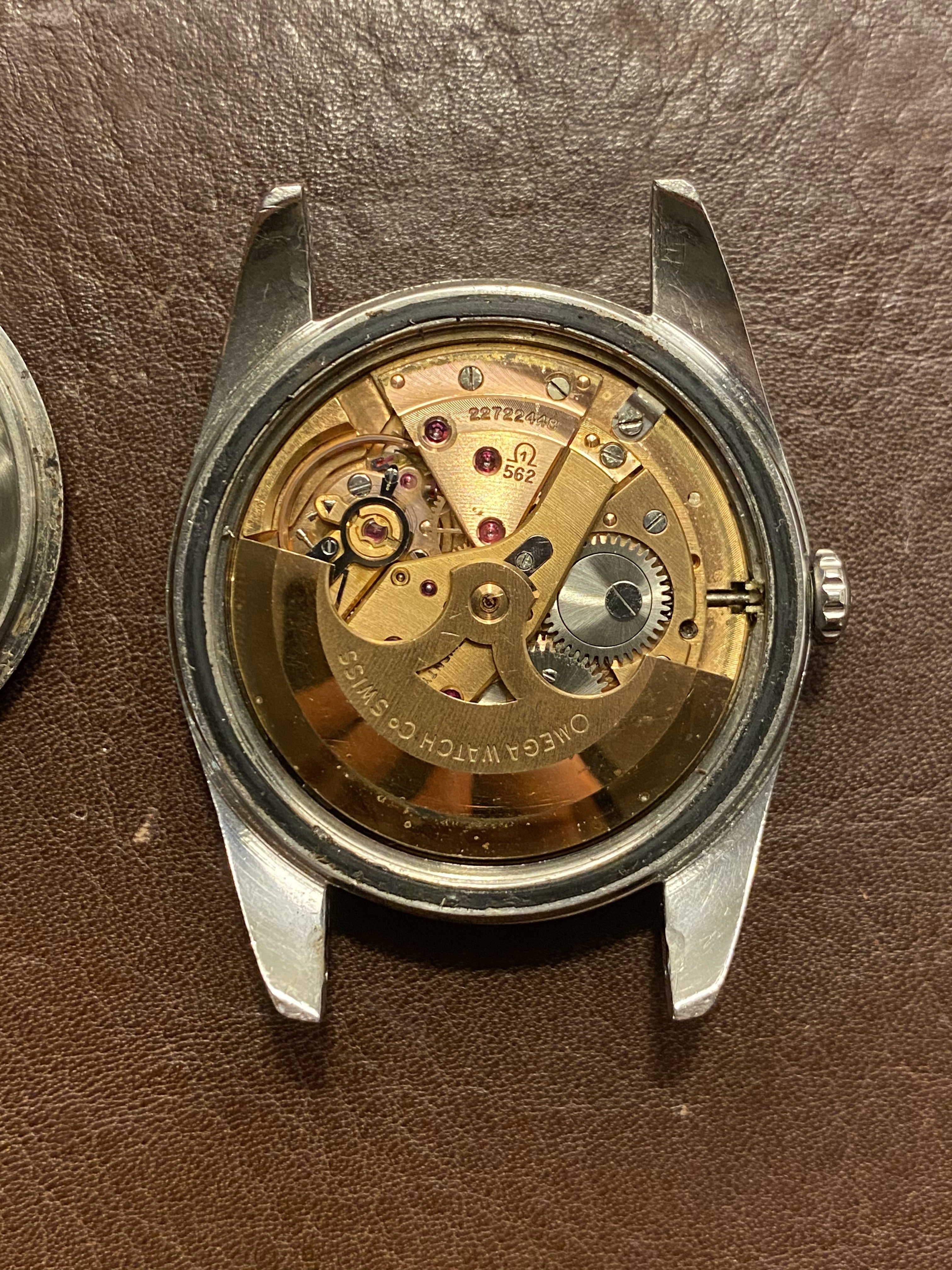 Movement: Original 562 caliber automatic movement runs, winds, and sets well, but service history is unknown. Serial number dates the watch to 1965.