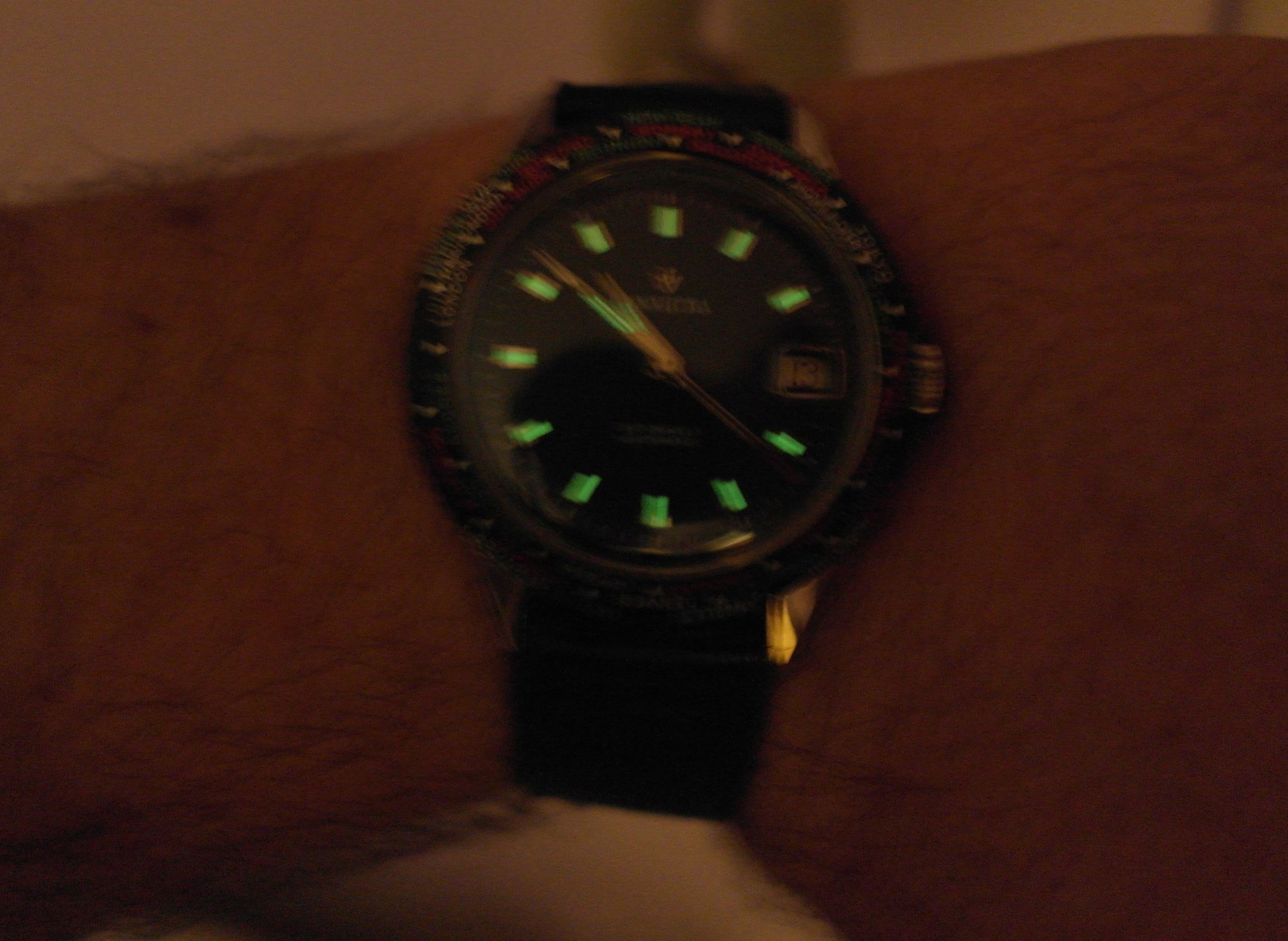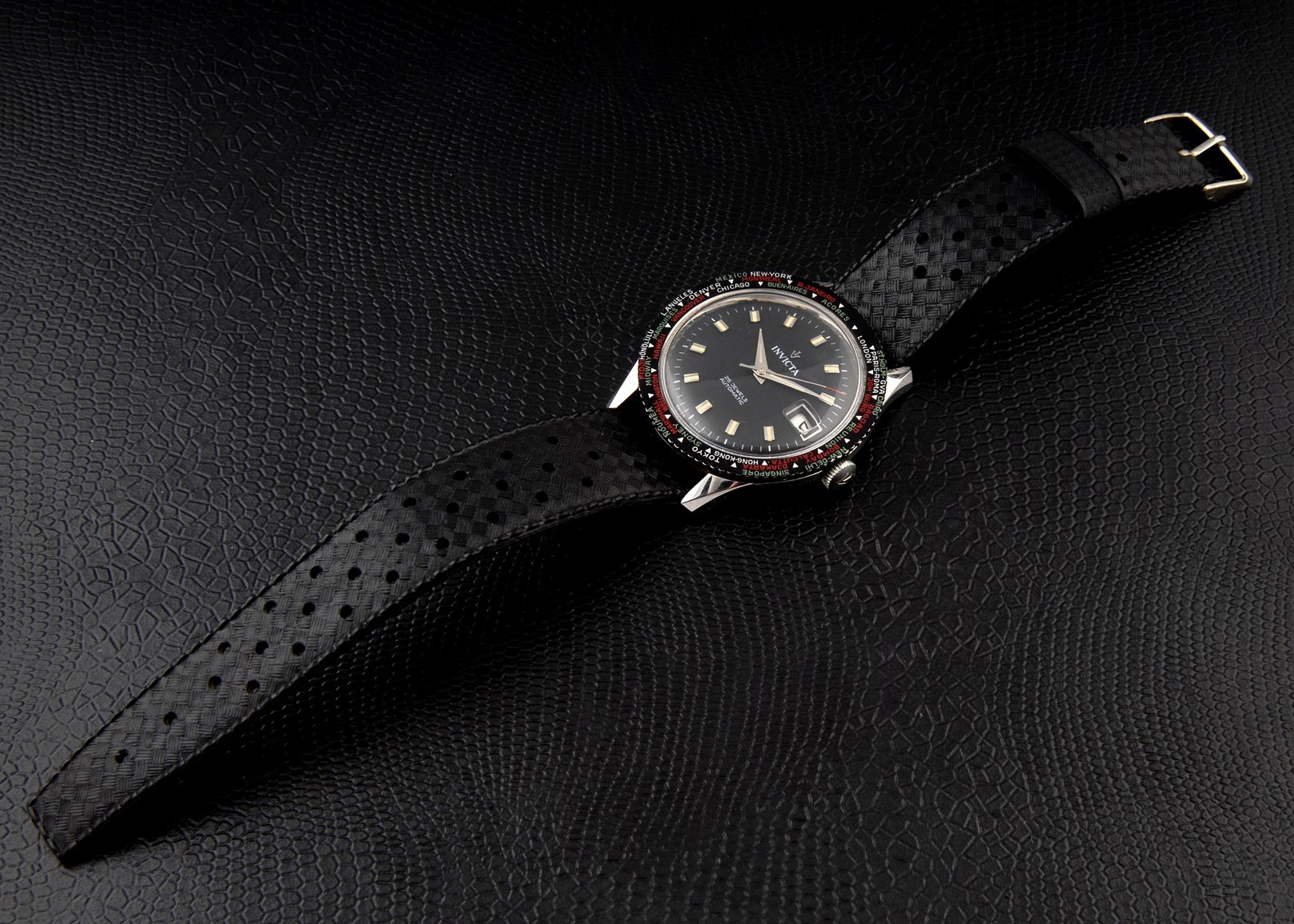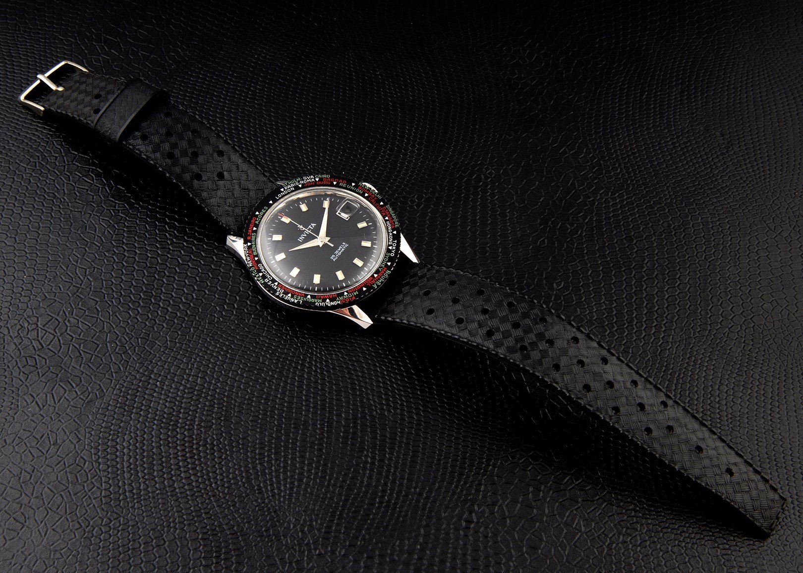 DIAL: Perfectly preserved vintage Invicta black dial with no marks, or patination