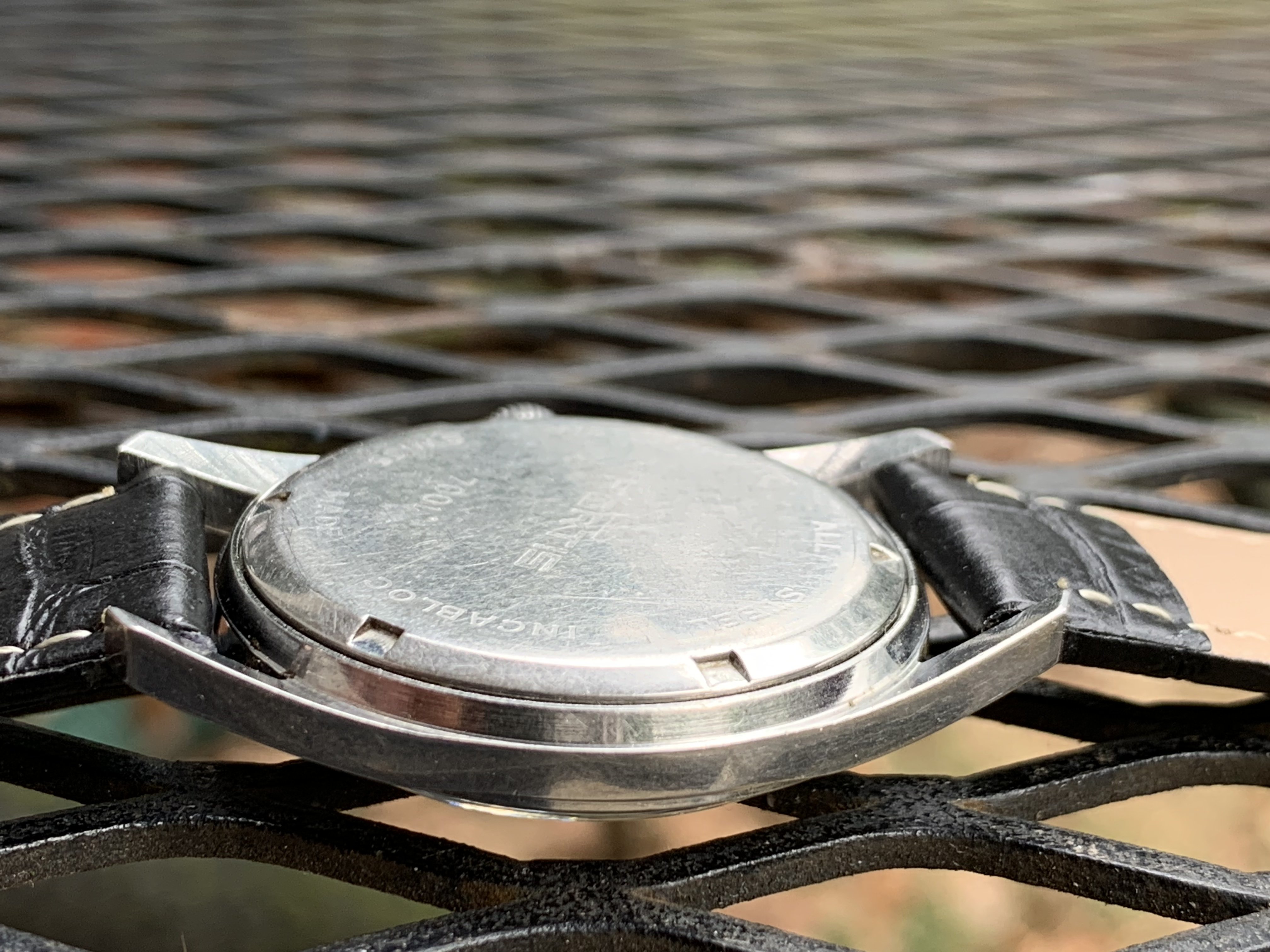 Stainless case is 33x41 with 17mm lugs. Silver sunburst dial is lovely with bright yellow Tritium pips and matching hands. Looks to have a few very light scratches on the dial that I didn’t notice until I zoomed in on the photos (not visible with the naked eye. Factory crown and case lines are sharp and appear unpolished