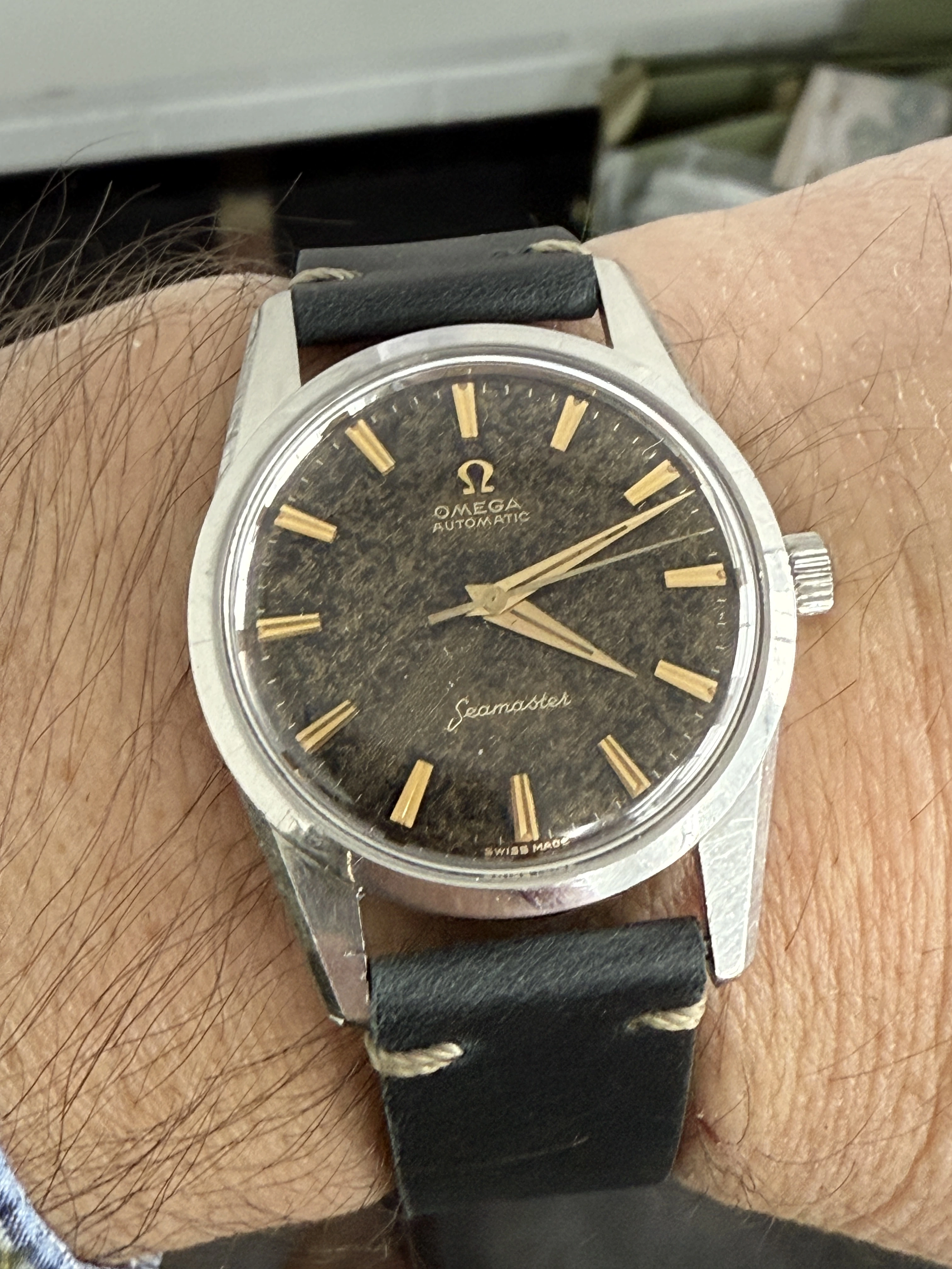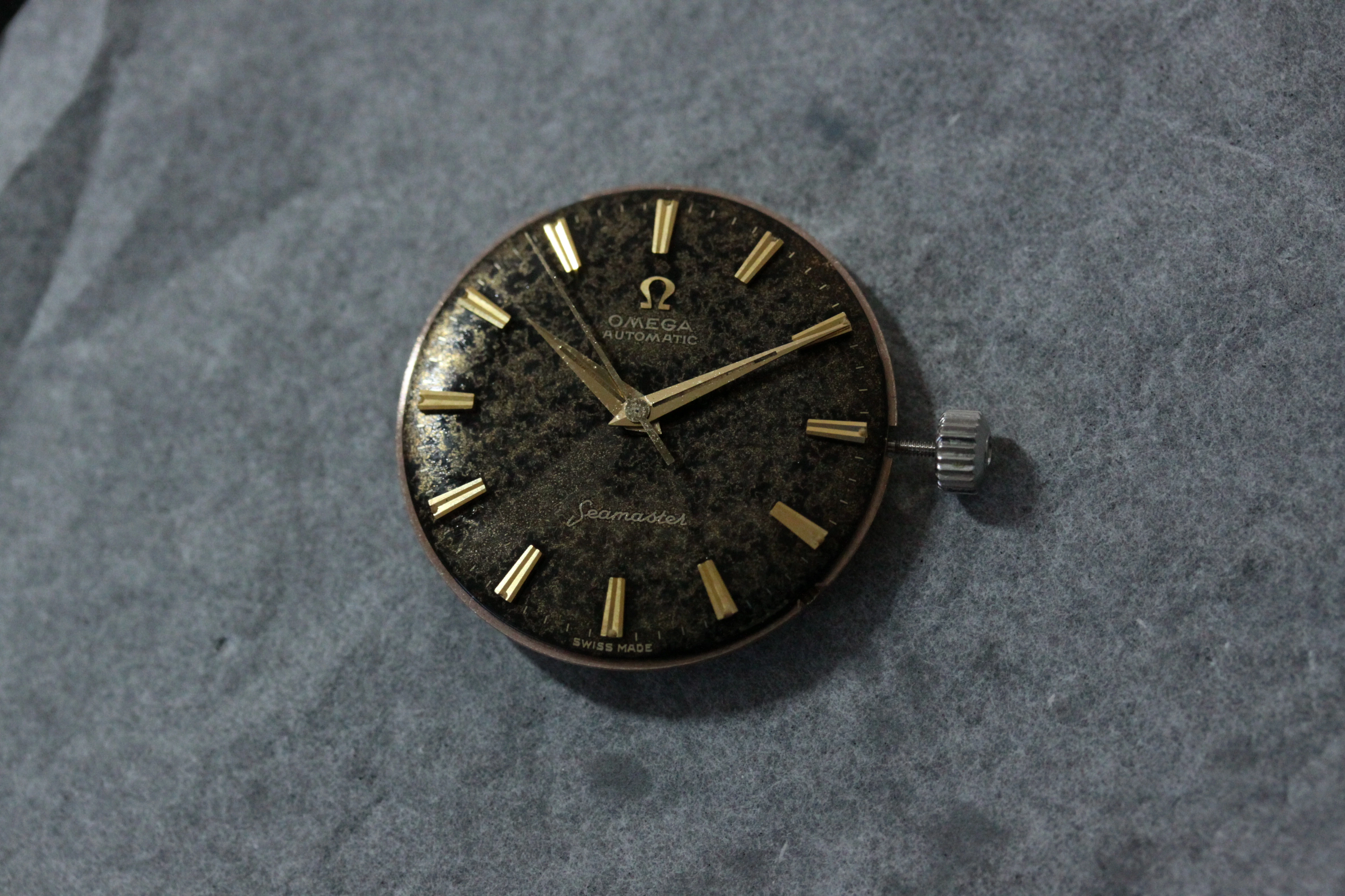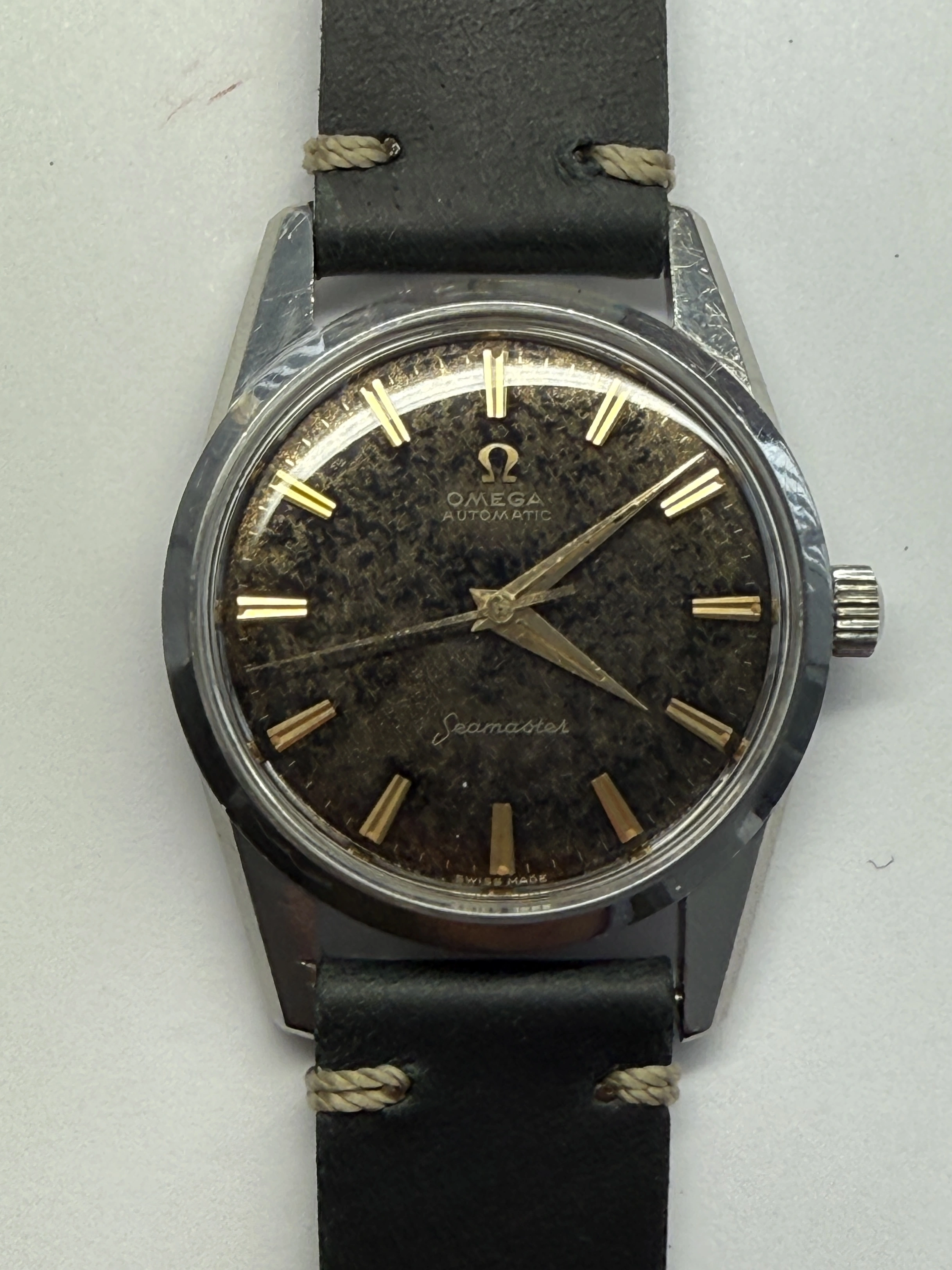 All original black/gilt dial 50s and 60s Omega are rare and often messed about. Indeed I have more than once advised noobs to avoid them like the plague. This one is clearly original but heavily patinated. Back in the day this is exactly the kind of watch which would have been routinely redialled. Maybe it was chucked in a drawer and forgotten about.