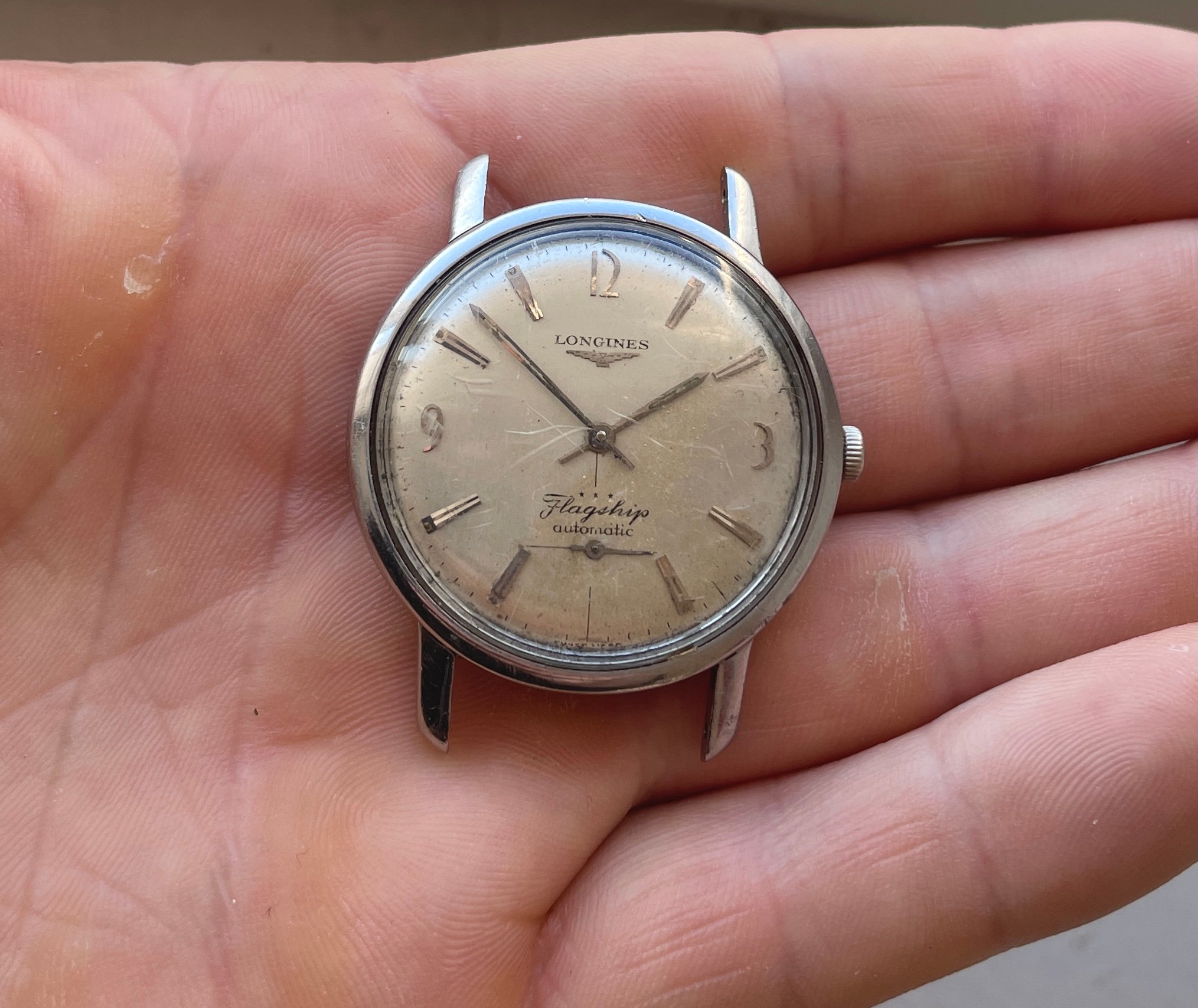 ·Longines Flagship ref 3102 with the automatic cal 350 movement, serial dates it to 1961. A service would do the watch good so I'm setting a low price at 350EUR.