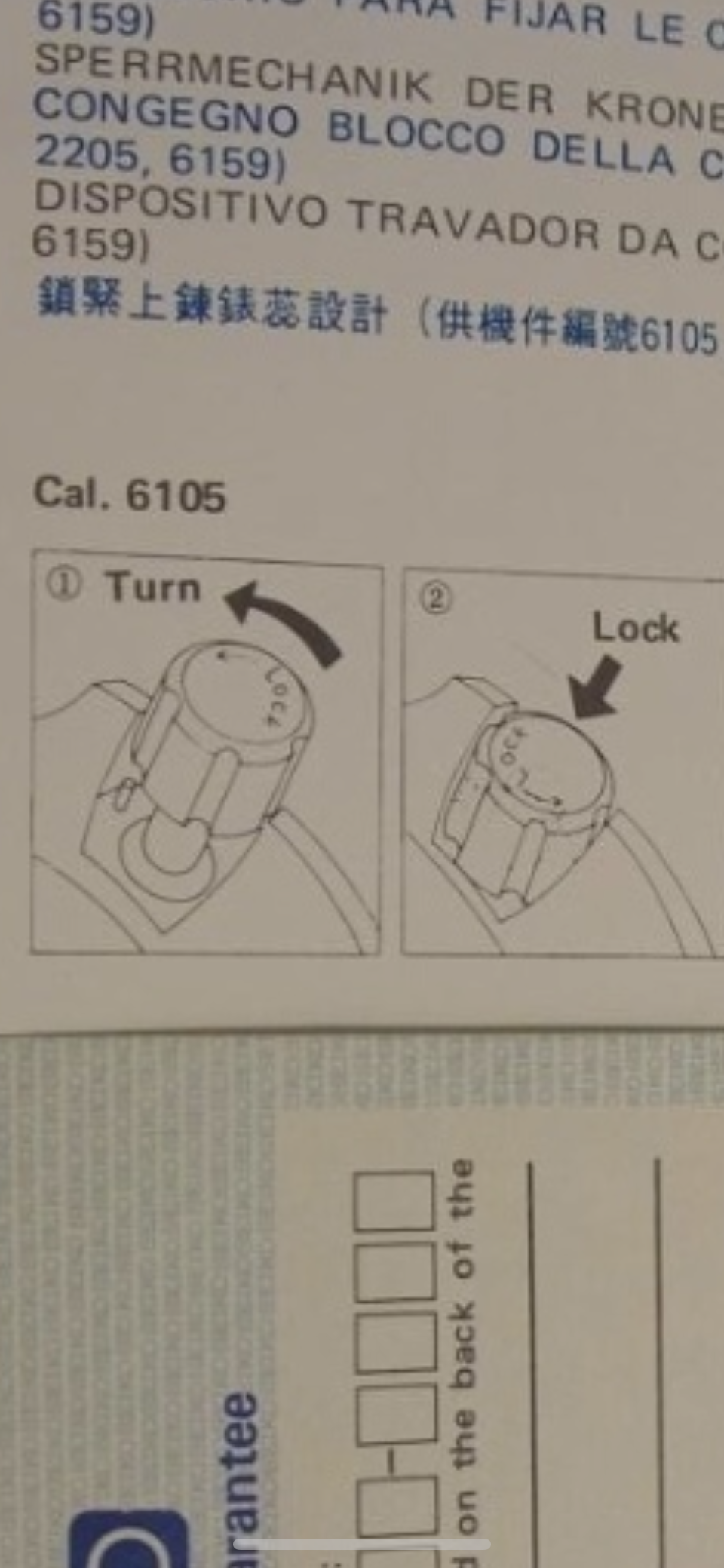 The pic seems to show the arrow on the crown showing it locking by turning it (which i can’t seem to do) but the diagram shows it locking by pushing the crown in?