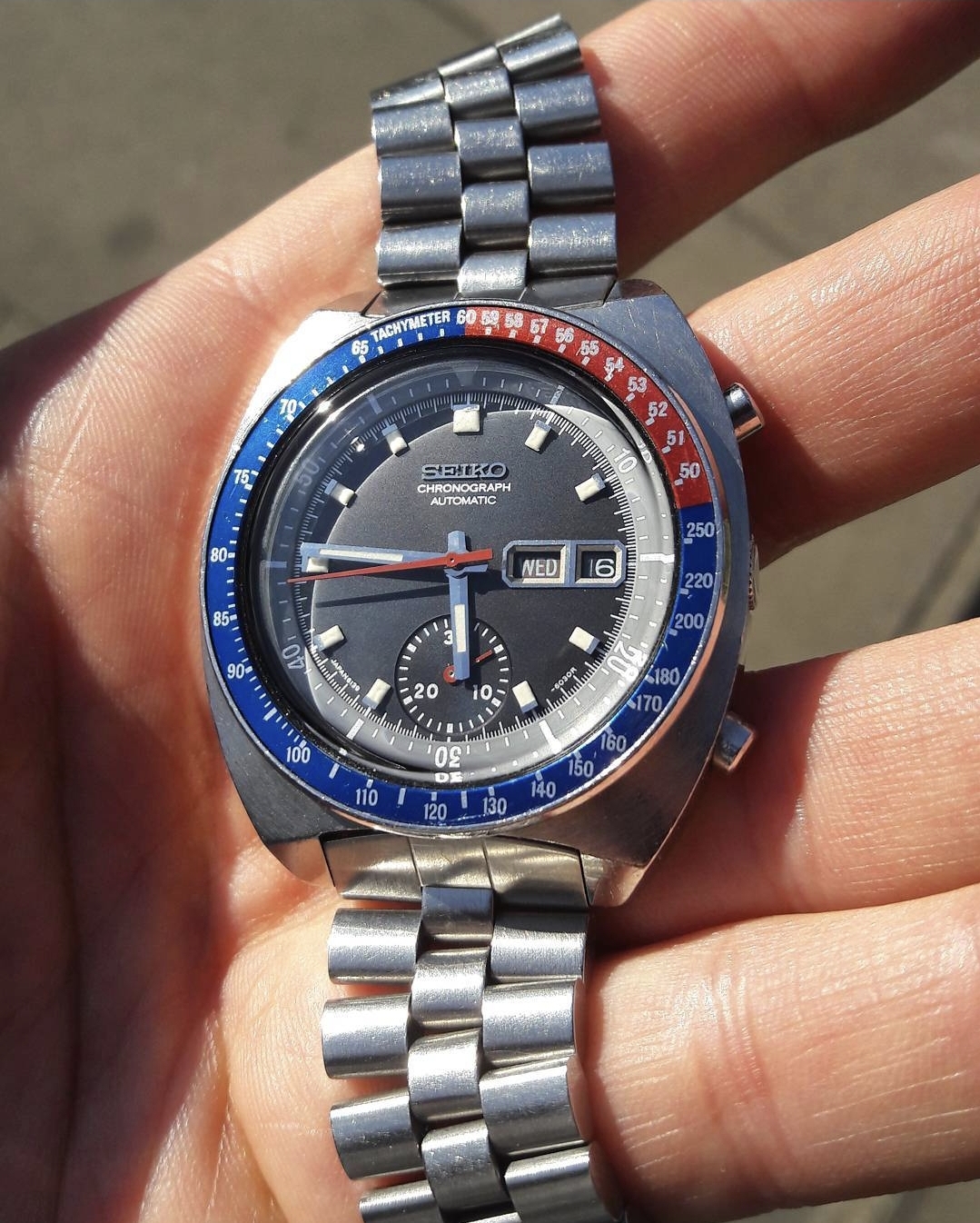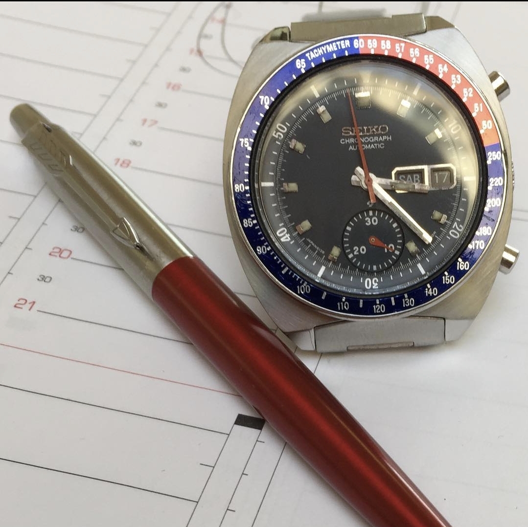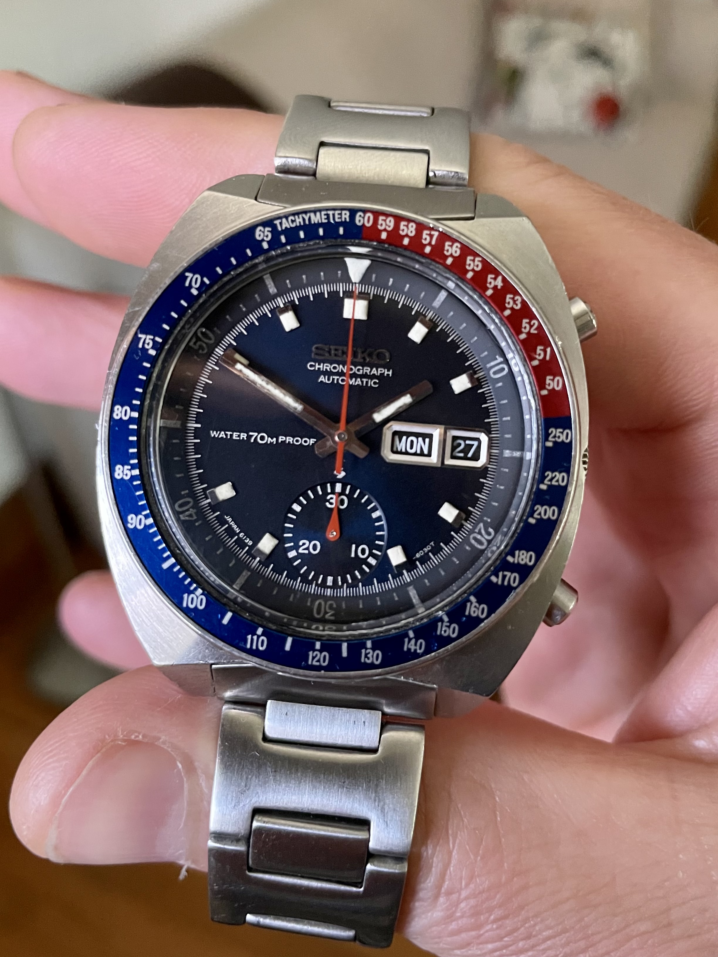 I am a newbie when it comes to vintage Seikos but I find some 6139 references awesome and have been wanting to add one to my collection for a while. This one, so far as I unterstood correctly, has a matching case with "Water Resistant", 17 jewel 6139B movement, and tapered bracelet, which are all consistent with the watch being from 1974, according to what I have been reading. The condition of the case and bracelet do please me with a nice sharp but used charm and character with a clean dial and hands with nicely coloured lume as well.