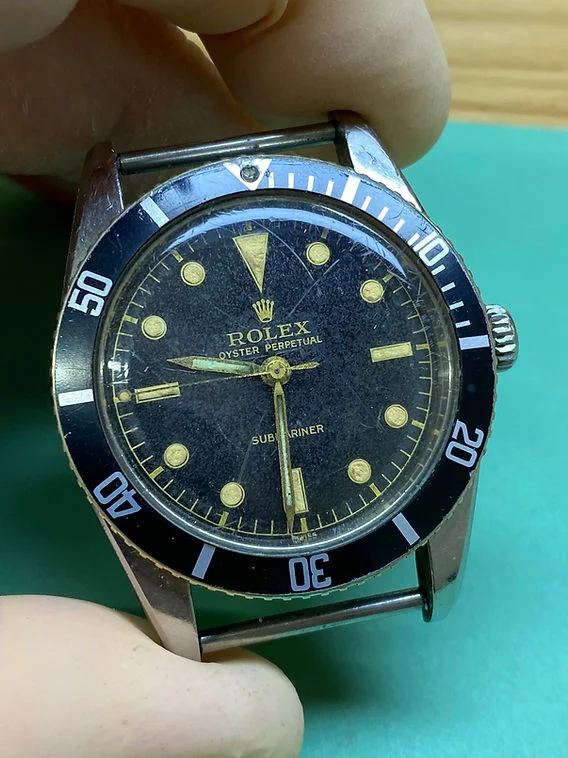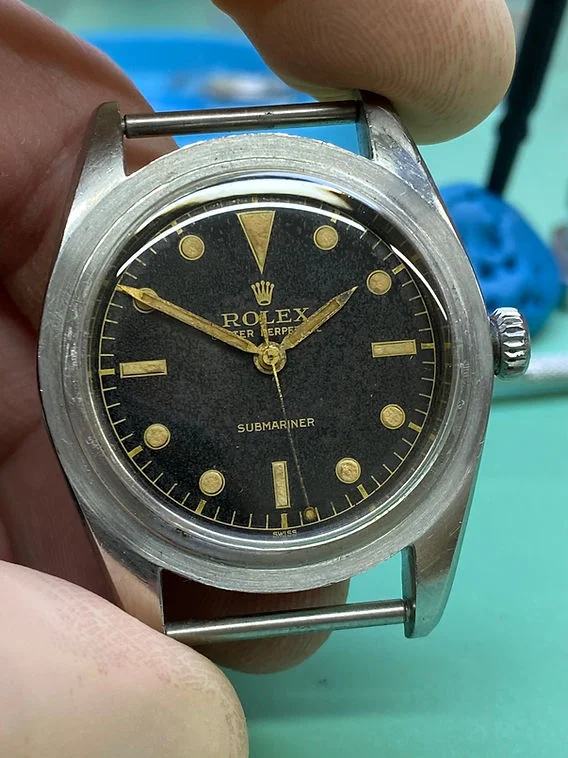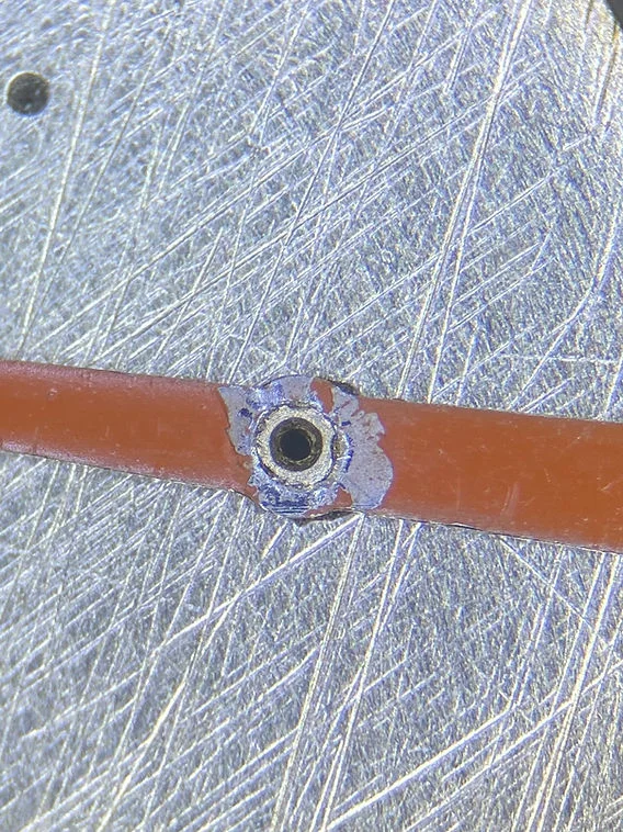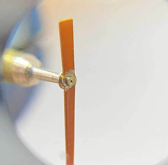 I'm here to ask for the community's opinion on whether it's possible to repair this hand. Its tube is clearly split. I'm fairly convinced it's the original hand, and in any case, it matches the lume and condition of the rest of the watch well. The current, non-correct teardrop hand is an eyesore to me, so I'm hoping the original can be repaired. Clearly, my former watchmaker could not (or would not) repair it. I appreciate any thoughts or comments, as I would love to avoid hunting for or paying for a matching vintage hand.