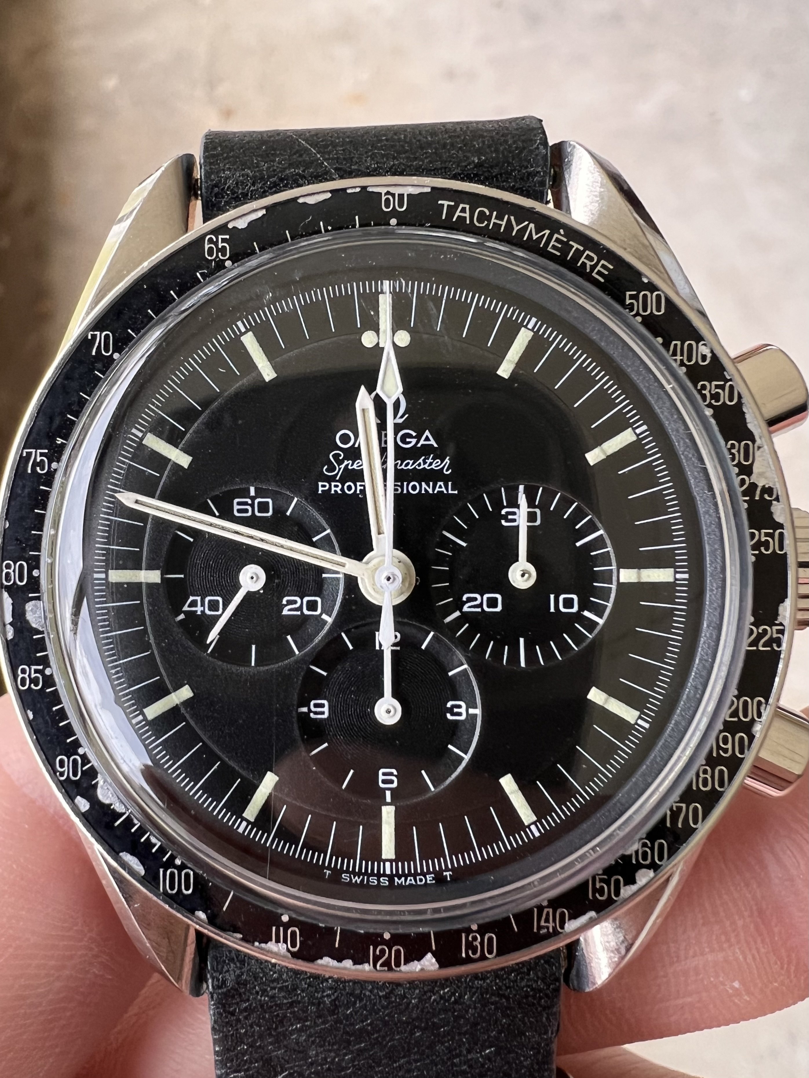 Recently, I took a 145.022-69 in for service. When I got the watch back, there was no commentary from the watchmaker. To my surprise, the chrono hand had been replaced with a teardrop hand, which looks like a tritium service hand. After spending a few minutes convincing them that this was not the original hand I turned it in with, they finally admitted the original was damaged and had to be replaced, though they didn't include the original damaged hand with the other replaced parts I had requested to be returned. Luckily, I caught the issue before I left, and they then returned the original hand to me.
