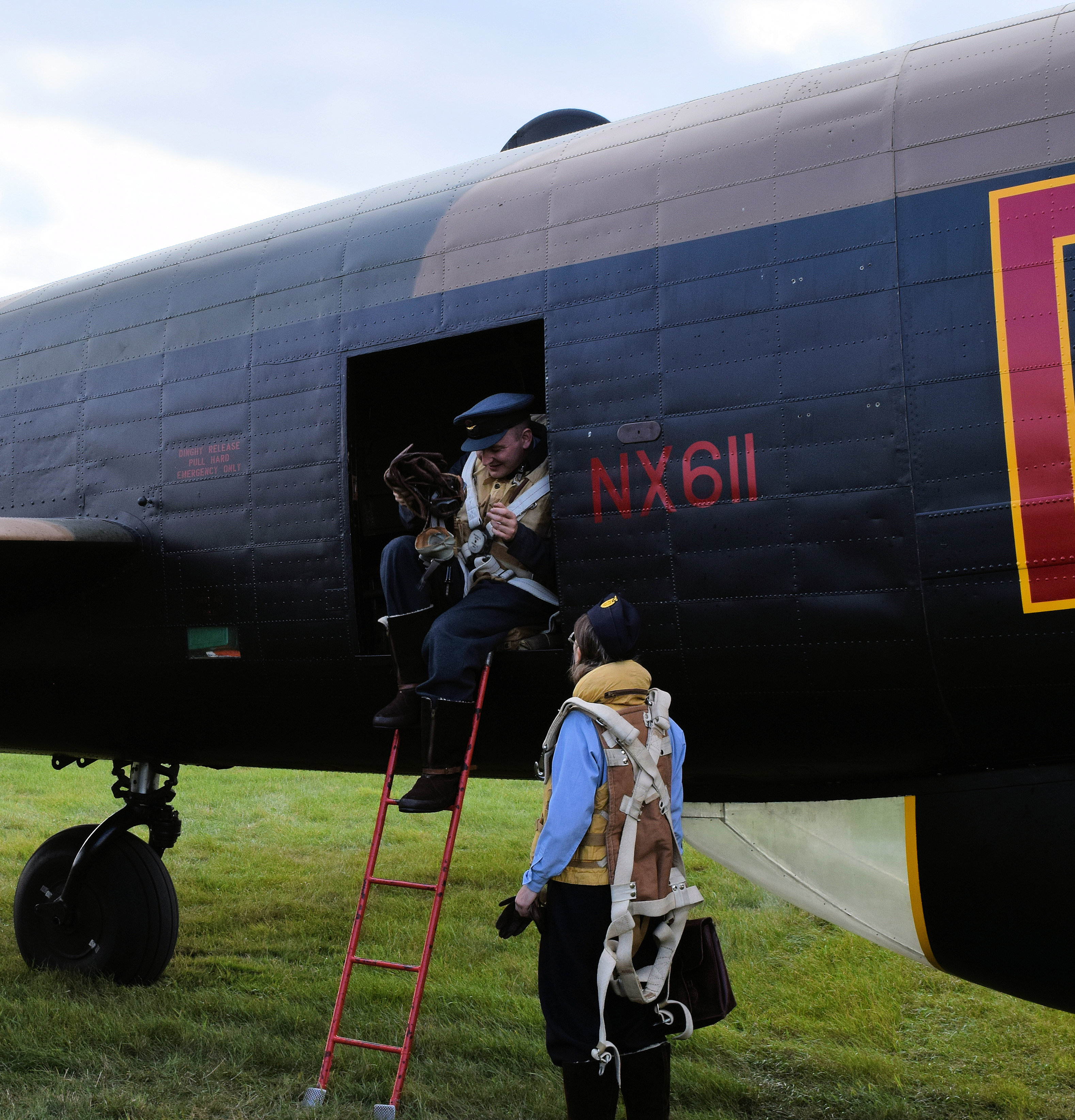 ·Mosquito…Spitfire… and now the Avro Lancaster. Pictures are from a Darren Harbar photography day I joined at East Kirkby Museum at the Lincolnshire Aviation Heritage Centre. All the superb re-enactors are volunteers and we were hosted by Andrew Panton and his amazing team. I have slipped in a couple of recent shots from Duxford to get some overhead views of the plane (also as her wing tips were off for maintenance).