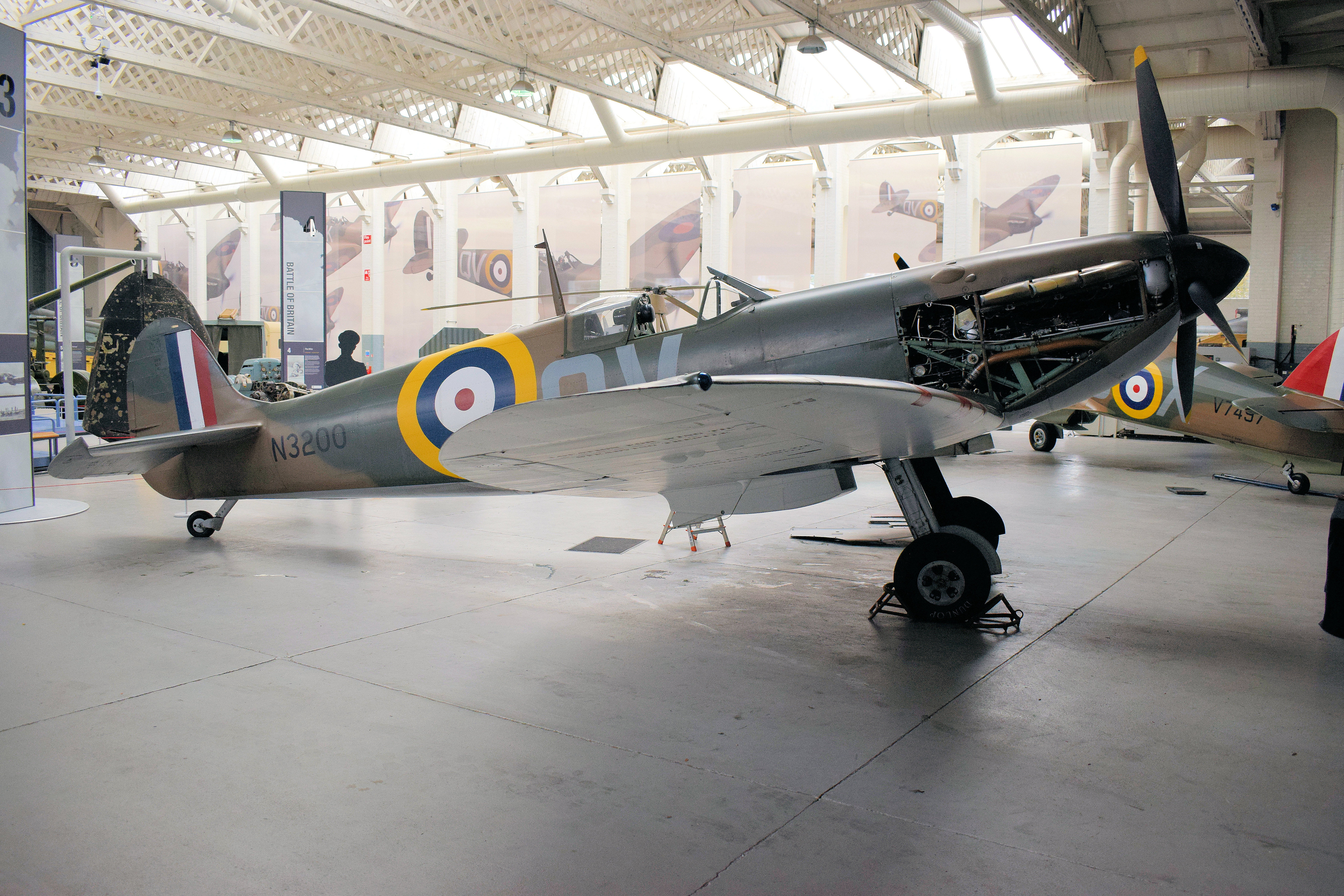 Buried in a Calais beach for nearly 50 years the story of N3200 and its return to flight is amazing and well worth a read. The original recovered engine is also pictured below.