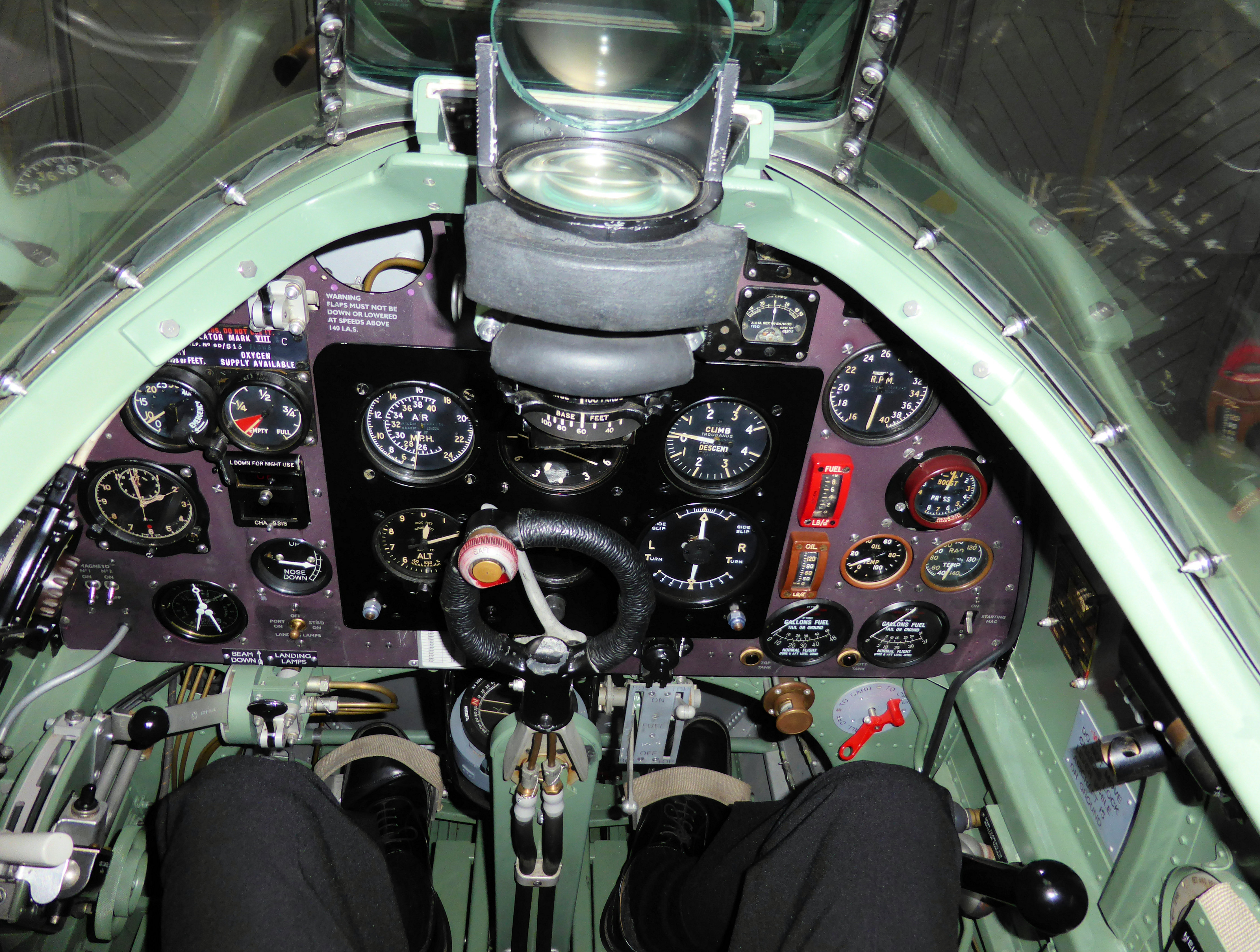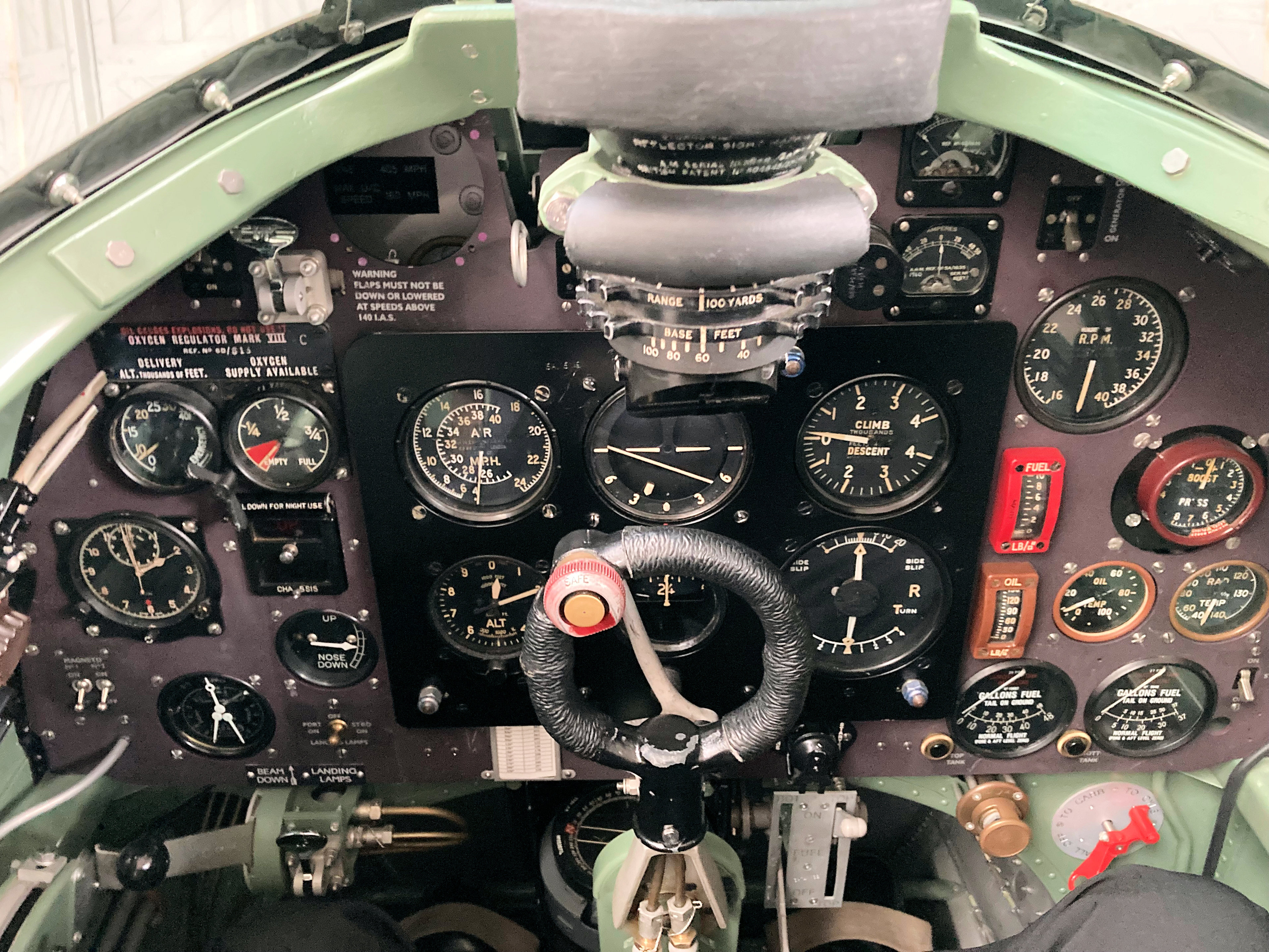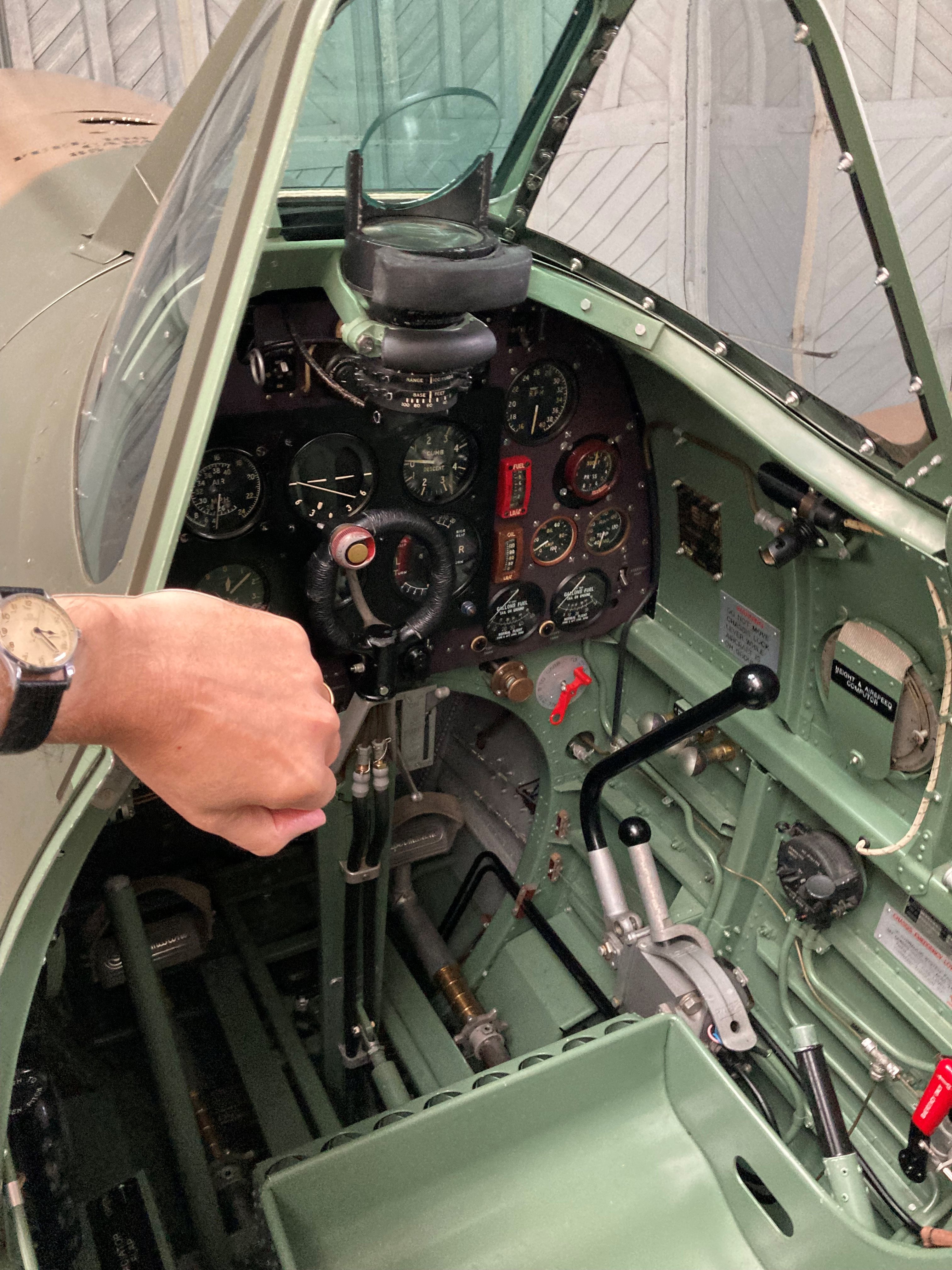 The red gear down flag indicators on the wings and the hand pump for raising the gear brought home the effort and focus these young men needed just to land and take off in these early variants. During the day a BF109 Hispano ‘’Messerschmitt’’ also put on a display which showed how hard it must have been to make and maintain visual contacts from the small claustrophobic cockpit. There is also not much between your feet and a large 85 gallon 100-Octane fuel tank.