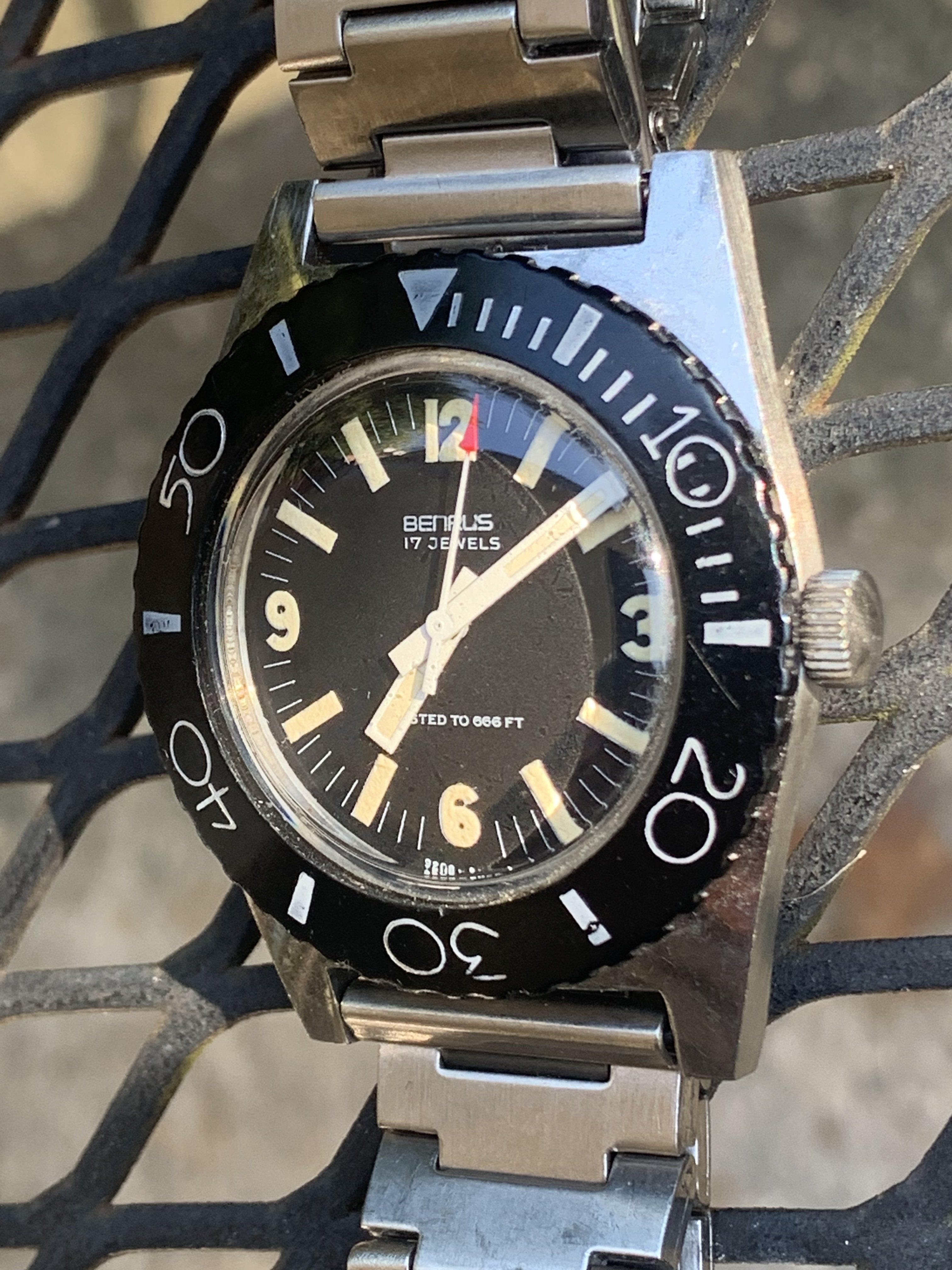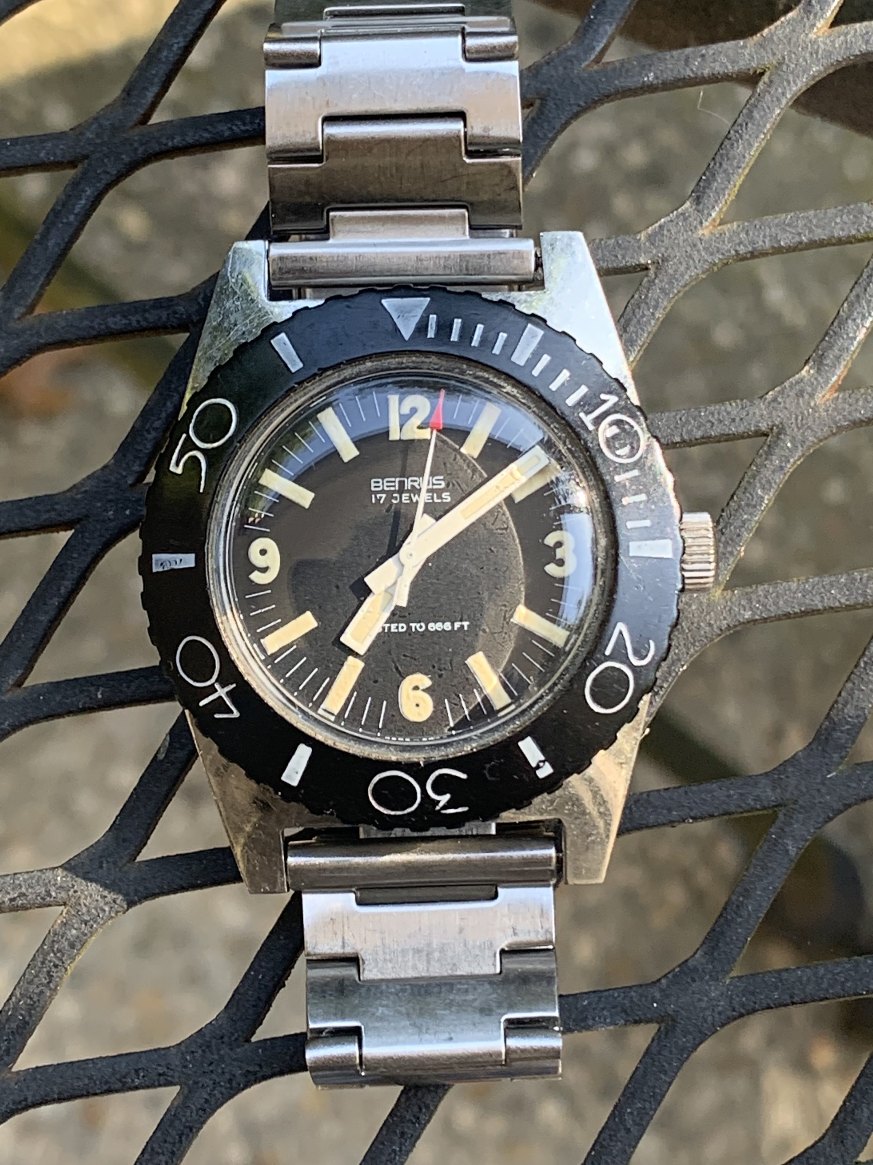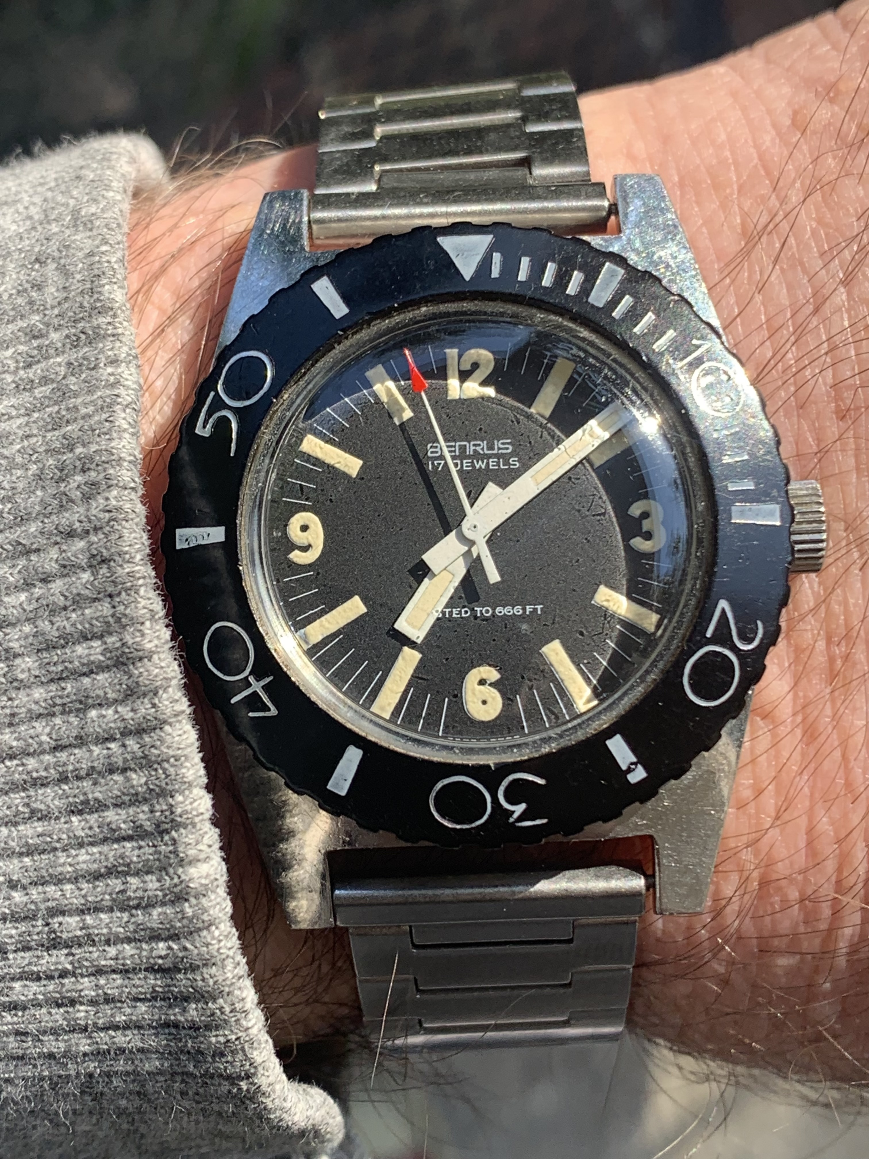 This is the last gasp from Benrus for these divers. The clean date free 3/6/9/12 dials are what people love about these (I will avoid the hyperbolic “exp” or “mil” words describing this type of dial).