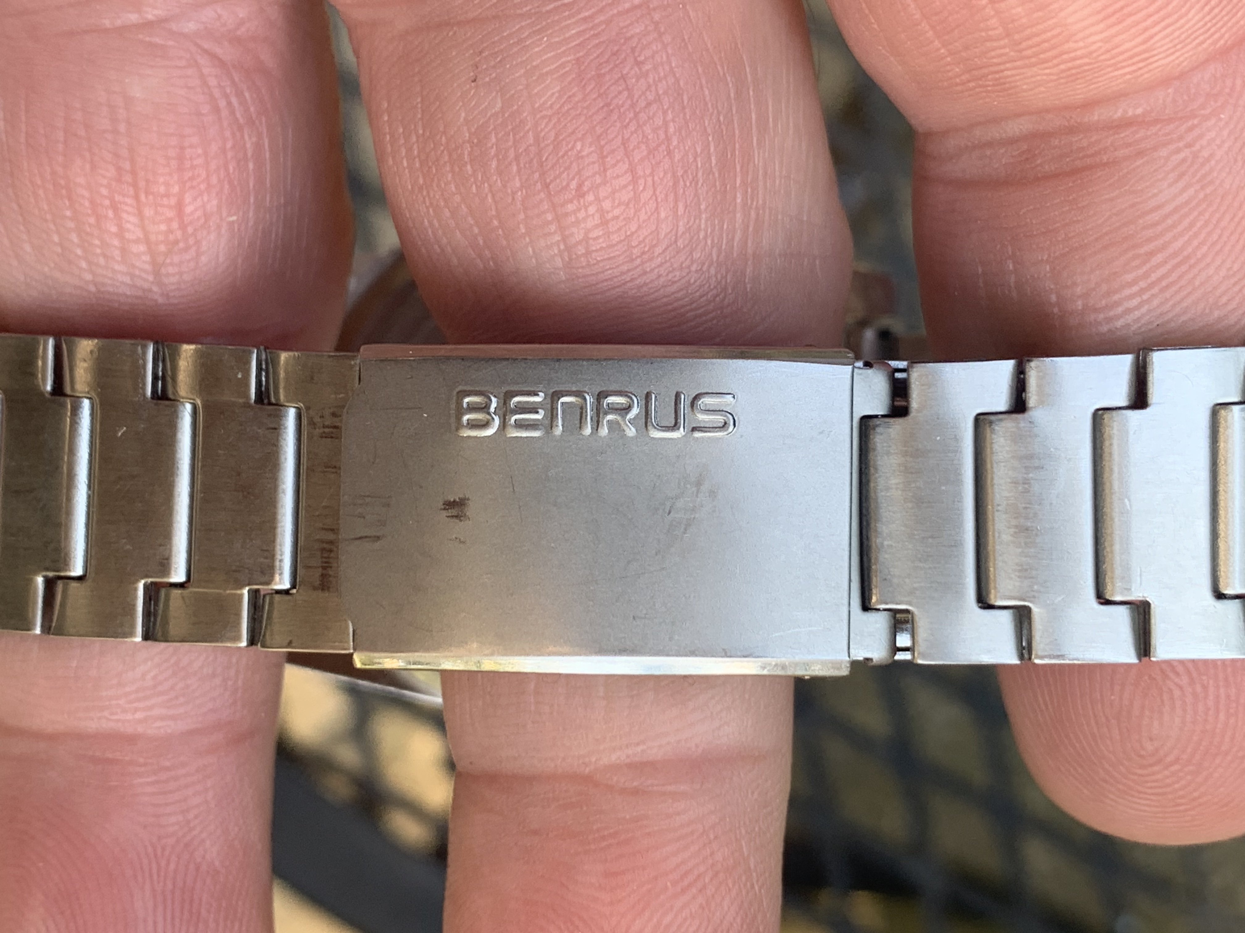This is unusual as they normally are part of the Belforte line and are branded as such, but this one wears the Benrus name on the dial and bracelet- I haven’t seen one branded like this before.
