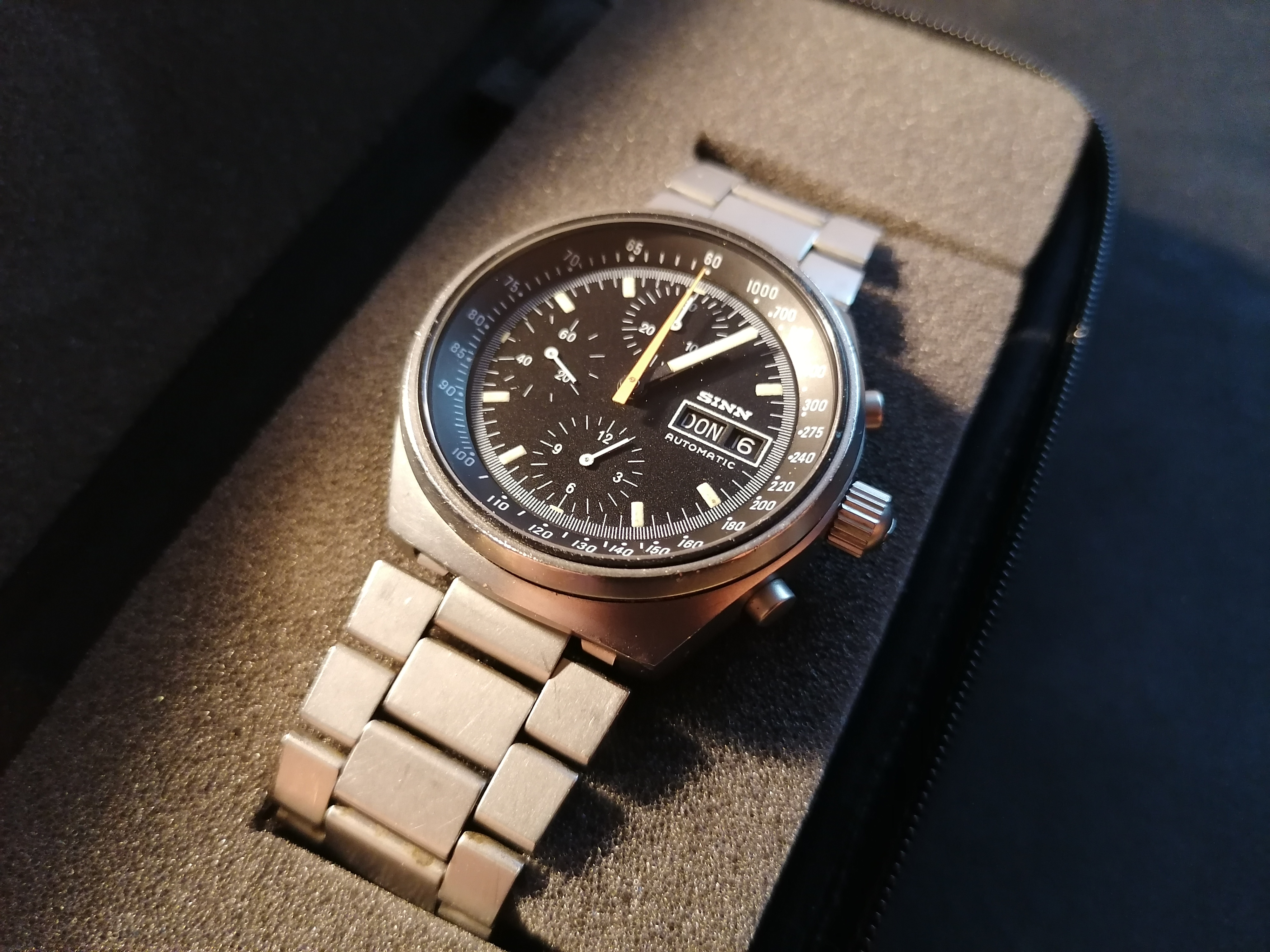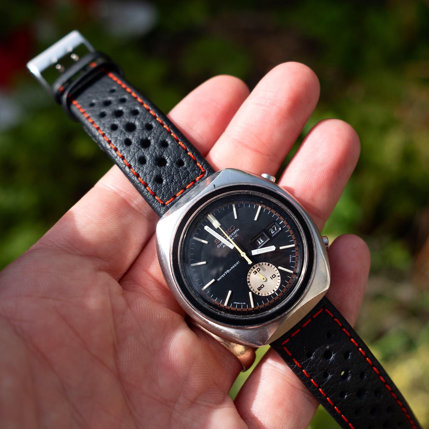 Super sexy 70’s dive watchery. Warning: DO NOT take any of these in the water. Not even rain. And I challenge anyone to match or surpass THREE rotating bezels. Or that hour arrow that’s bigger than the buttons on Mad Dog’s game boy.